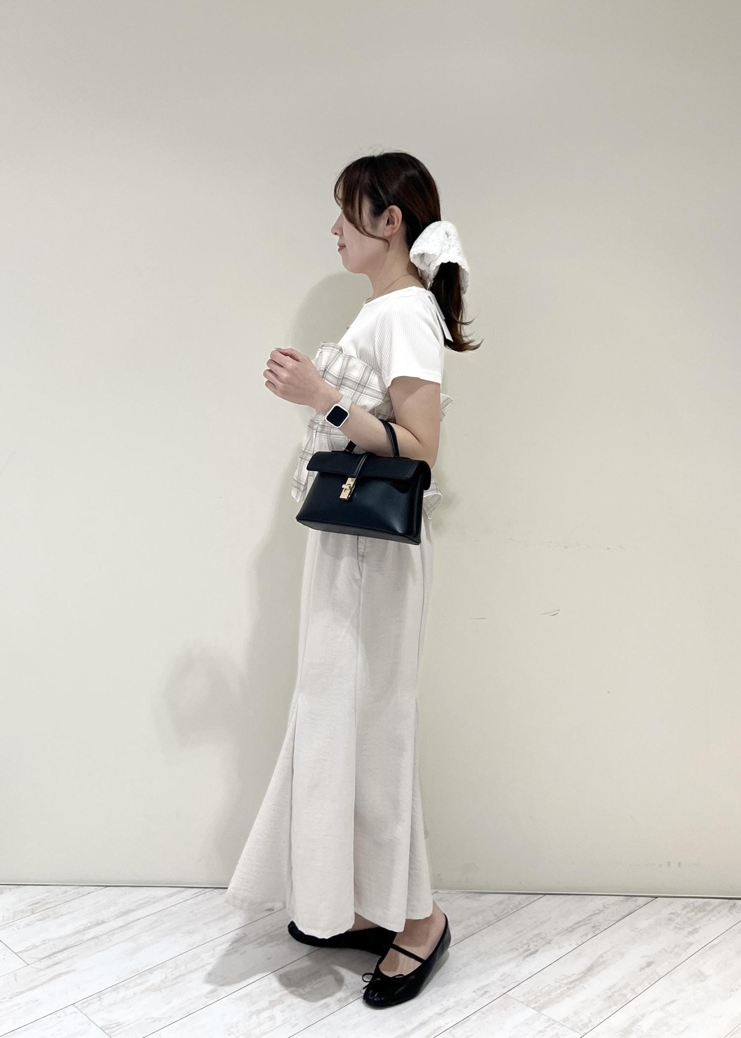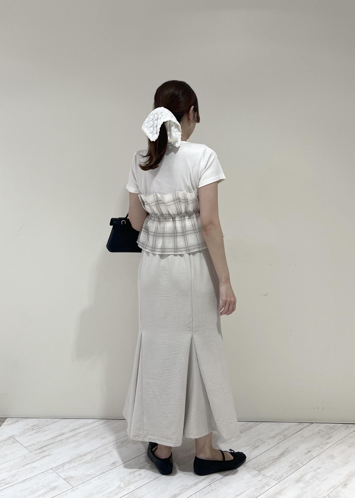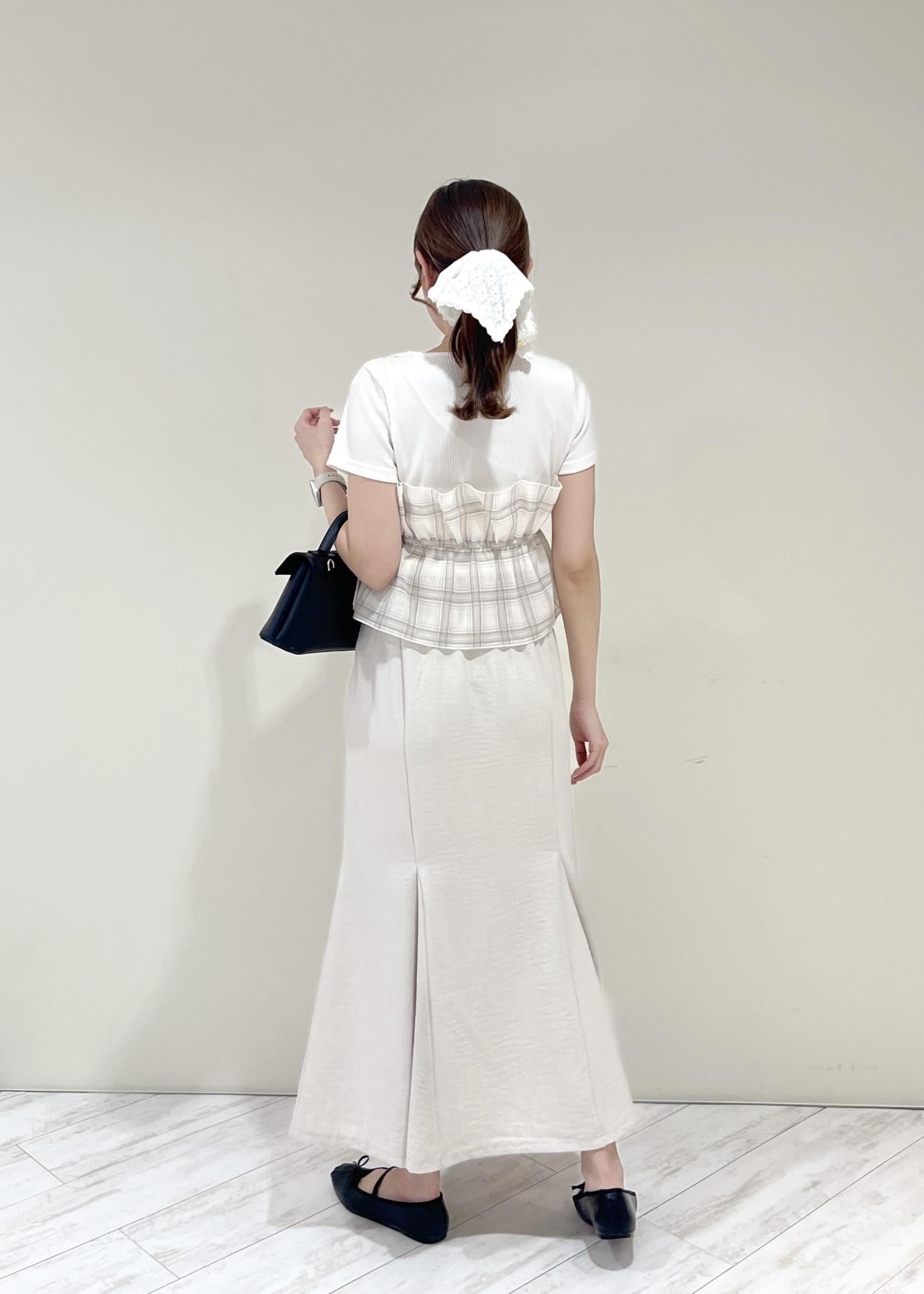 VIS美easyリネンライクマーメイドスカート/イージーケア・接触冷感・セットアップ対応キナリ / L¥5,489レビュー164cm、Mサイズだとおしり周りが気になったのでLサイズ着用。着丈はくるぶし上でスニーカー等ぺたんこ靴でもバランス良く履けます◎