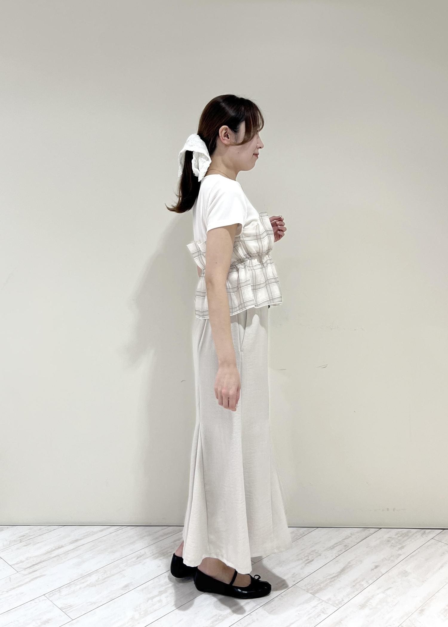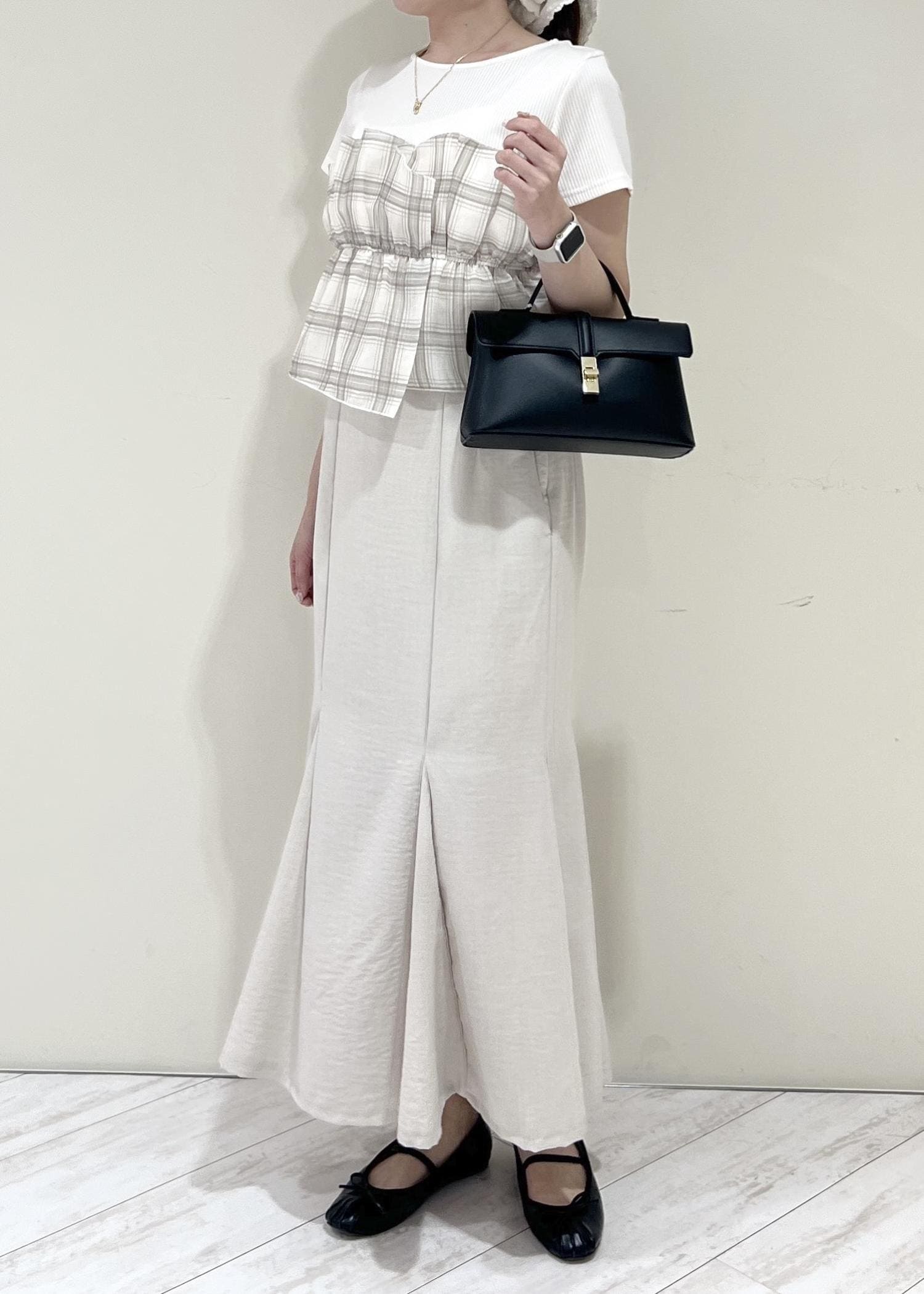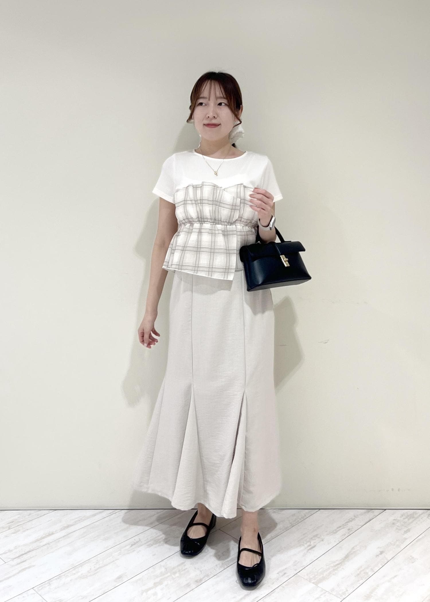 VIS美easyリネンライクマーメイドスカート/イージーケア・接触冷感・セットアップ対応キナリ / L¥5,489レビュー164cm、Mサイズだとおしり周りが気になったのでLサイズ着用。着丈はくるぶし上でスニーカー等ぺたんこ靴でもバランス良く履けます◎