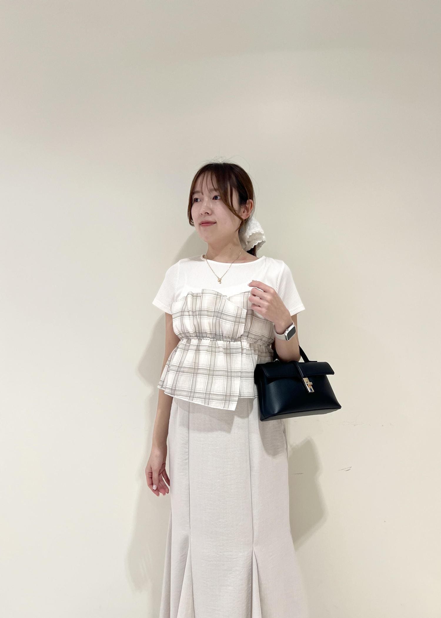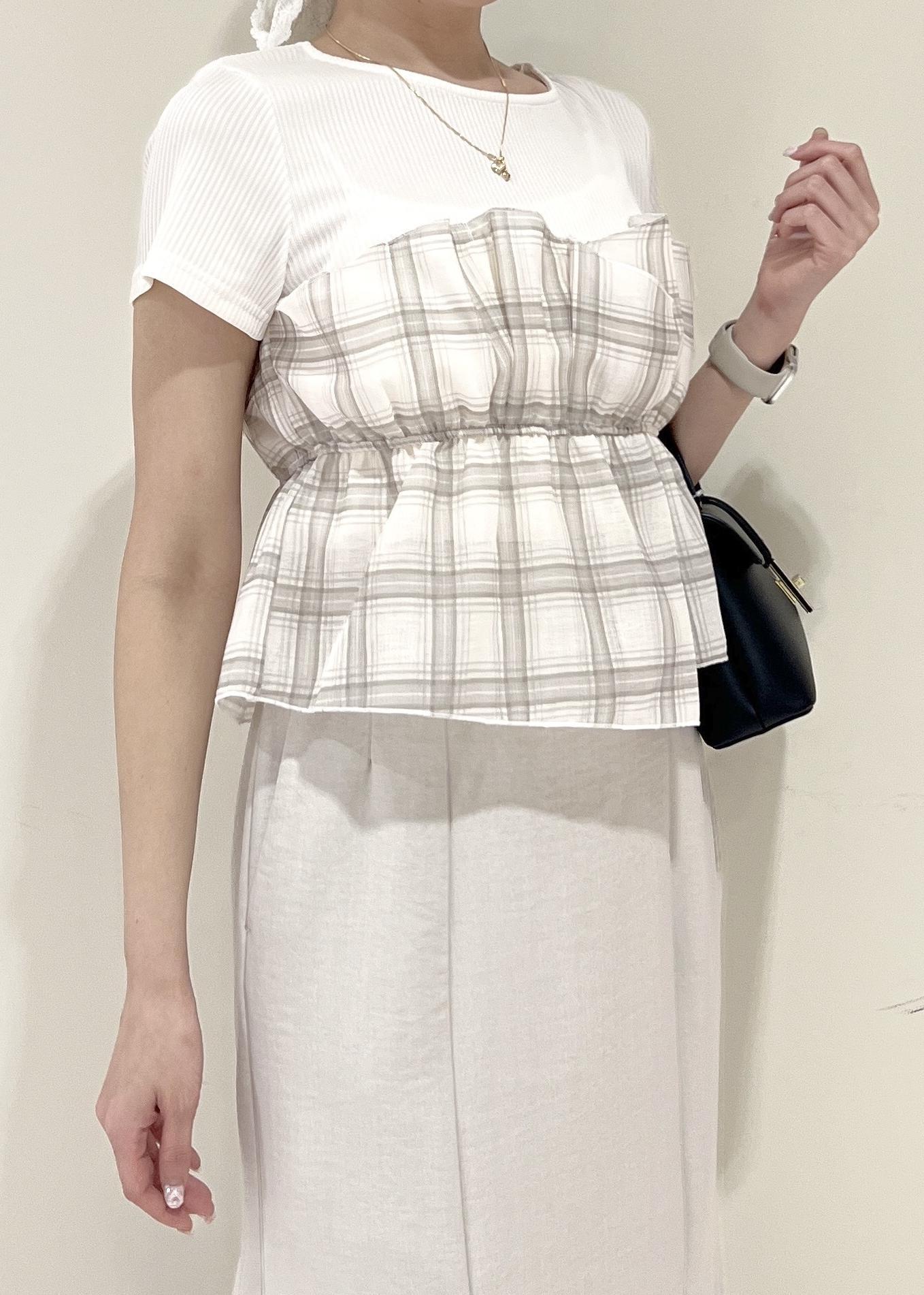 VISチェック&無地ビスチェドッキング半袖プルオーバー/イージーケアキナリ系 / F¥5,489レビュー程よく余裕のあるサイズ感です!ビスチェと繋がった作りなので1枚でお洒落にお腹周りをカバーしてくれます◎腰にかかる着丈でした。
