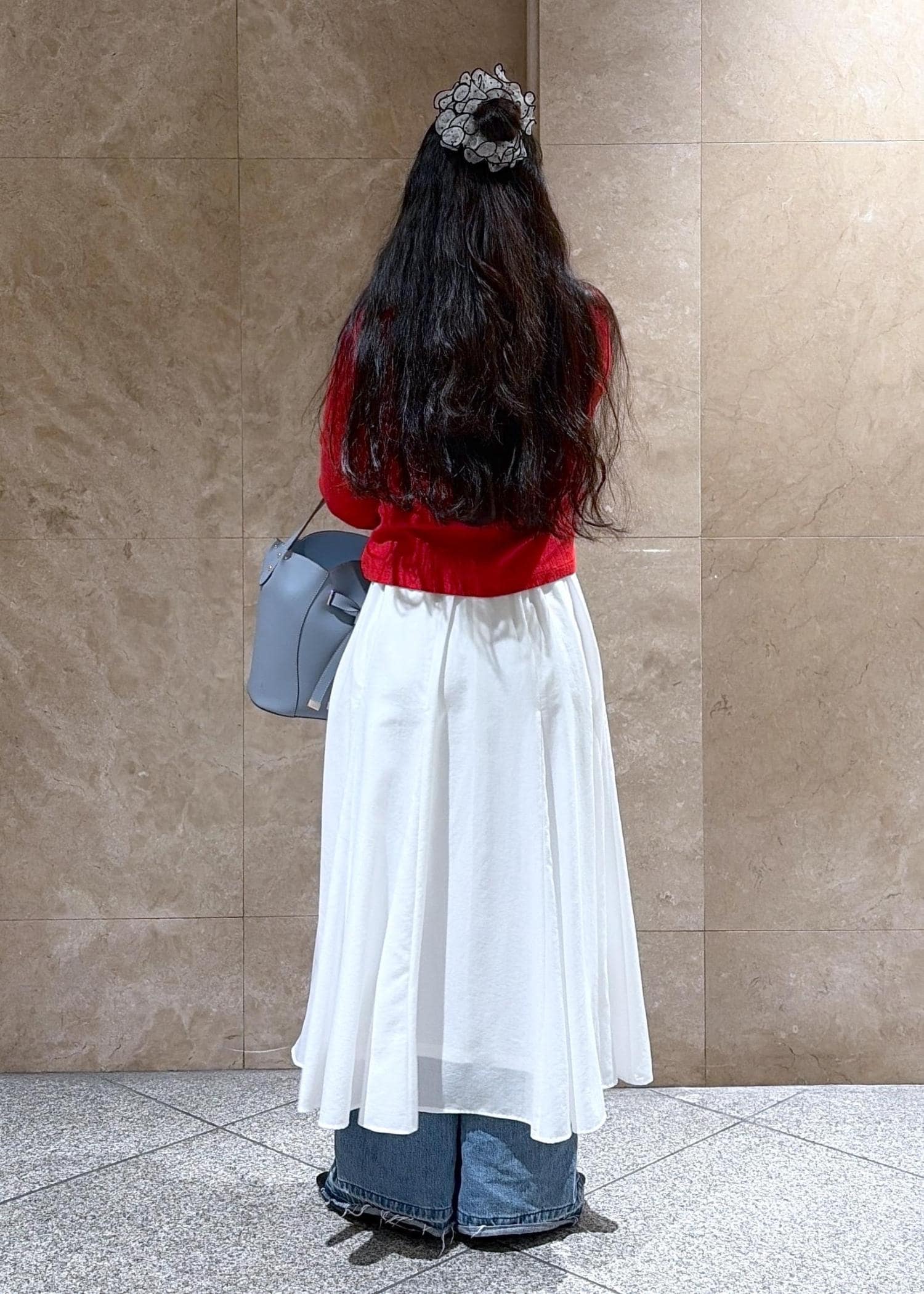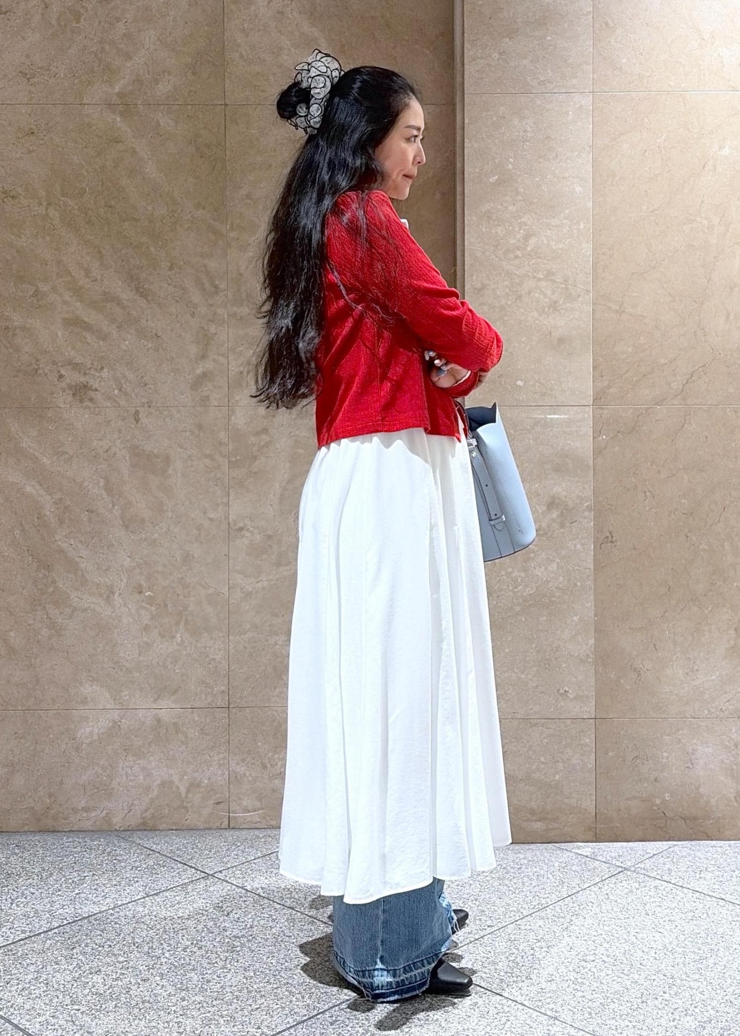 VIS気流染めフレアースカート/イージーケアオフホワイト / F¥6,589レビュー長すぎず、下にデニム合わせをしても邪魔しないです!