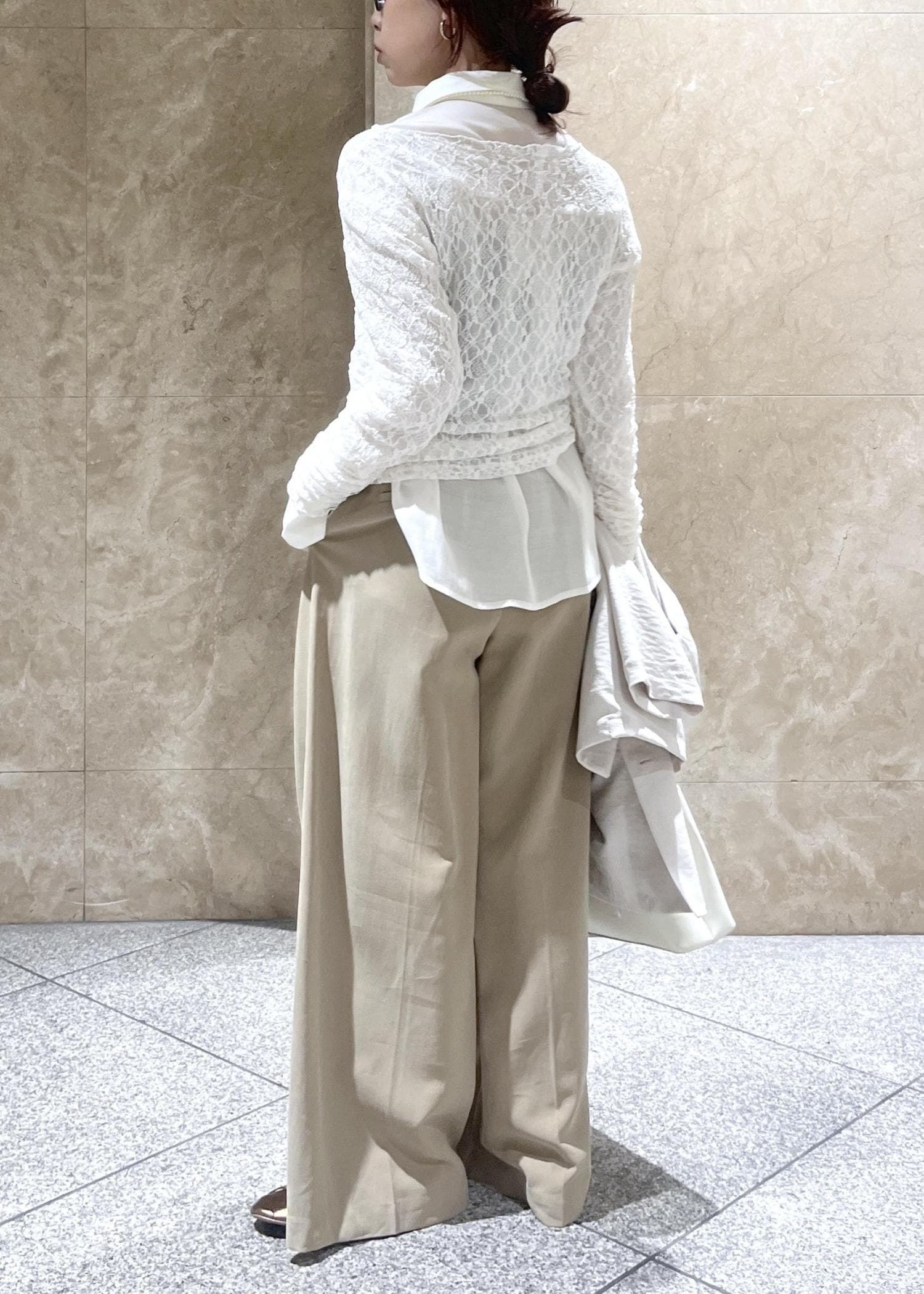 しっかりと太さがありながら、てろんと柔らかく落ちる素材感、ほどよい厚みで長いシーズン着用できそうです。
