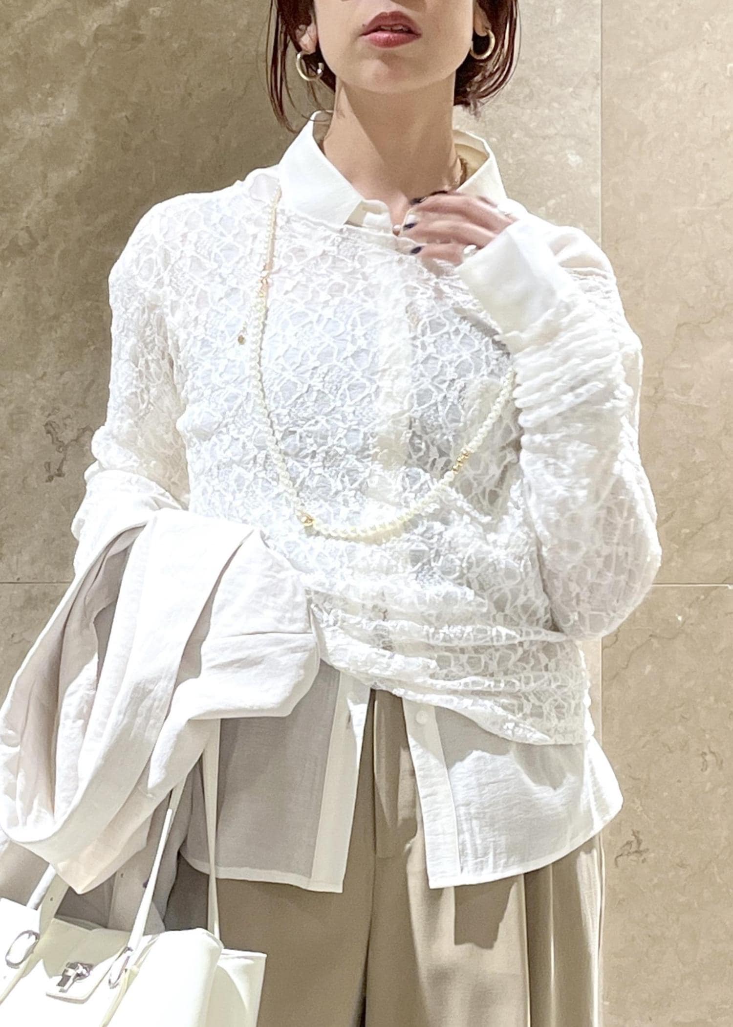 透け感が上品で形もシンプルなので、シーンを選ばず、合わせるアイテムも広くコーディネートしていただけます◎ -