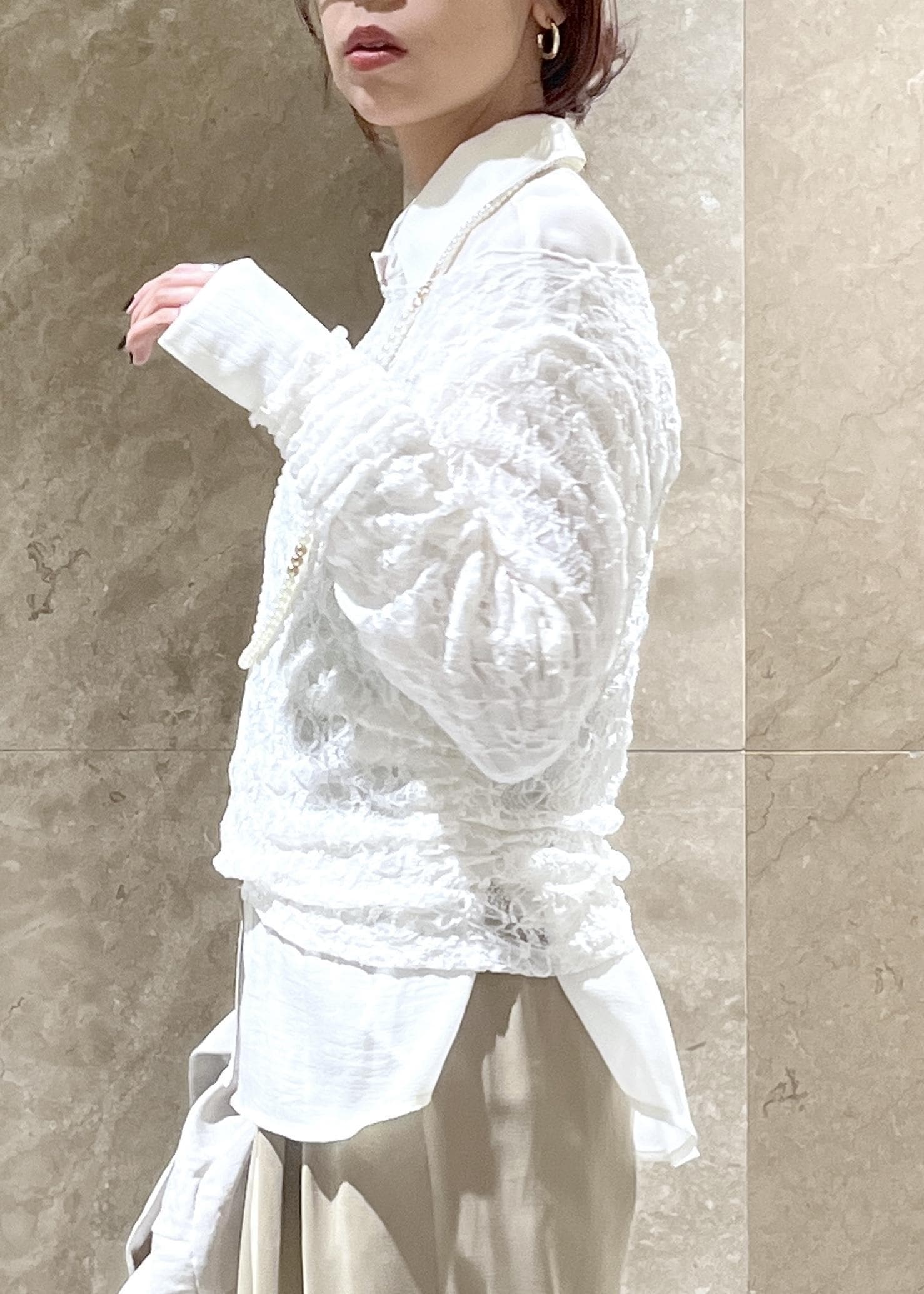 VISシャーリングスリーブレースプルオーバーホワイト / F¥4,389レビュー身長158cm、着丈はおしりに少しかかるほどの長めの丈感で、袖丈も長めなのでレイヤードスタイルにはもってこい!