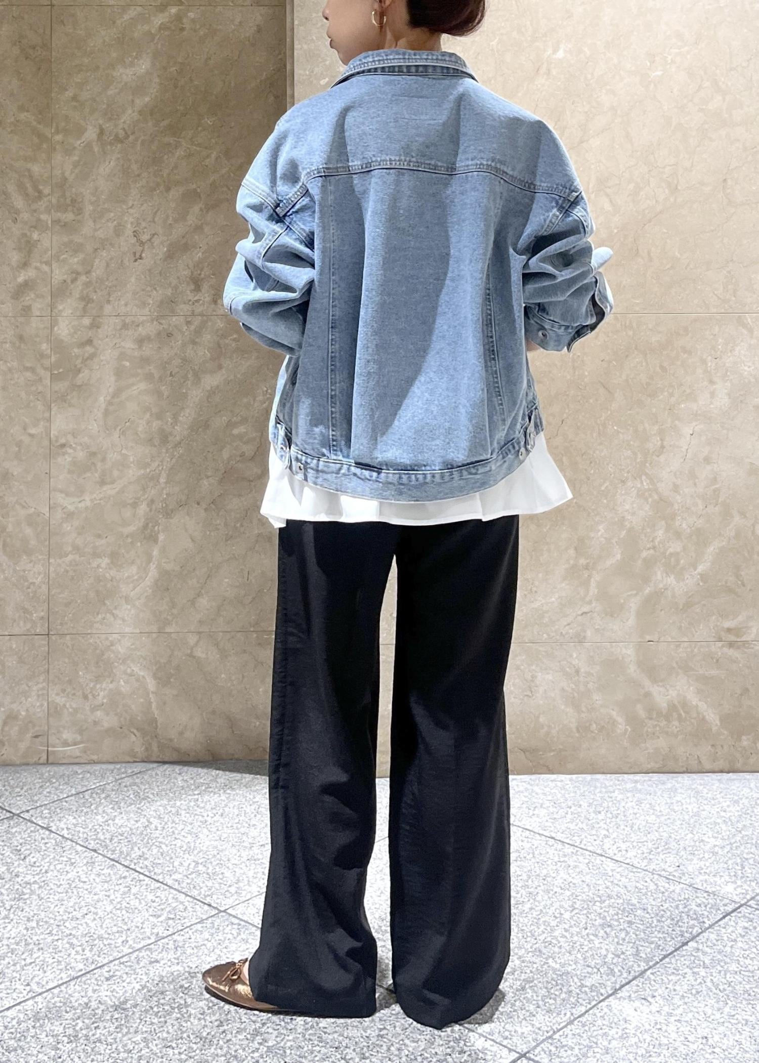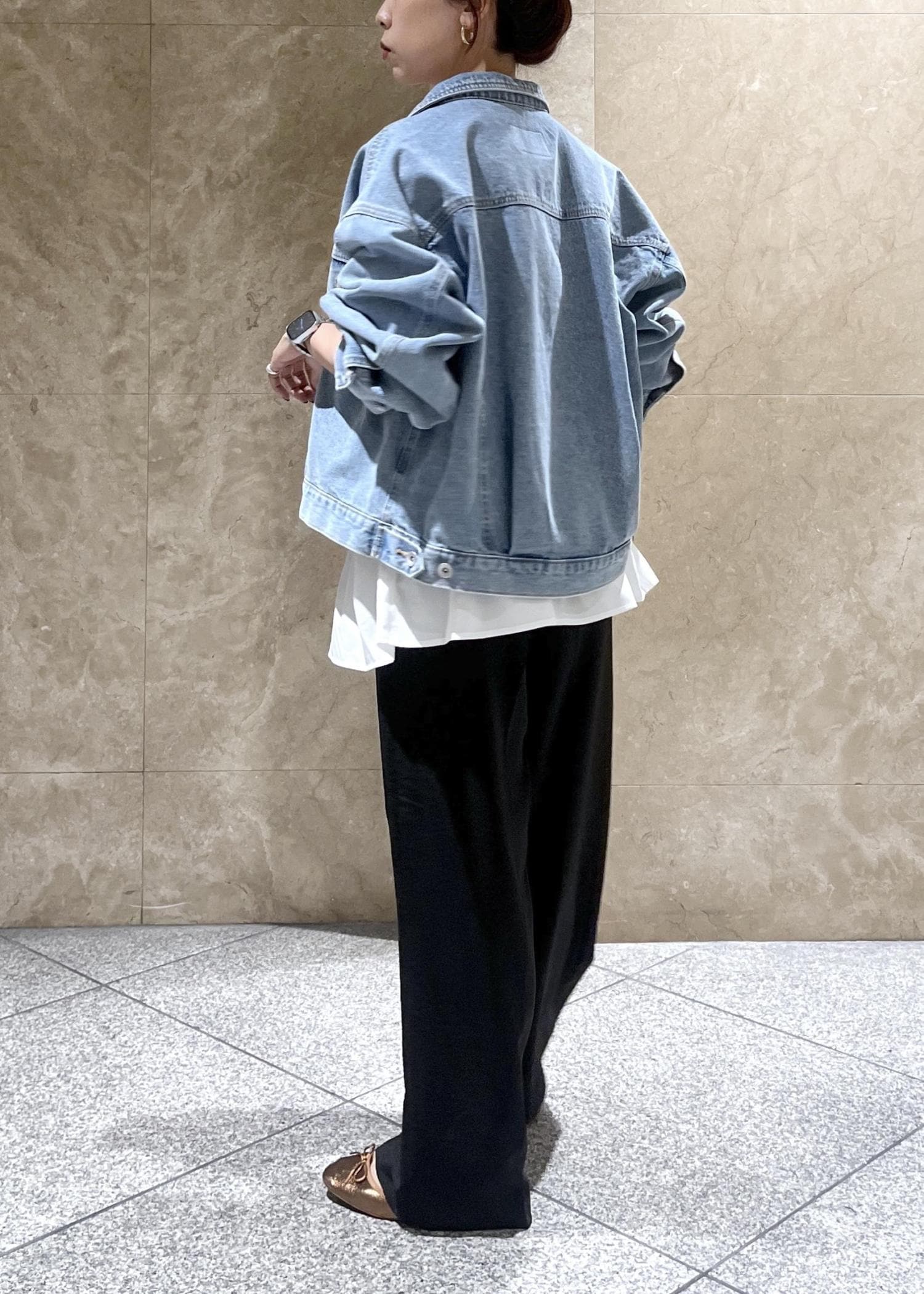 身幅や、腕周りはボリュームスリーブのデザインで特にゆったりとしていますが、素材感が柔らかく扱いやすいため、腕を少し捲ったりなどすっきりと調整もしやすいです!