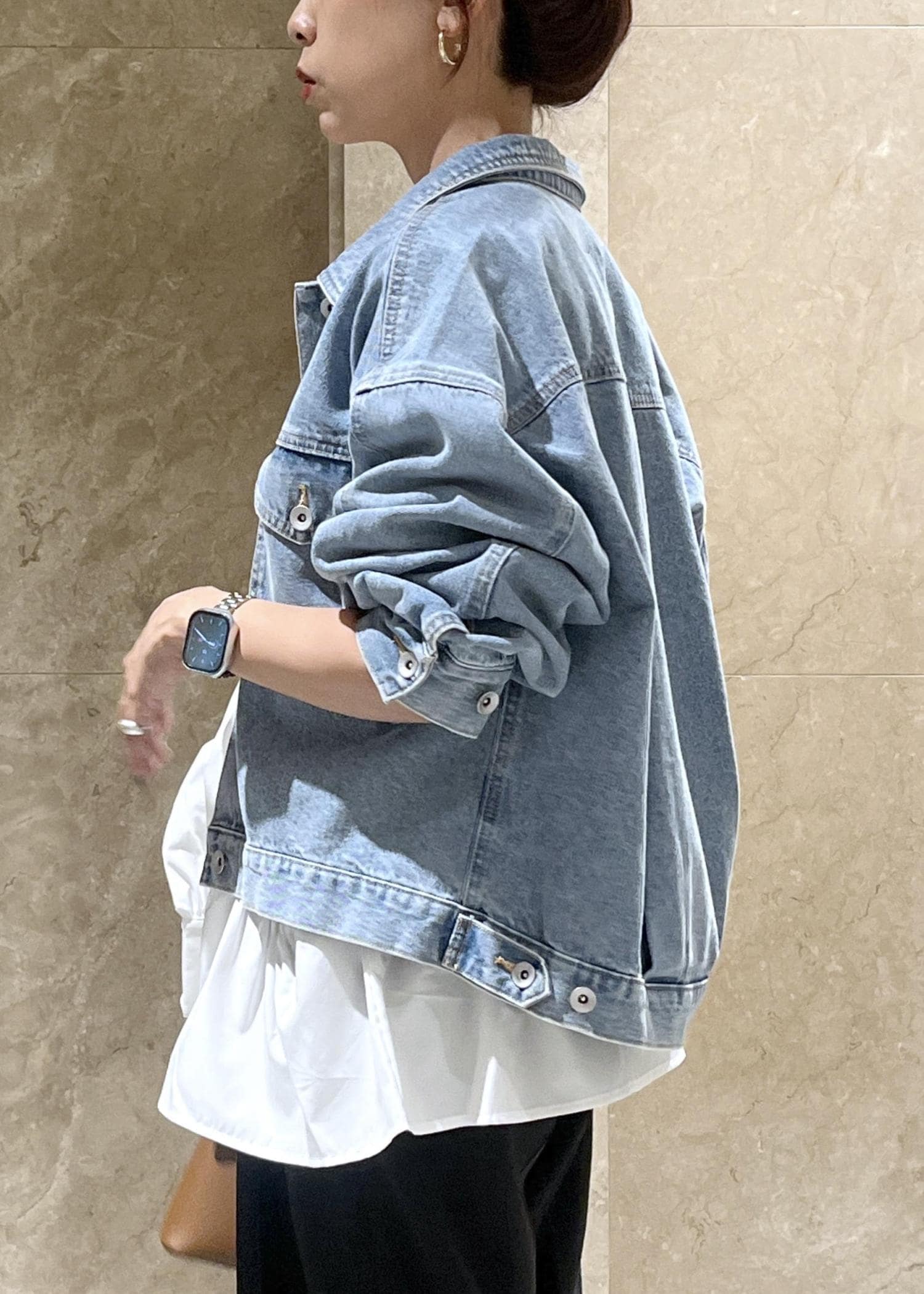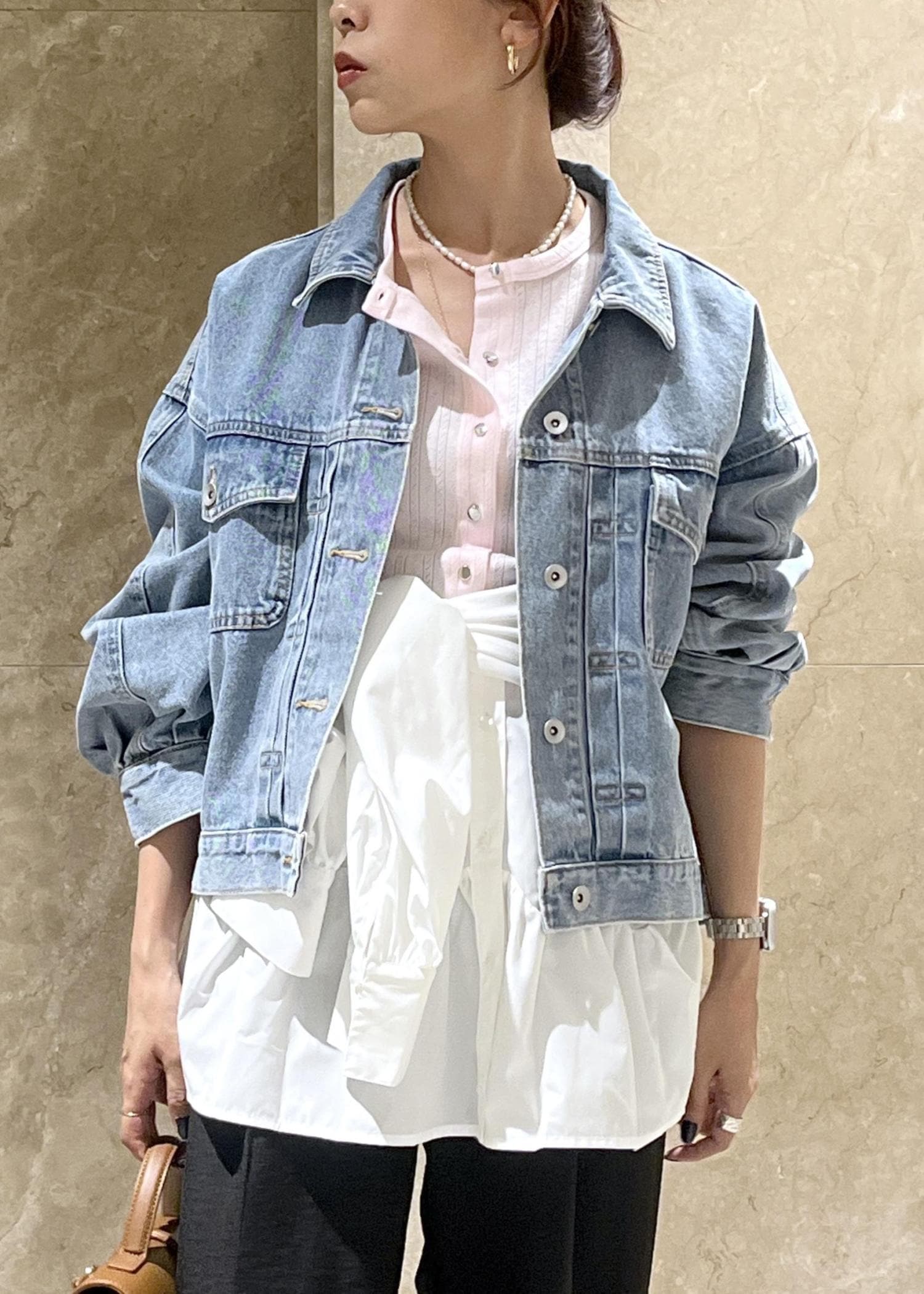 VISボリュームスリーブデニムジャケット/Gジャンサックス / F¥9,999レビュー身長158cm、ゆったりとしたオーバーサイズで着丈はおしりに少しかかるほど。
