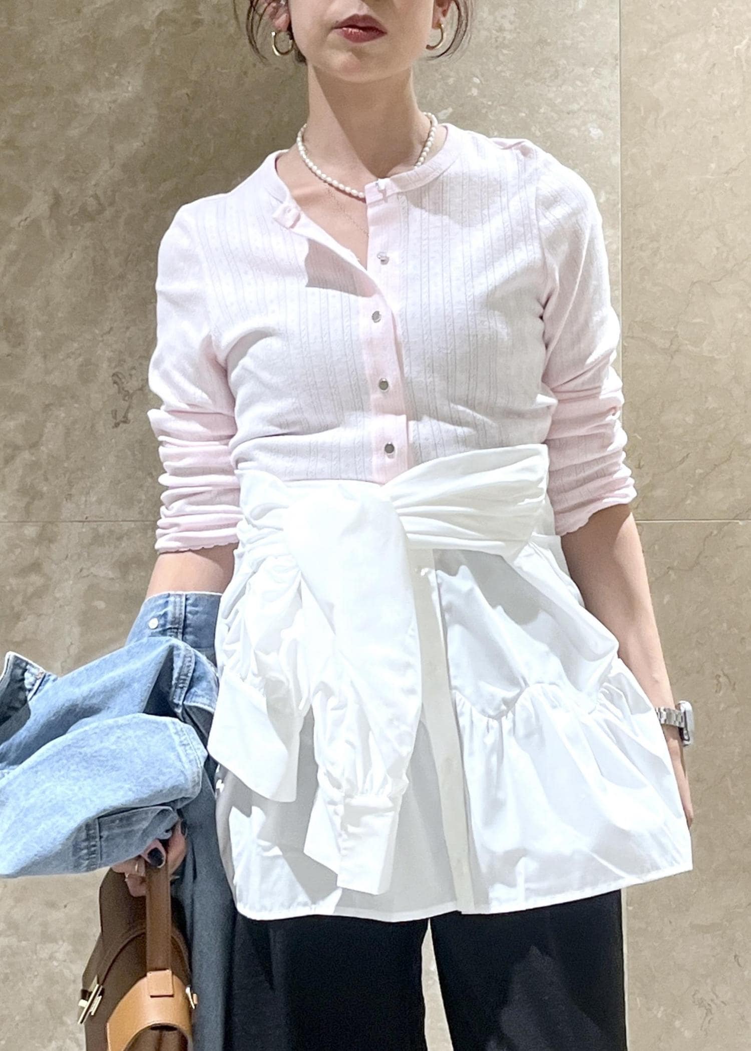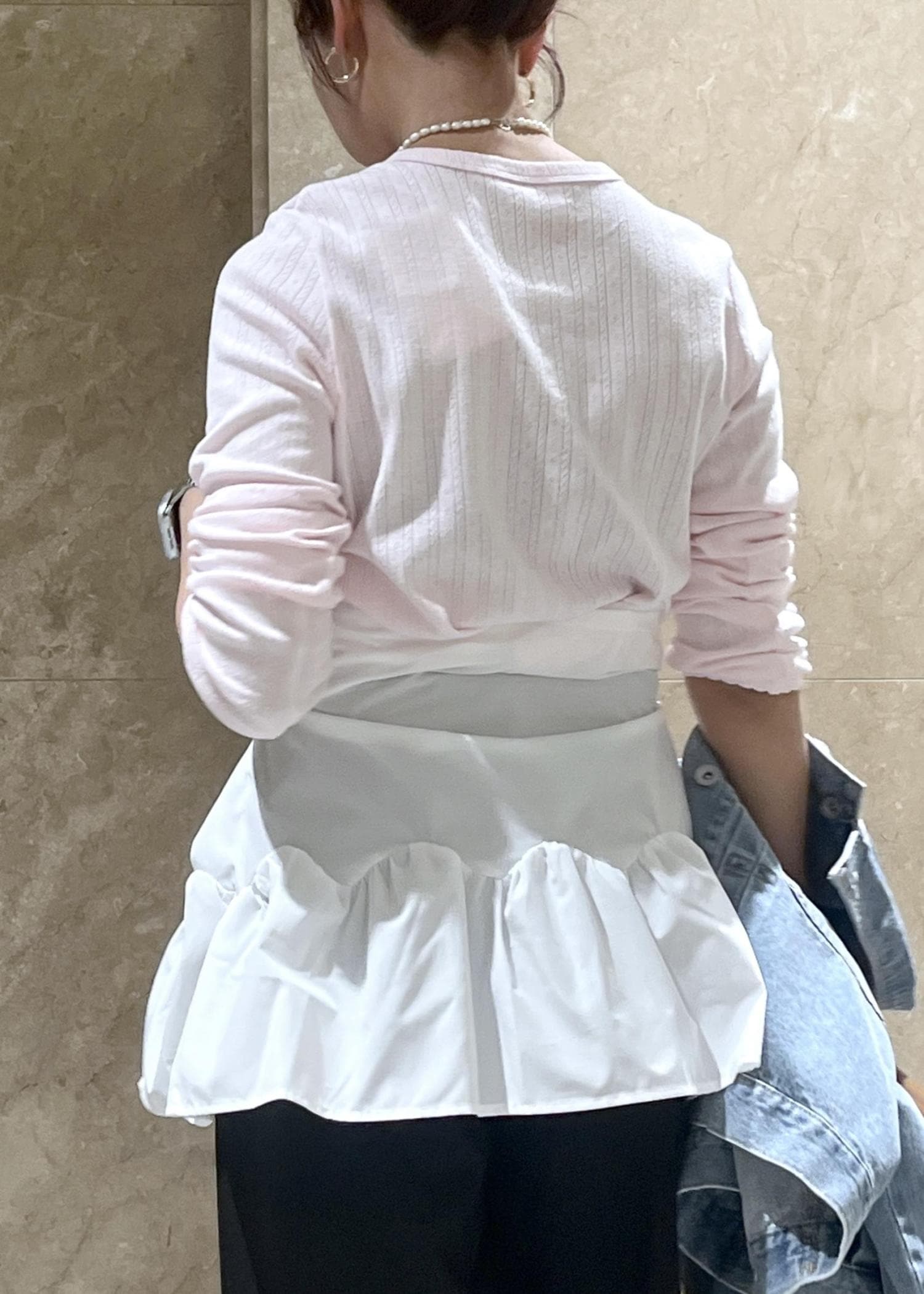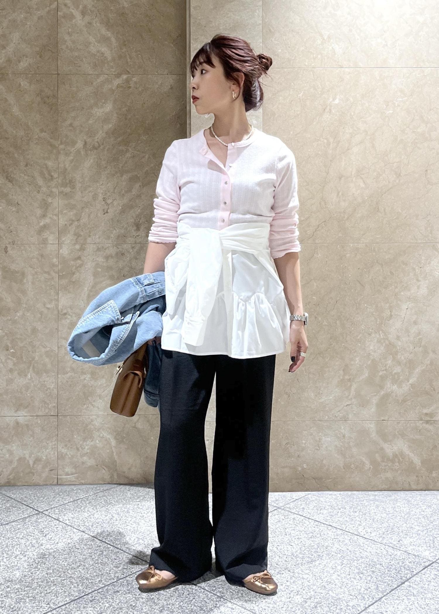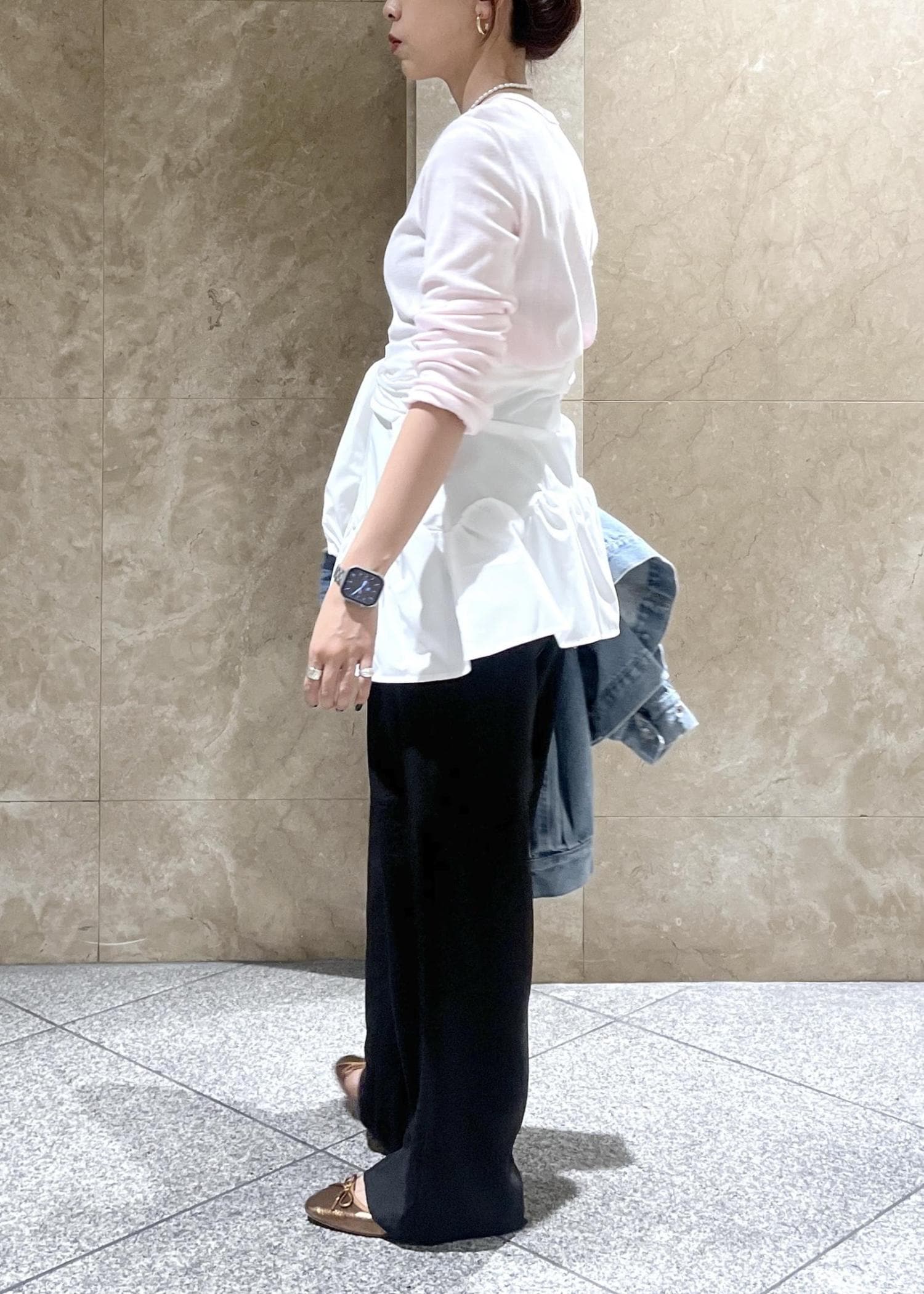 柔らかい素材感でサラッと着られるので、一枚での着用はもちろん、ペプラムを活かしたレイヤードスタイルにも重宝しそう◎