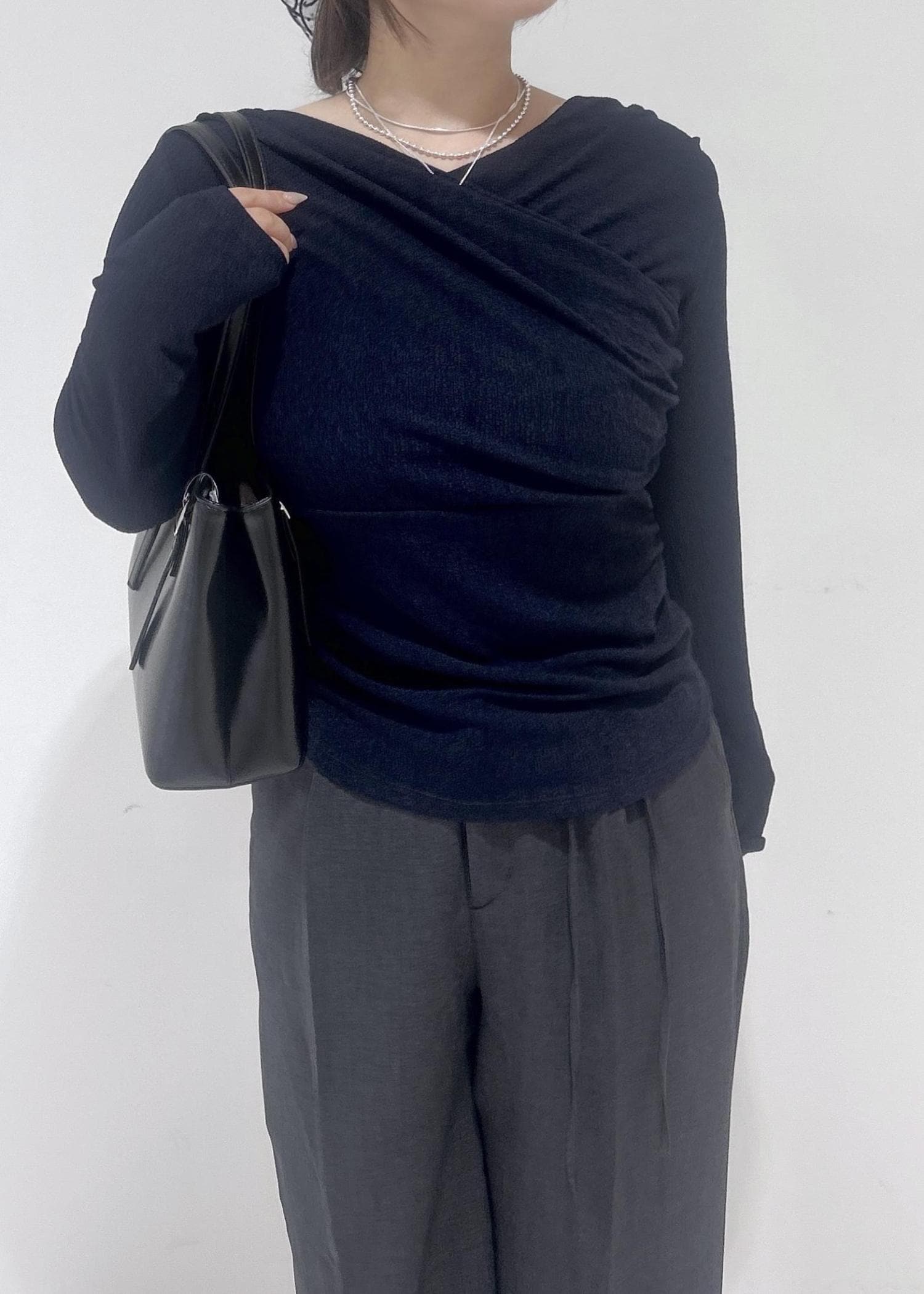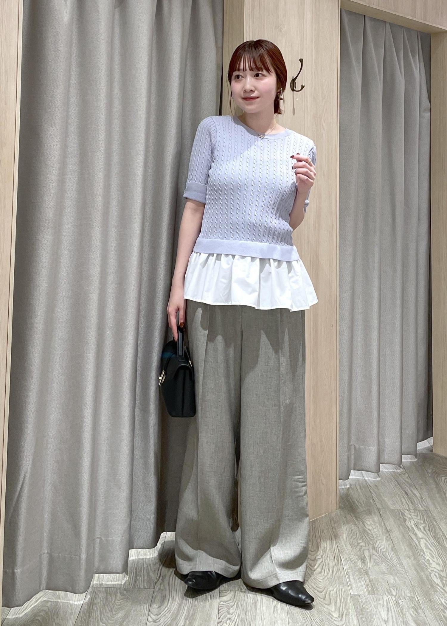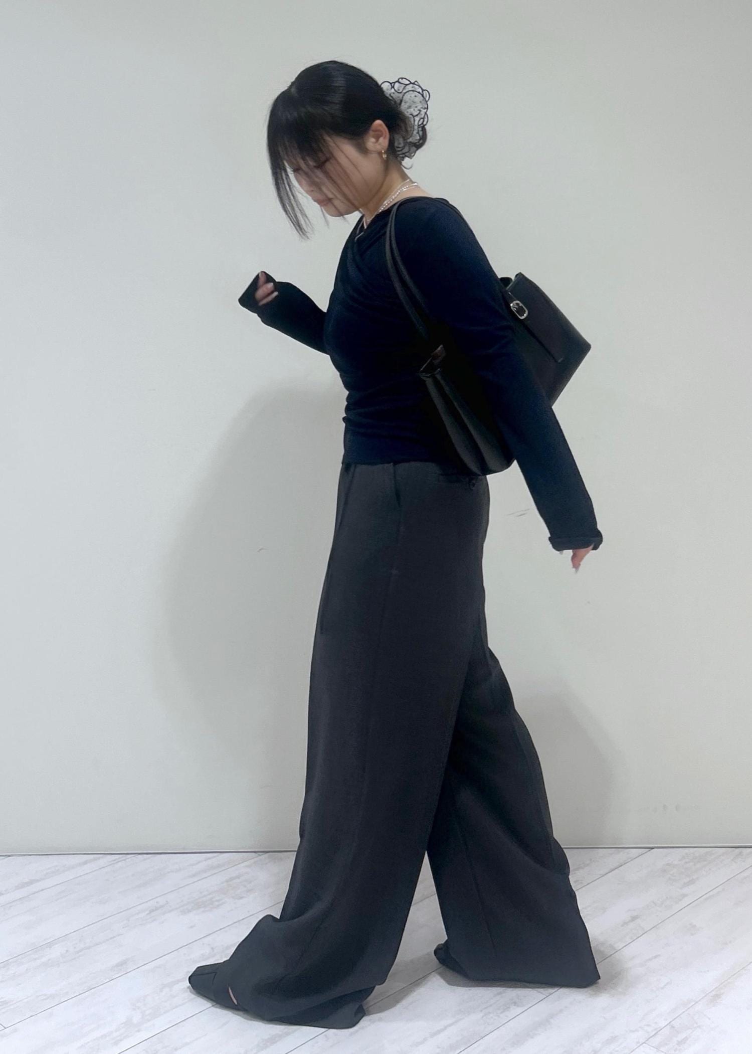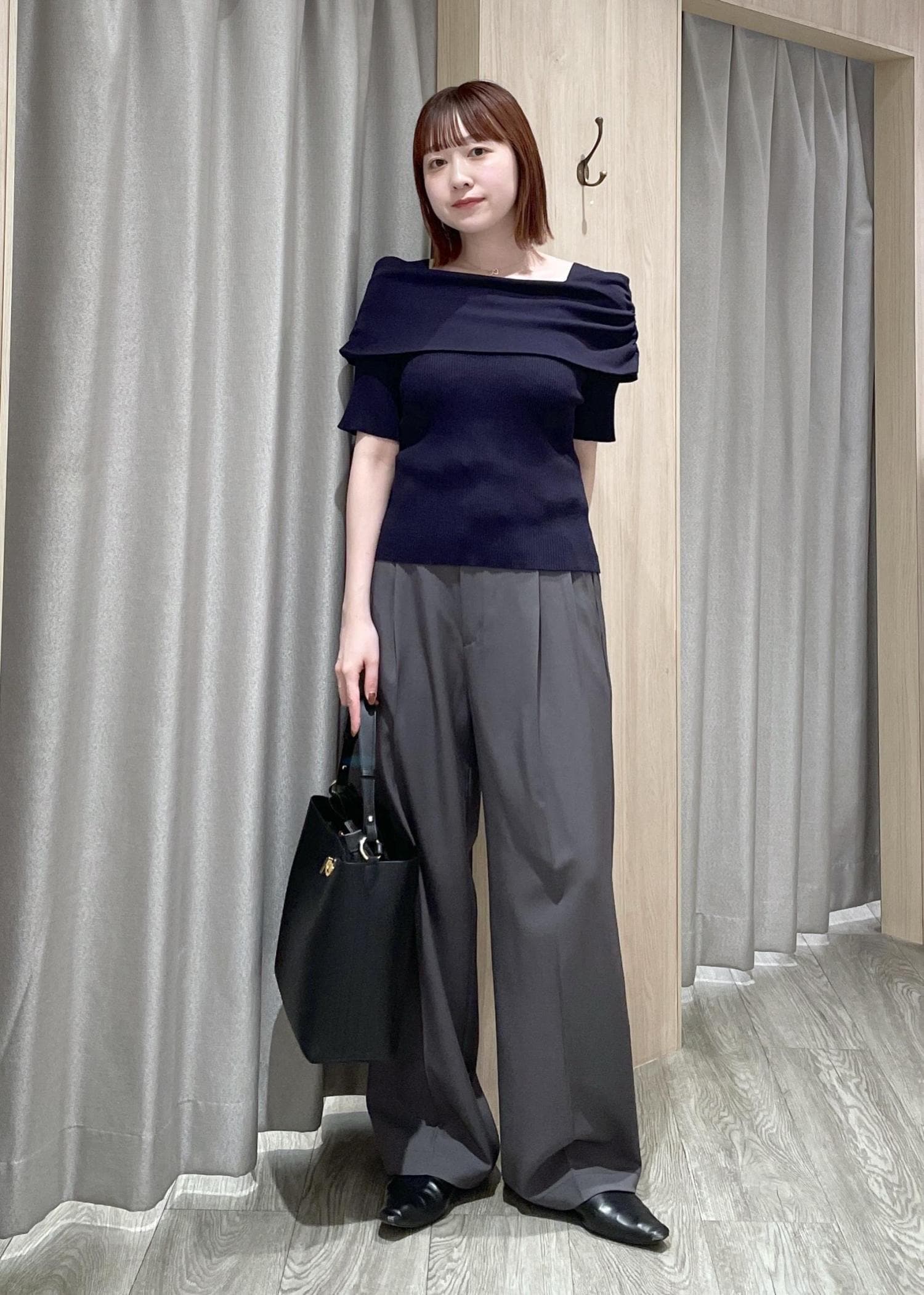 デザイン性のあるトップスに、シンプルなパンツを合わせたバランスの取れた大人コーデに仕上げました✨