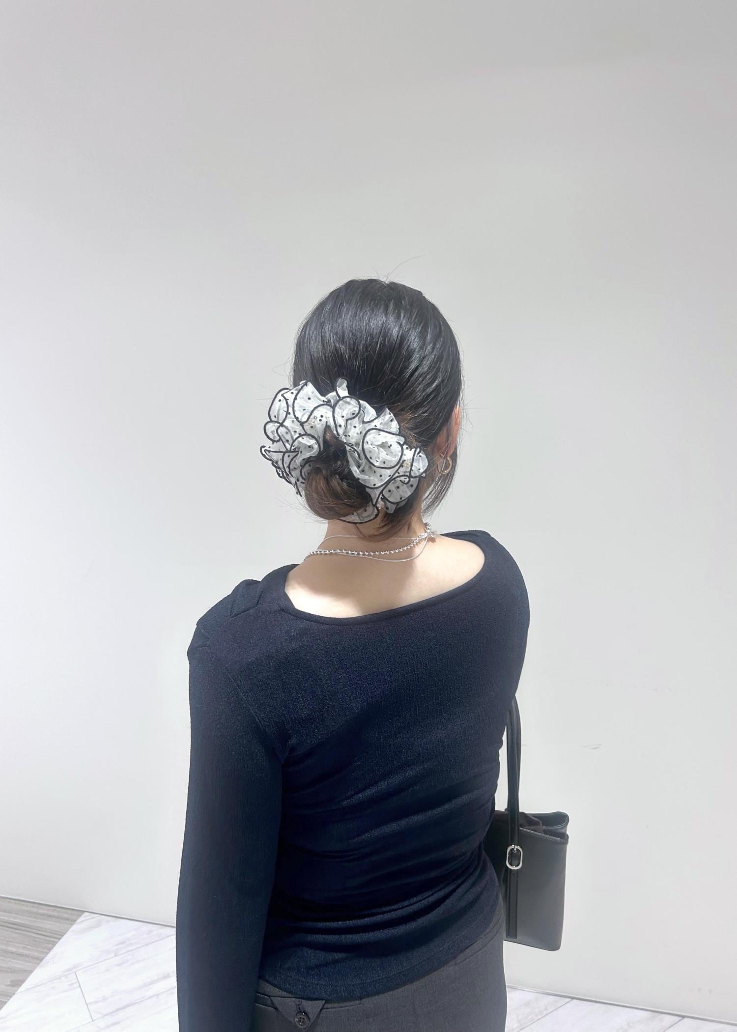 VISシアードットボリュームシュシュホワイト / F¥2,959レビュー存在感のあるドットシュシュ。手首につけても、コーディネートのワンポイントになります✨