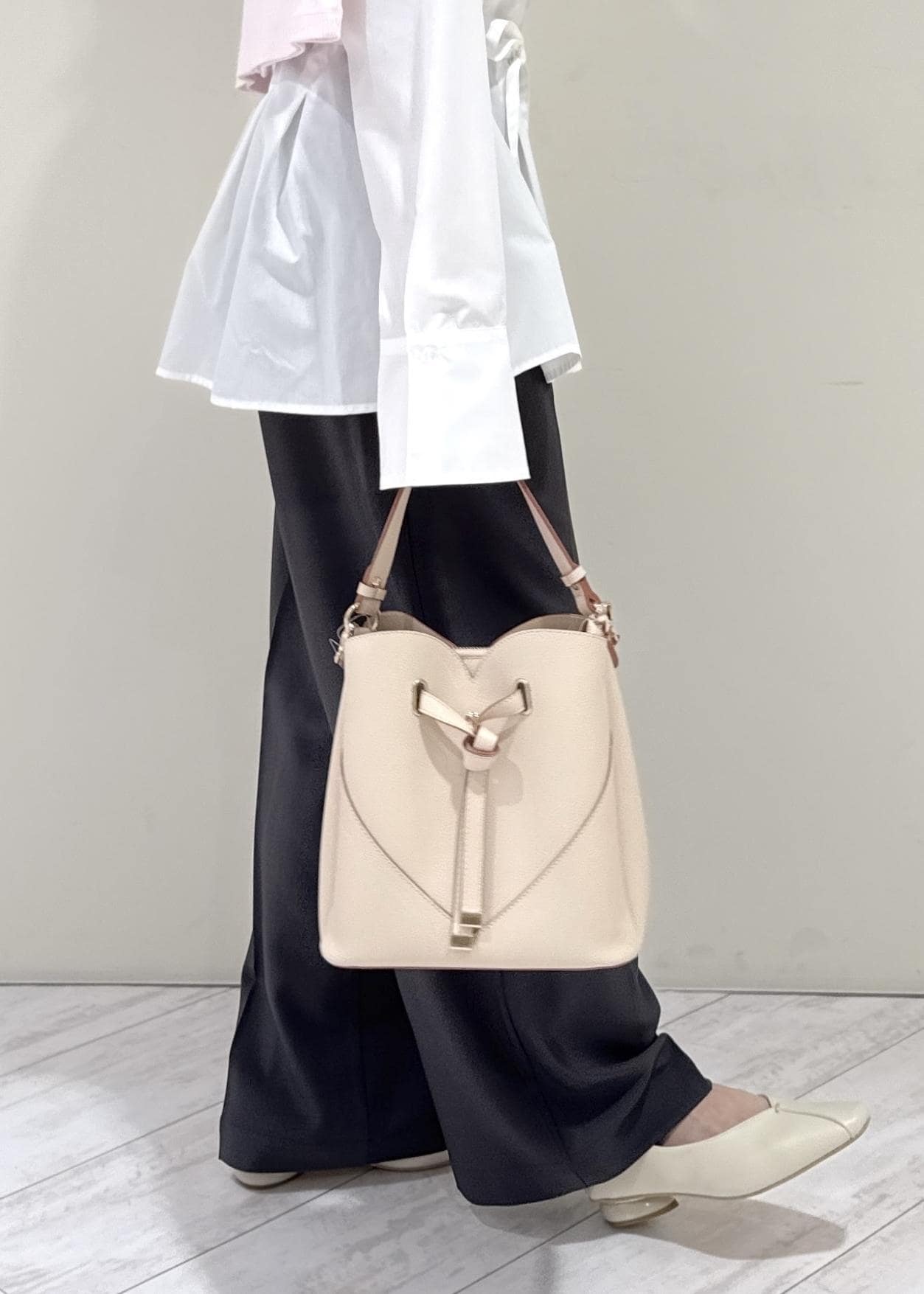 小物もピンクベージュのハートカットバッグにし、統一感を出しました!