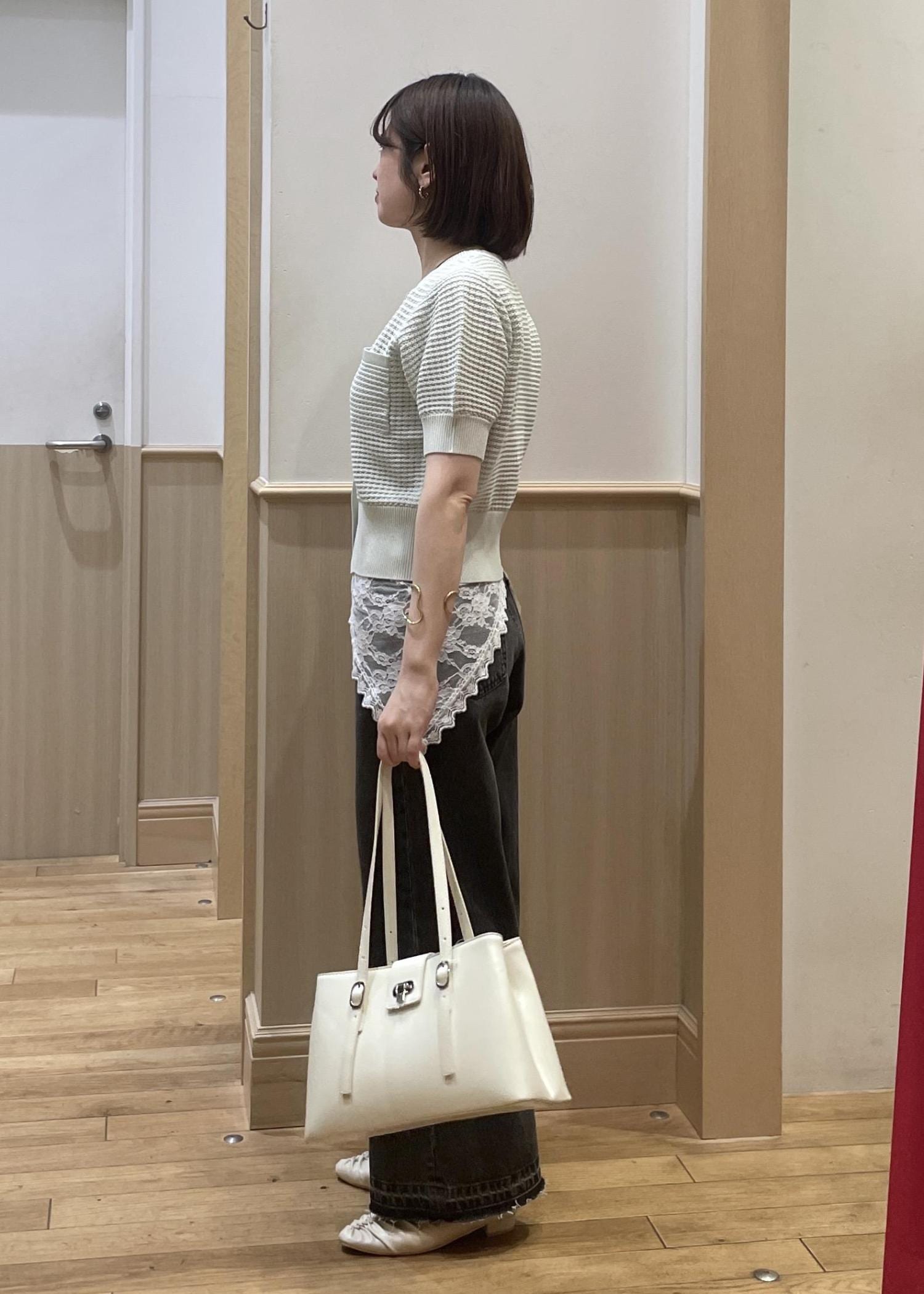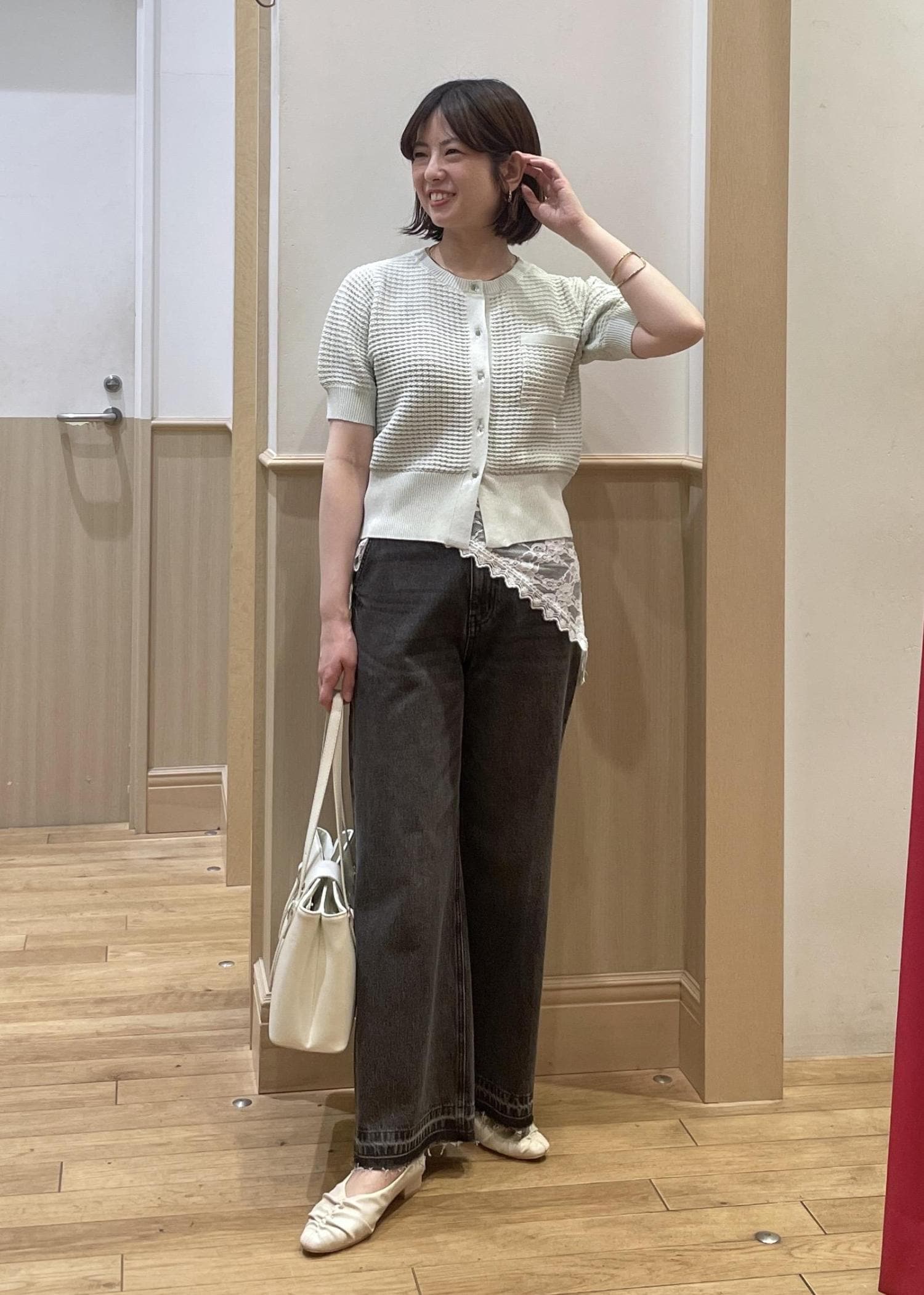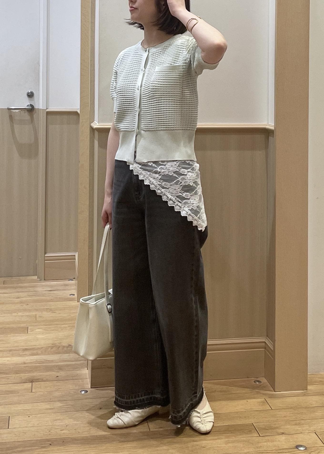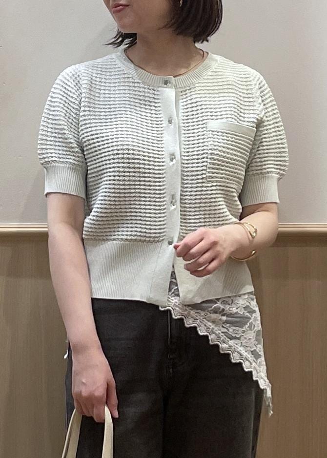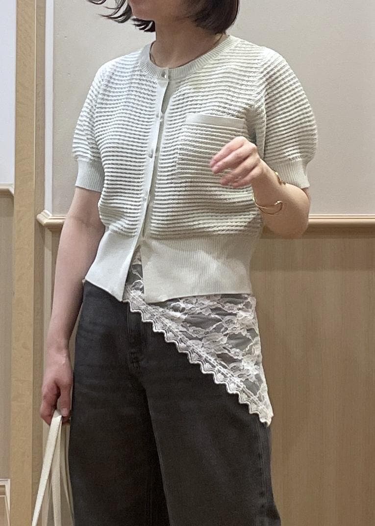身長156cmで腰丈で、コンパクトなシルエットのカーディガンです。