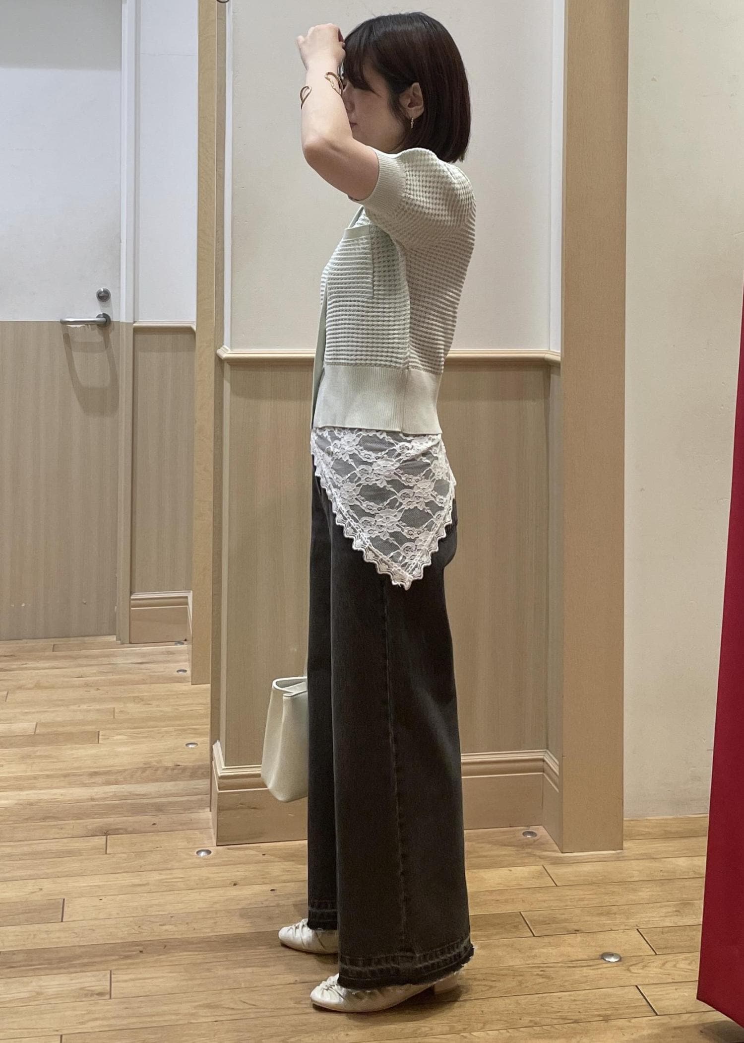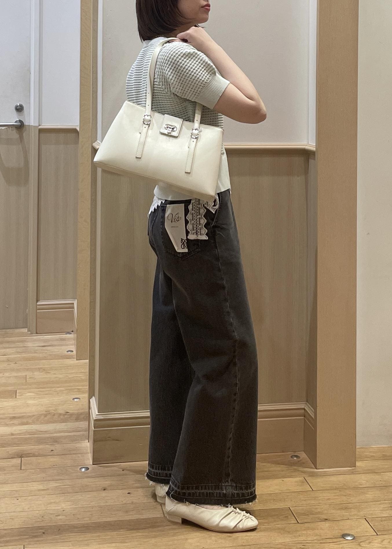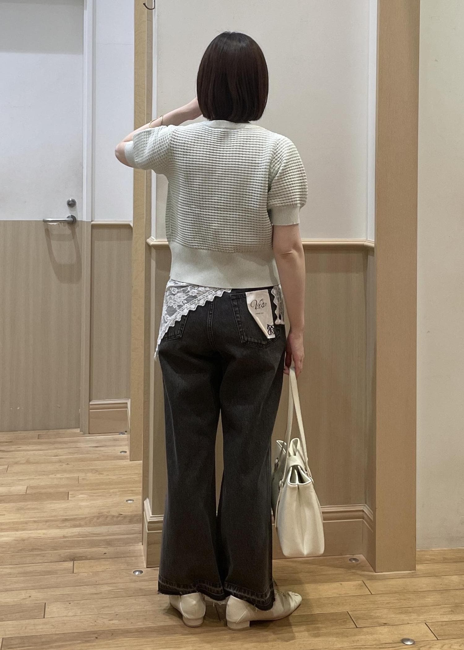 VISバギーワイドデニムパンツブラック系 / SS¥8,899レビュー普段VISのボトムはSサイズがちょうど良いですが、こちらはSサイズはウエストが緩く、着丈も長めだったのでSSサイズを着用。