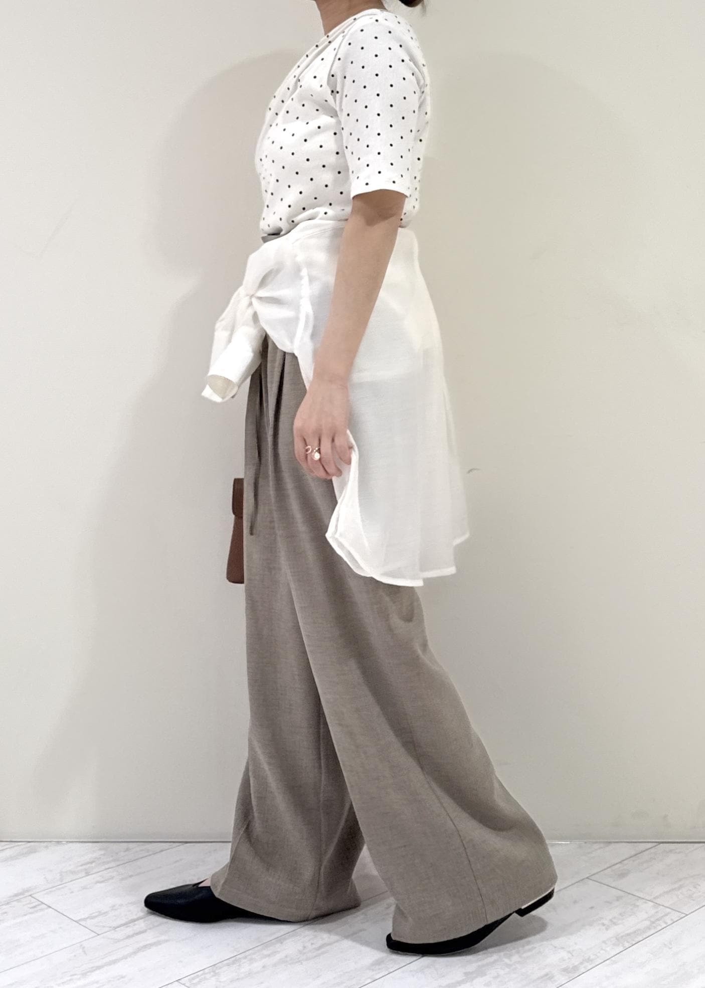 ゆるっとしたシルエットですが、ハイウエストなので脚長効果もありスッキリ見えします◎