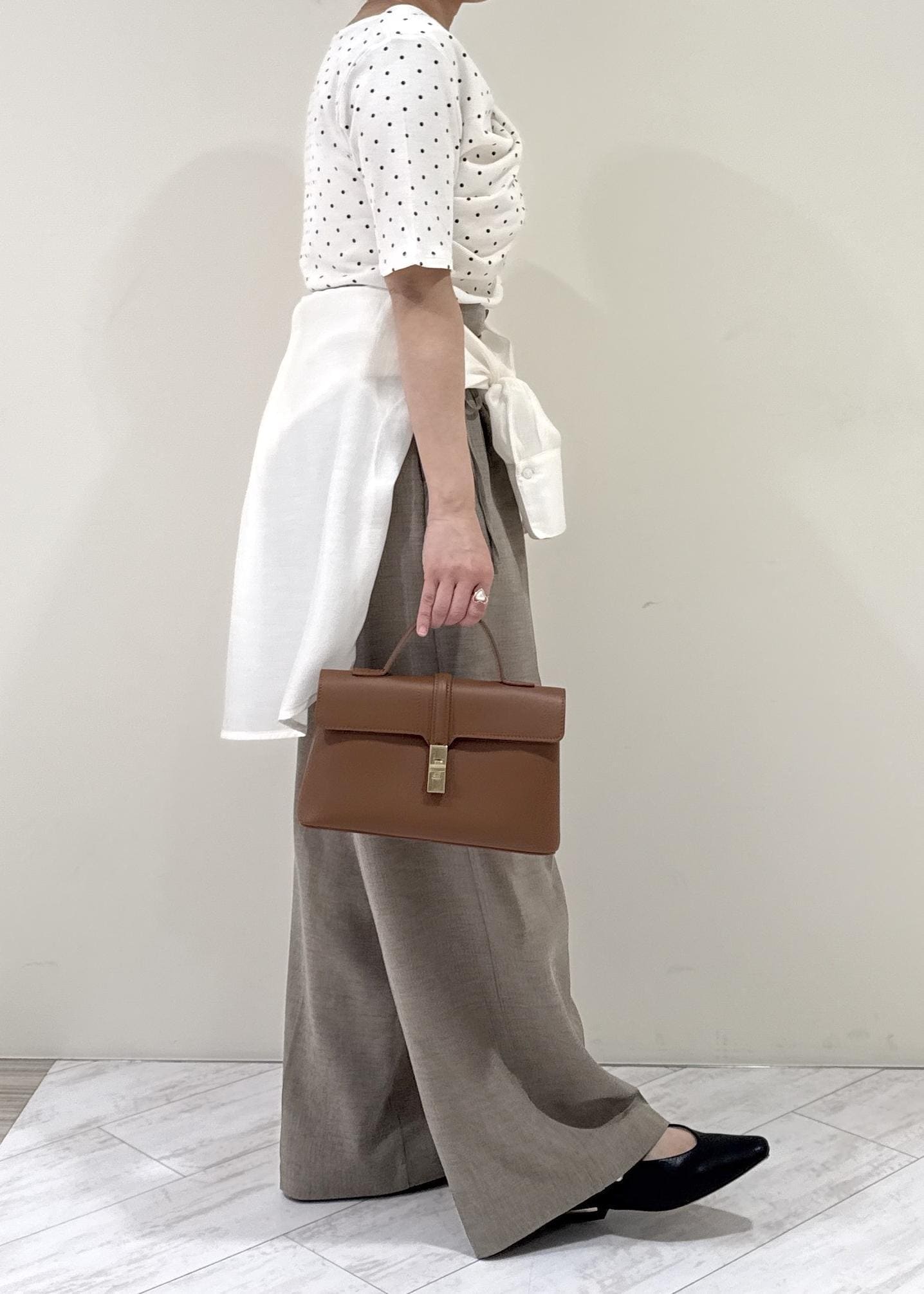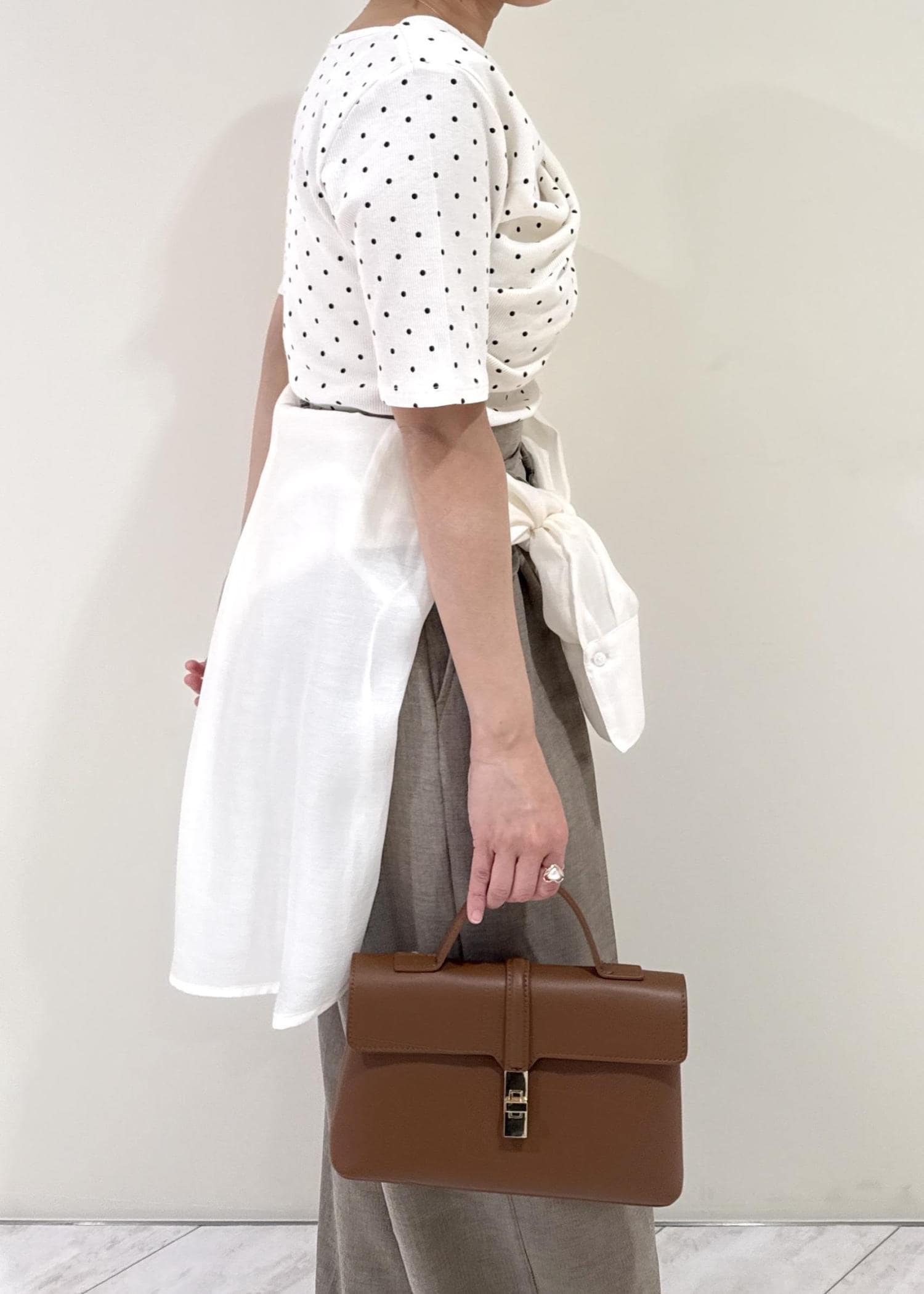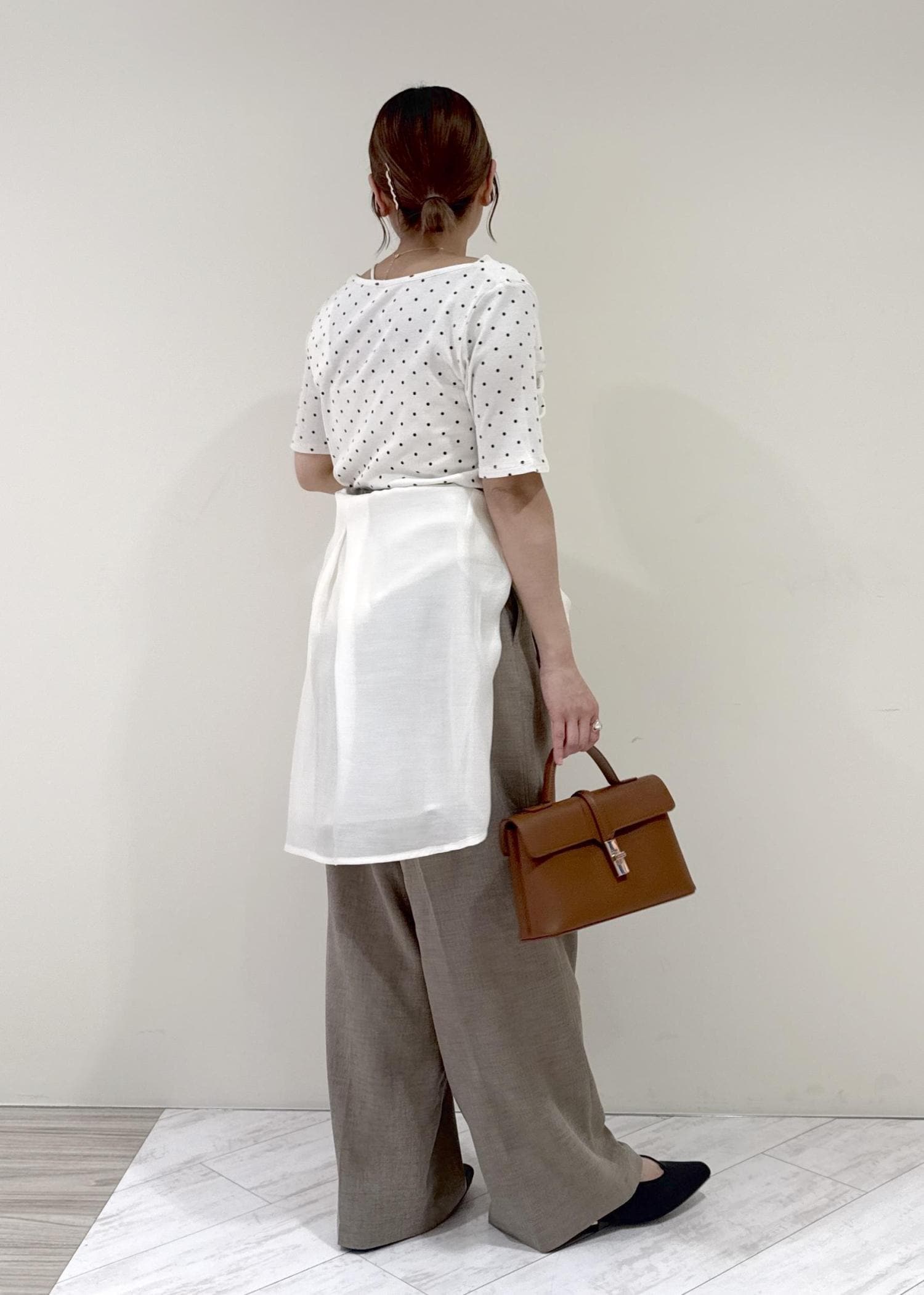 身長152cmでSサイズを着用してますが、厚底やヒールがあると安心する丈感なので、ジャストサイズがお好みの方はSSサイズがおすすめです。 -