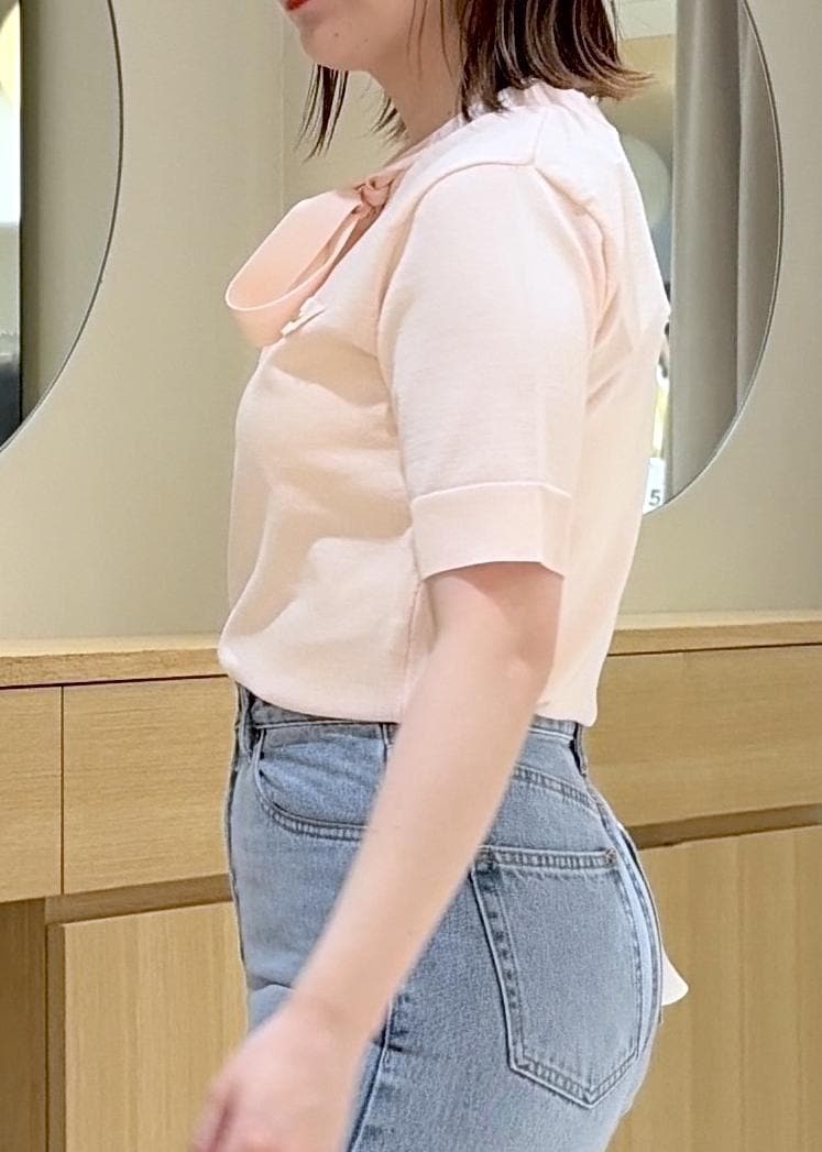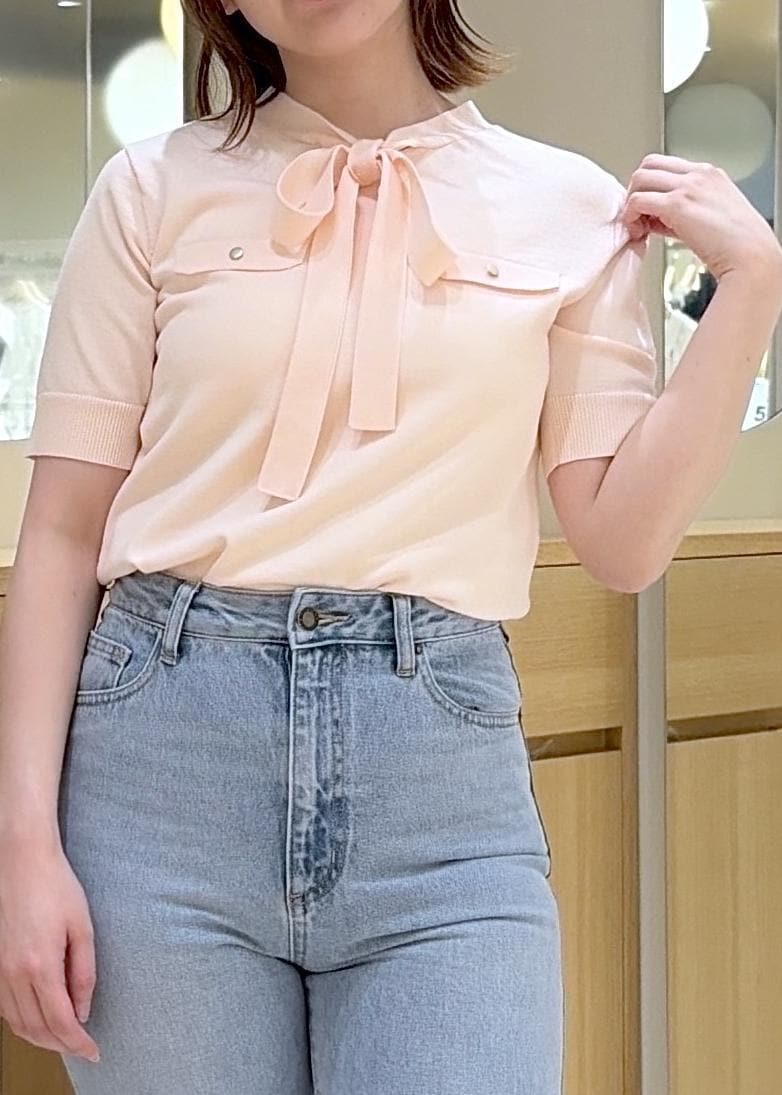 VISリボン付き半袖ニットプルオーバー/イージーケアピンク / F¥5,489レビューボウタイデザインニットは、