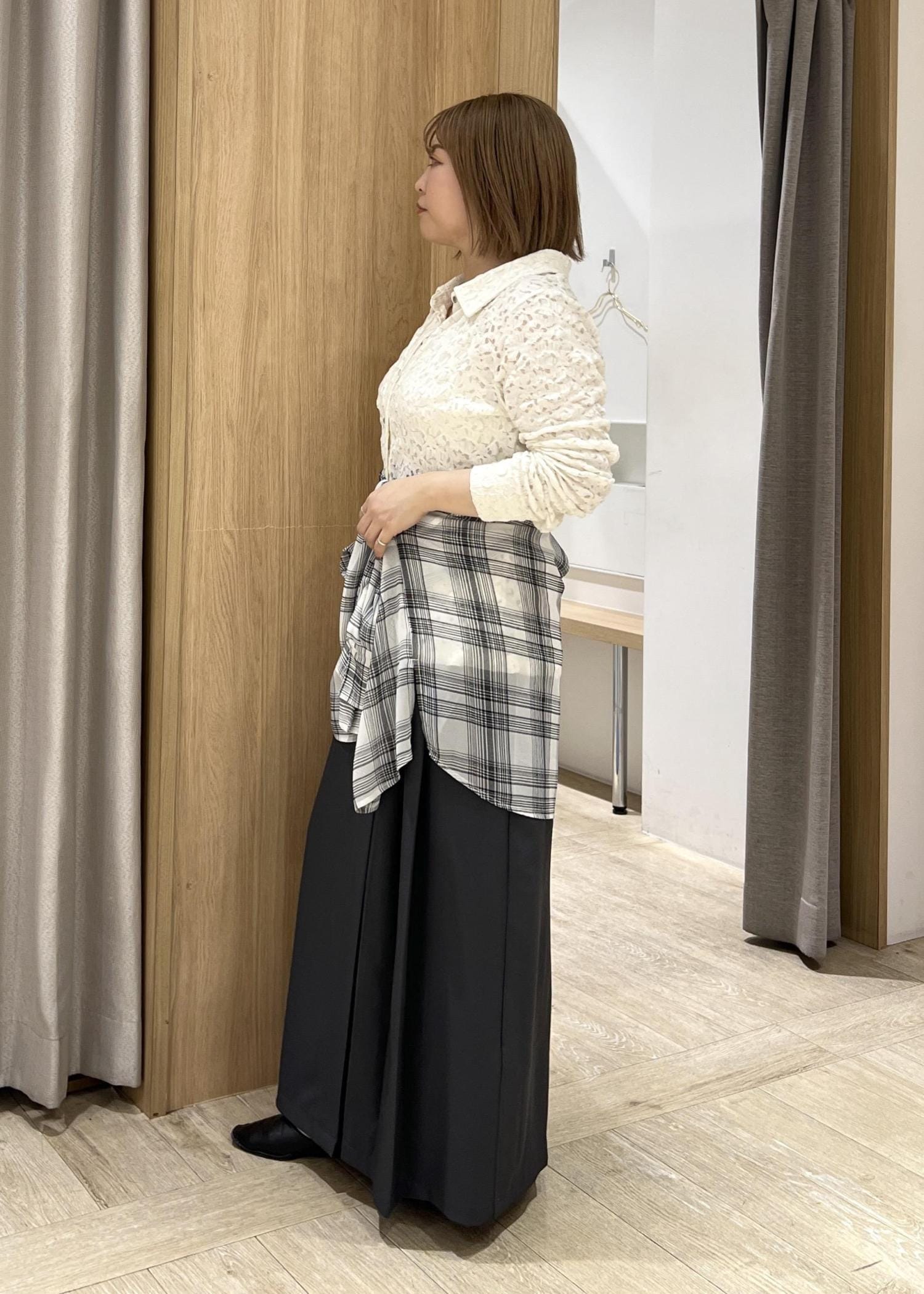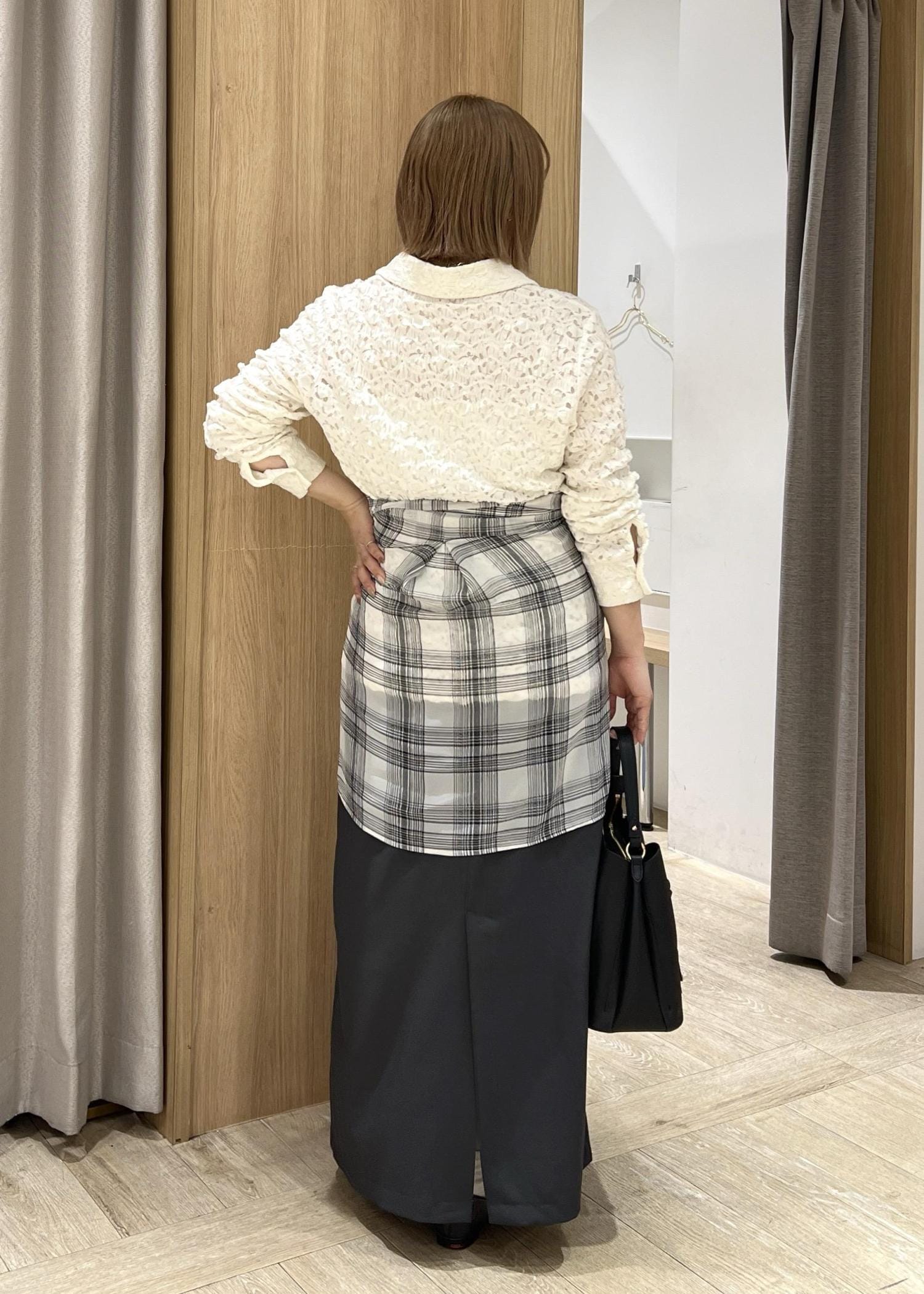 身長152cmで後ろはヒップが隠れる丈感で、肉感を拾いにくいので体型カバーもできます! -