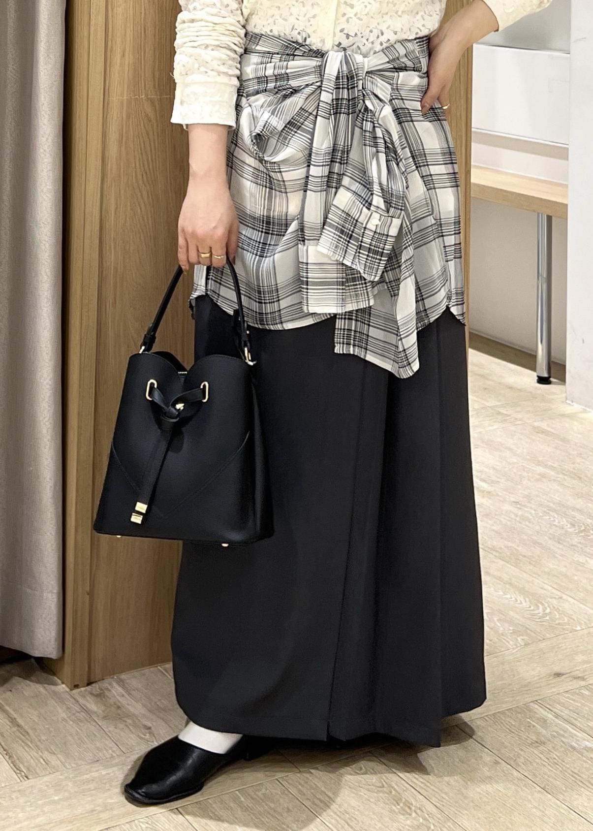 サイドプリーツがアクセントになり、しっかりめの生地ですが足にまとわり付かないので涼しく履けます◎ -