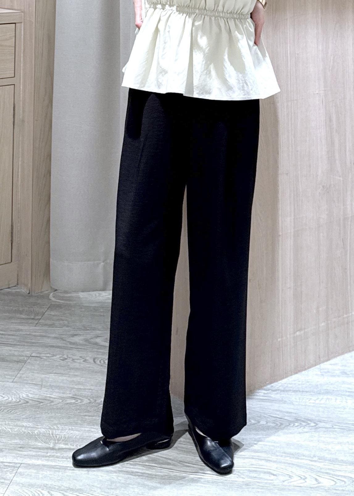 リネンライクのサラッとした素材で夏まで履きやすいワイドパンツです。