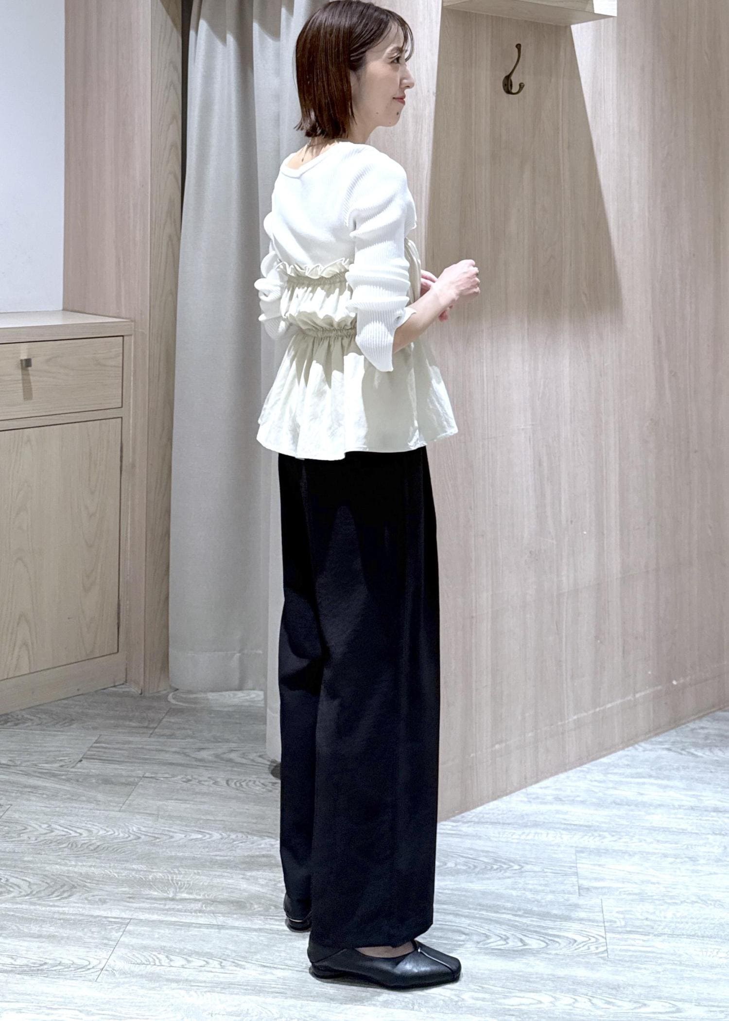 ウエスト部分もゴムが入っていてメリハリが出るので骨格ナチュラルさんにもオススメです♪ -