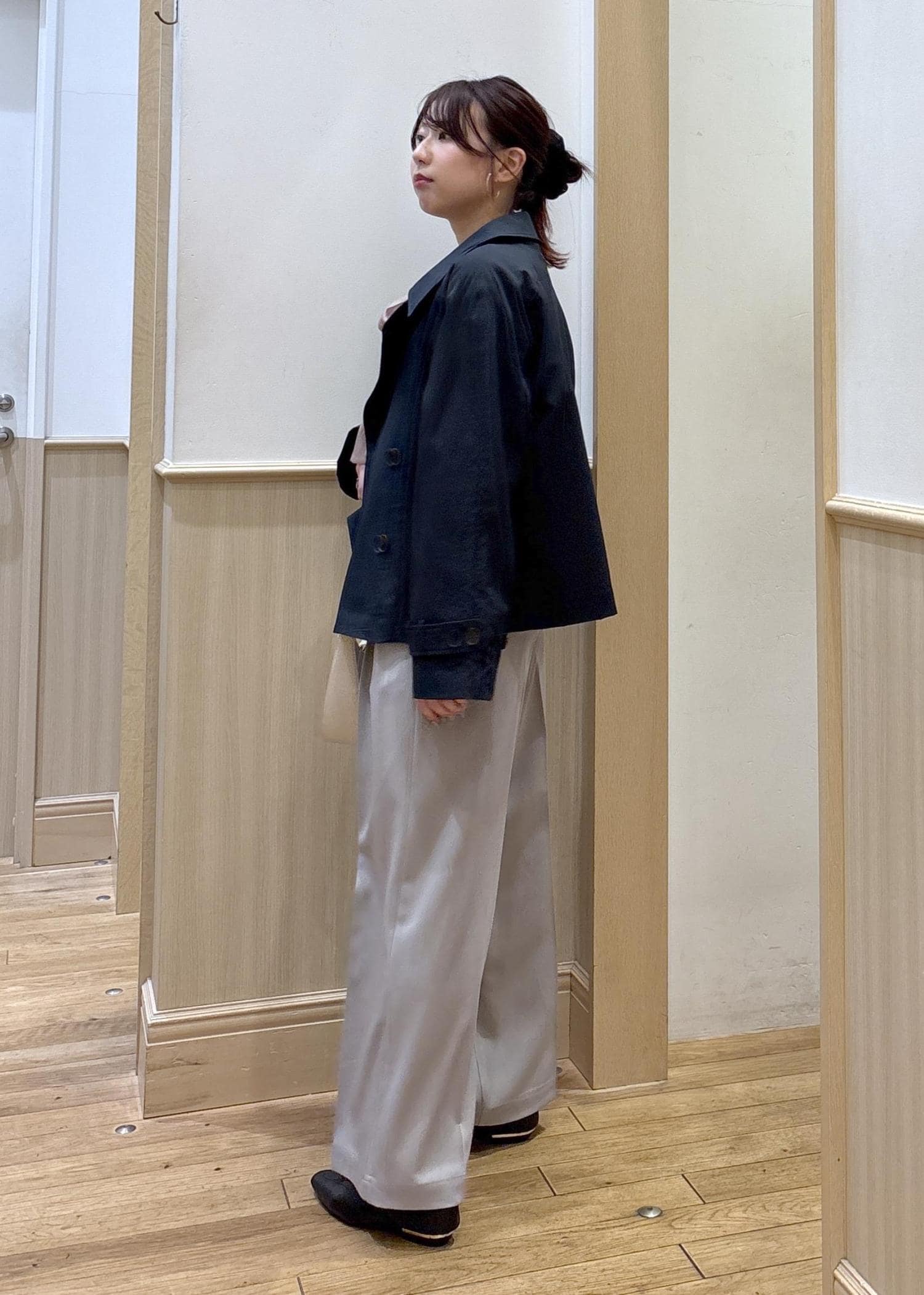 156センチでお尻が隠れないくらい、腰くらいの長さなのでボトムの形問わずにスタイルアップしてくれるアウターです。