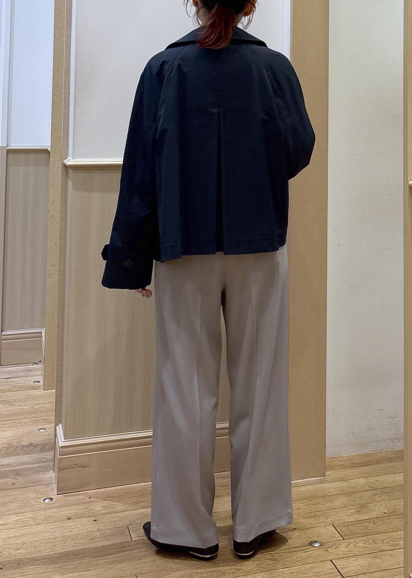 股下は156センチで踵にかからないかくらいだったので、お尻周りや筒幅をゆったり着用したい方はMサイズでも問題なく綺麗なシルエットで着用できると思います!