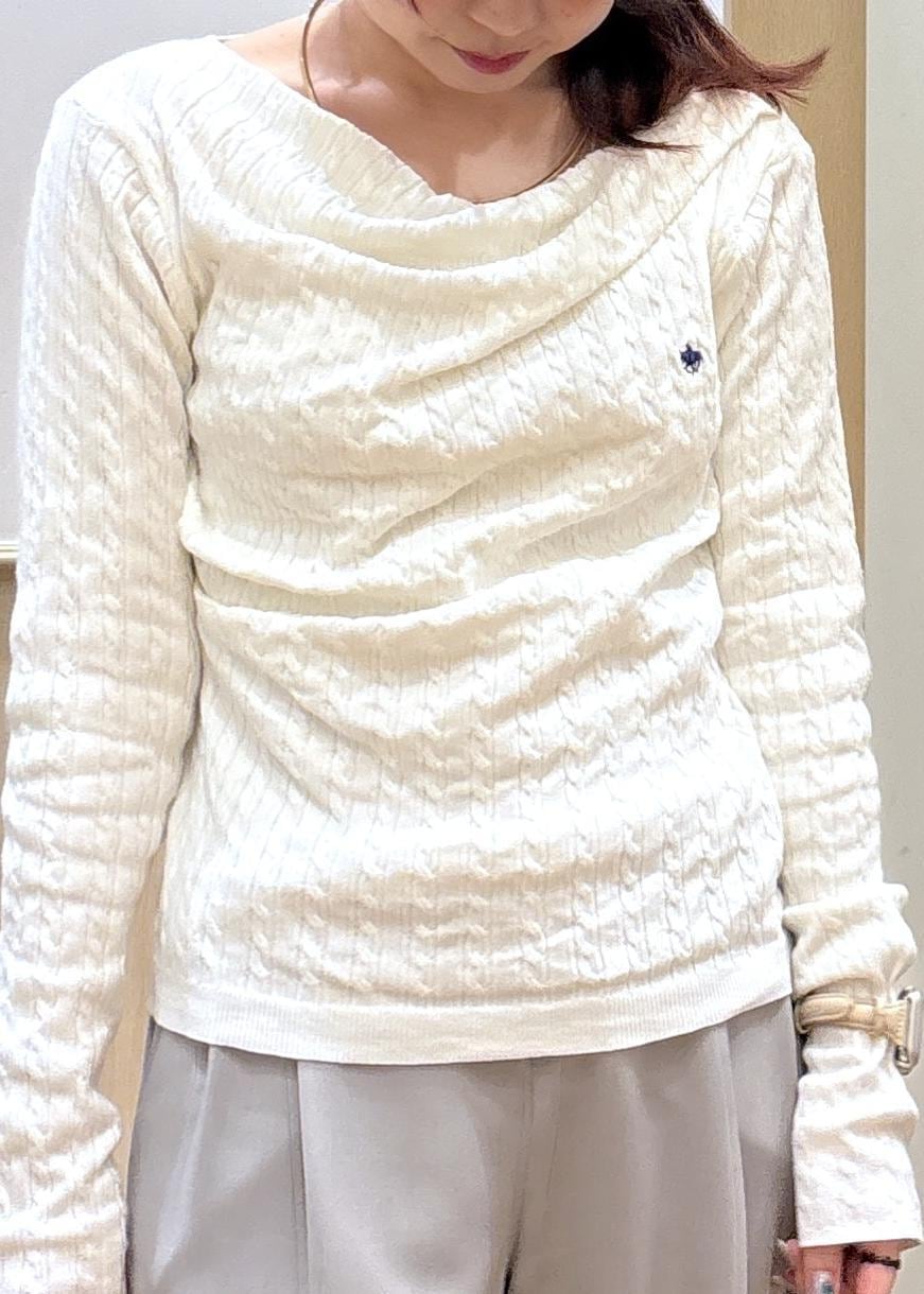 VIS【POLO BCS】VIS別注ケーブルドレープトップスオフホワイト / F¥6,930レビュードレープデザインが可愛いニットです。