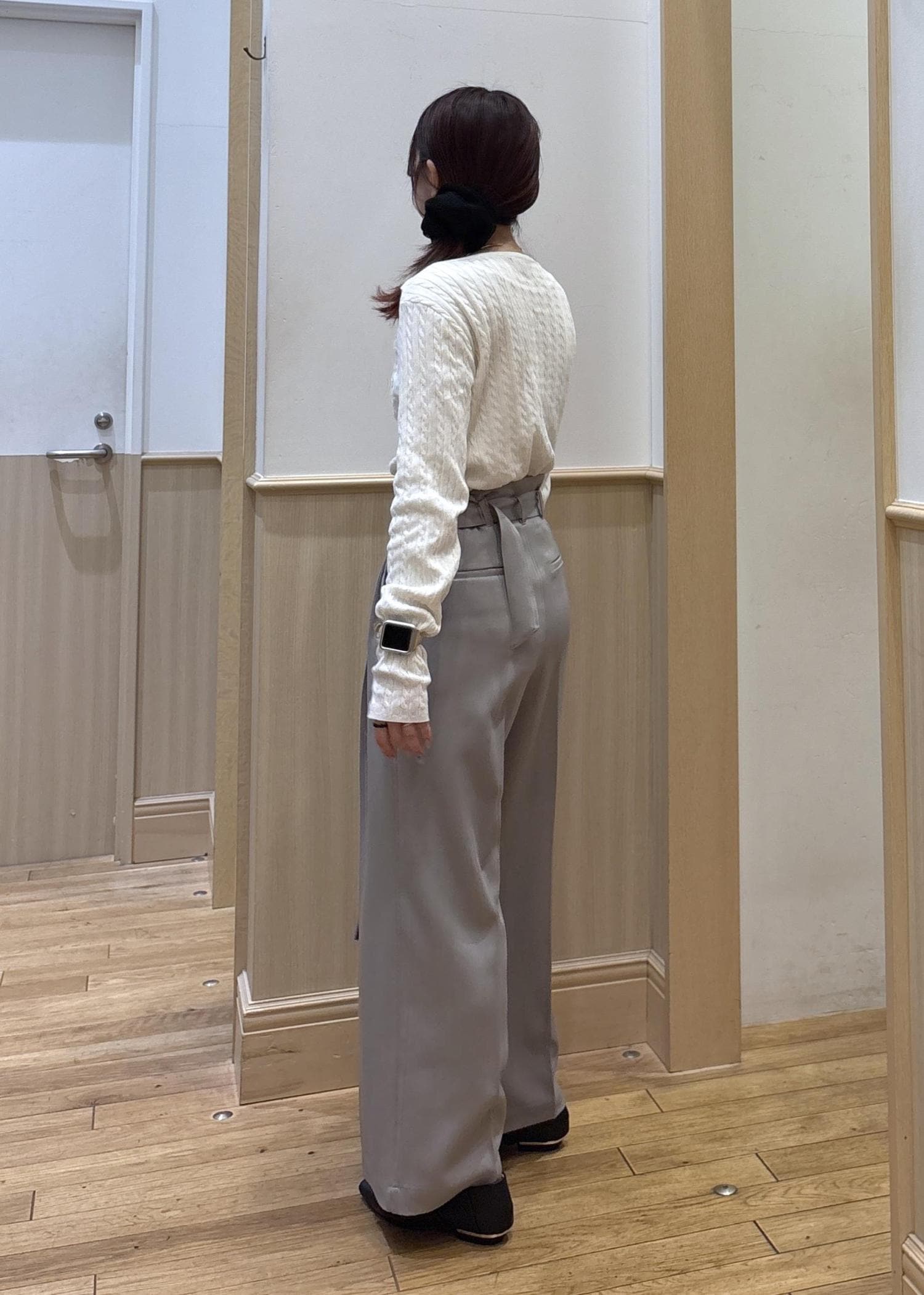 股下は156センチで踵にかからないかくらいだったので、お尻周りや筒幅をゆったり着用したい方はMサイズでも問題なく綺麗なシルエットで着用できると思います!