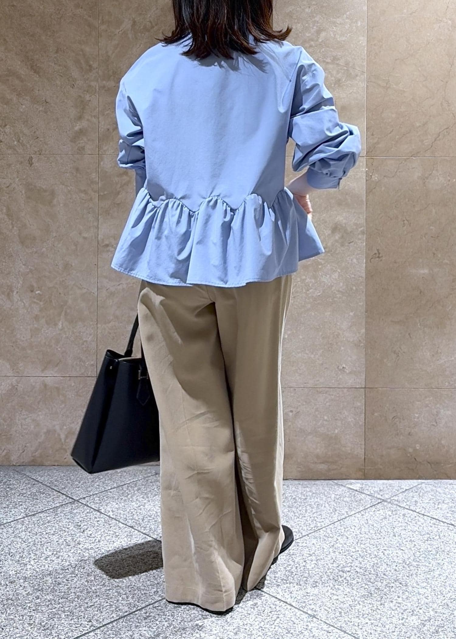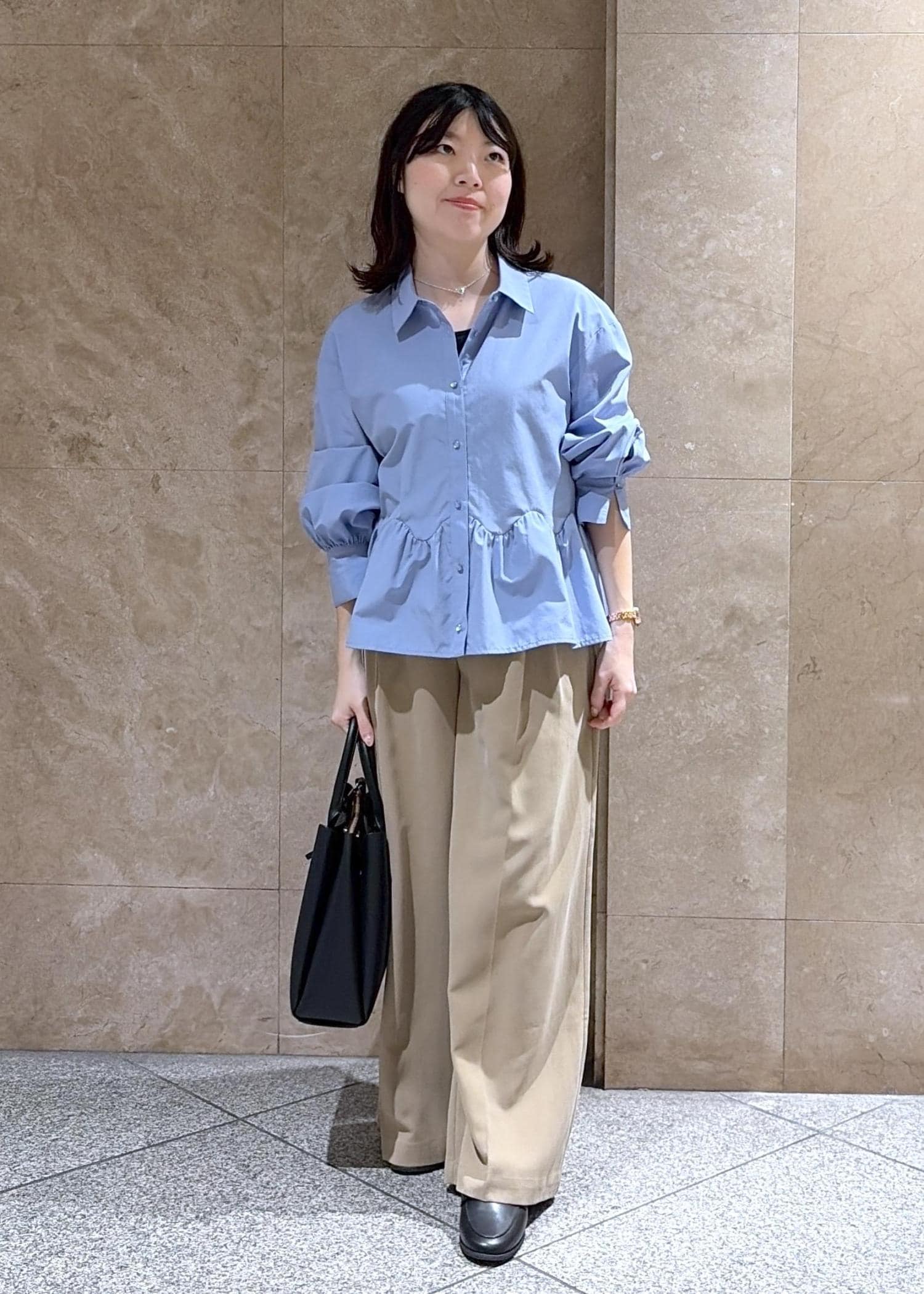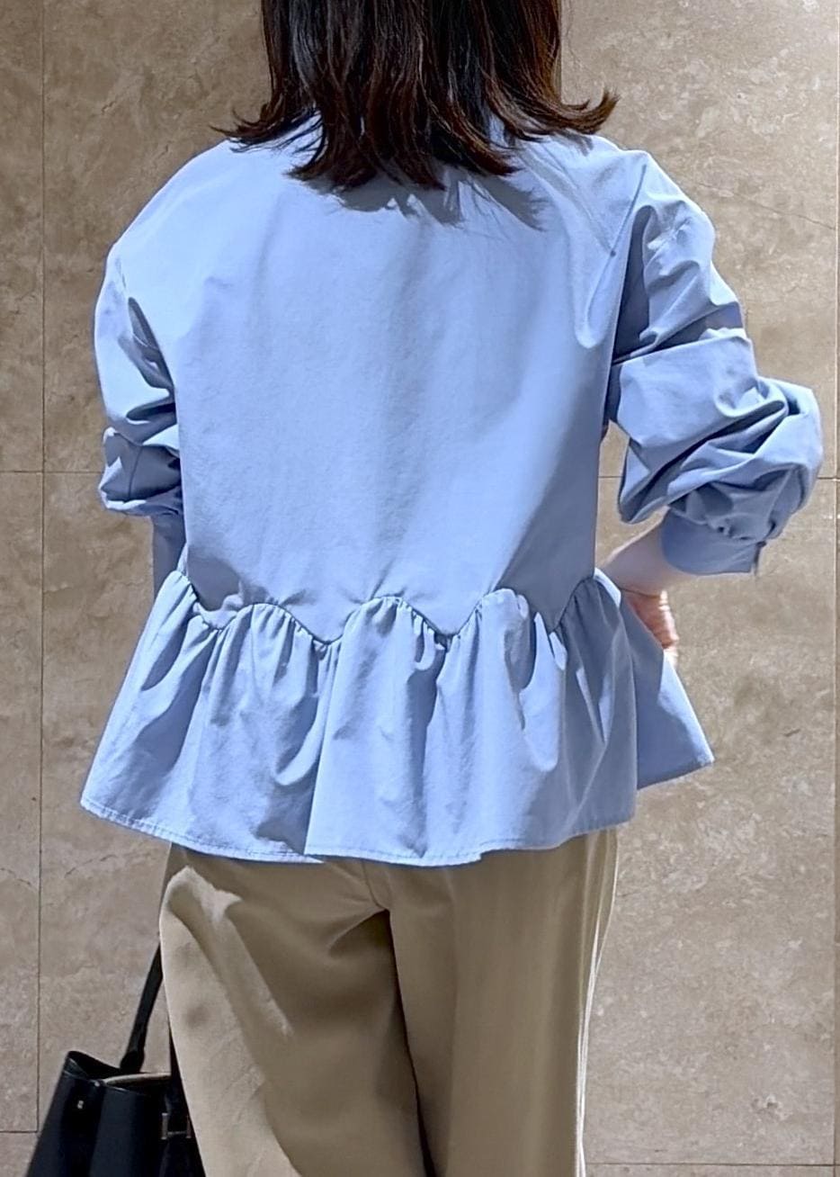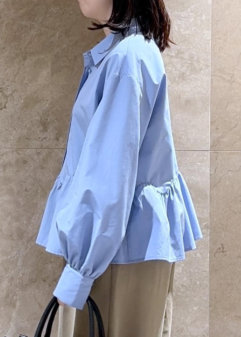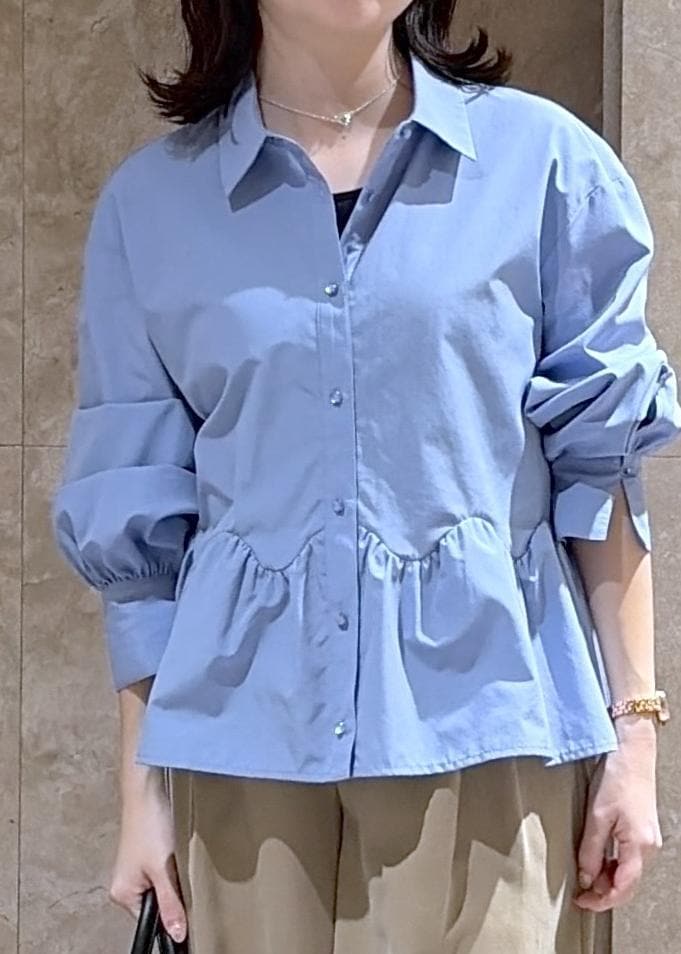 VISウエーブヘムペプラムシャツブルー / F¥6,589レビュー身長149cmでFサイズを着用し、腰にかかるぐらいの丈感でした!