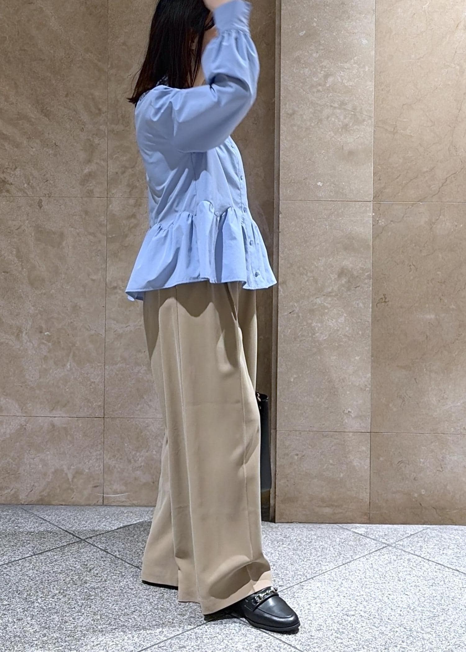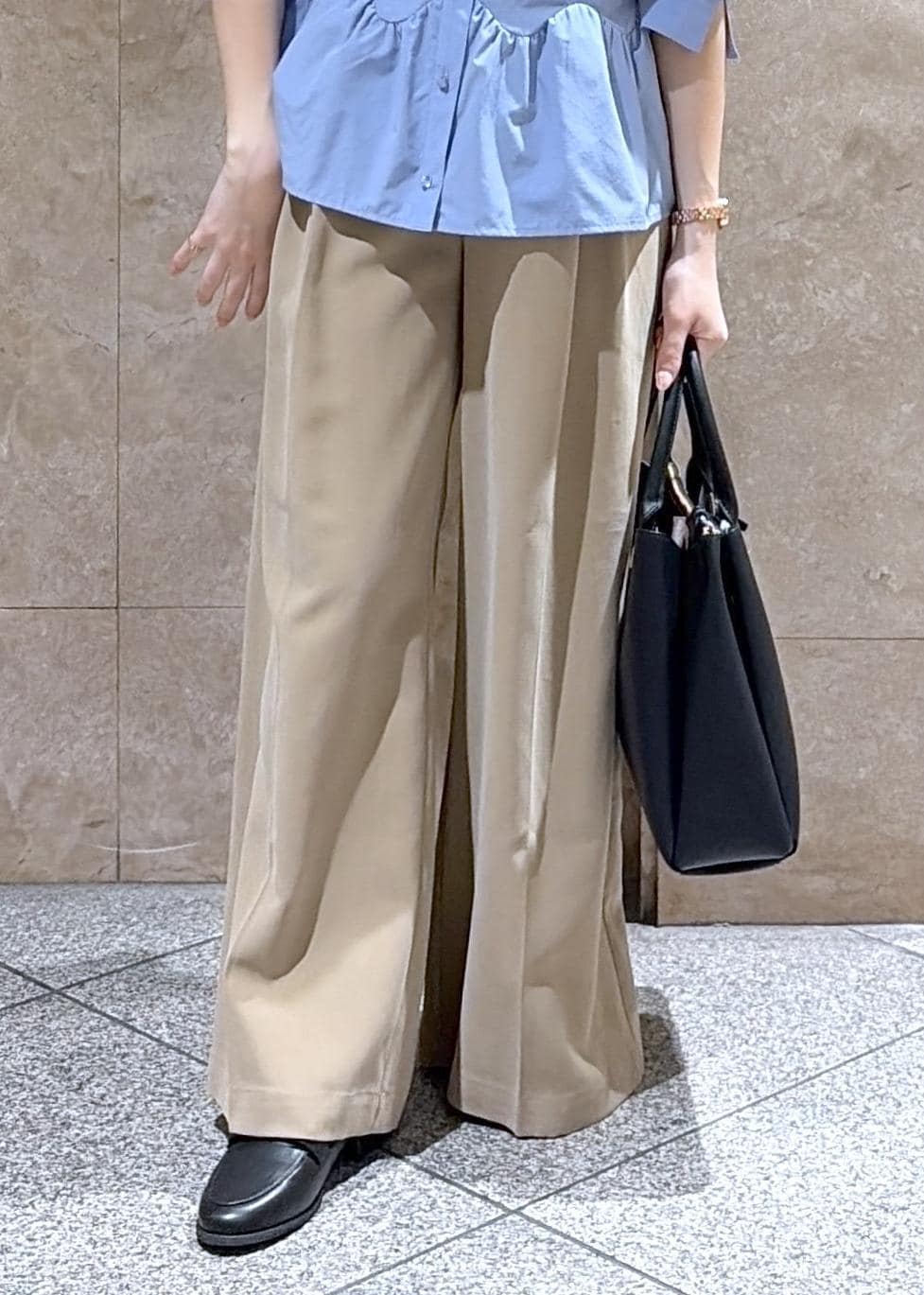 太めのシルエットですが、生地感はテロンとしてるので、とても履きやすかったです◎ -