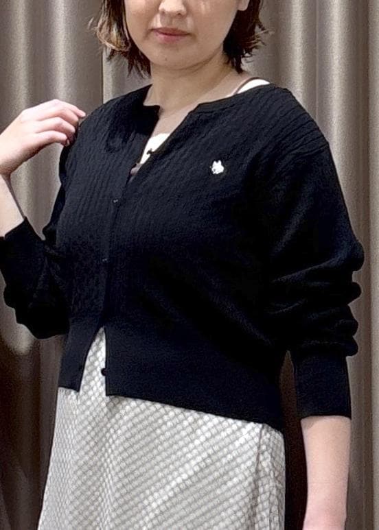VIS【POLO BCS】VIS別注ミニケーブルノーカラーカーディガンブラック / F¥6,930レビュー前開きで羽織りとして、また締めてトップスとしても使えるカーディガンです!ケーブル編みが柄見えして可愛いです!
