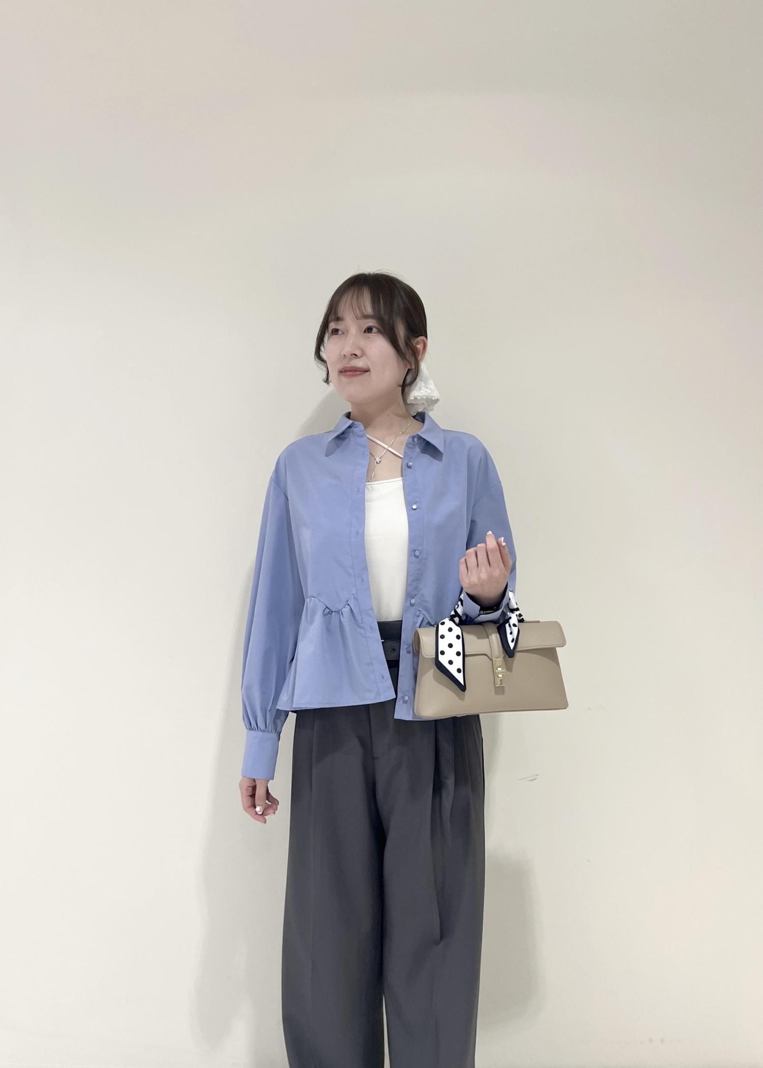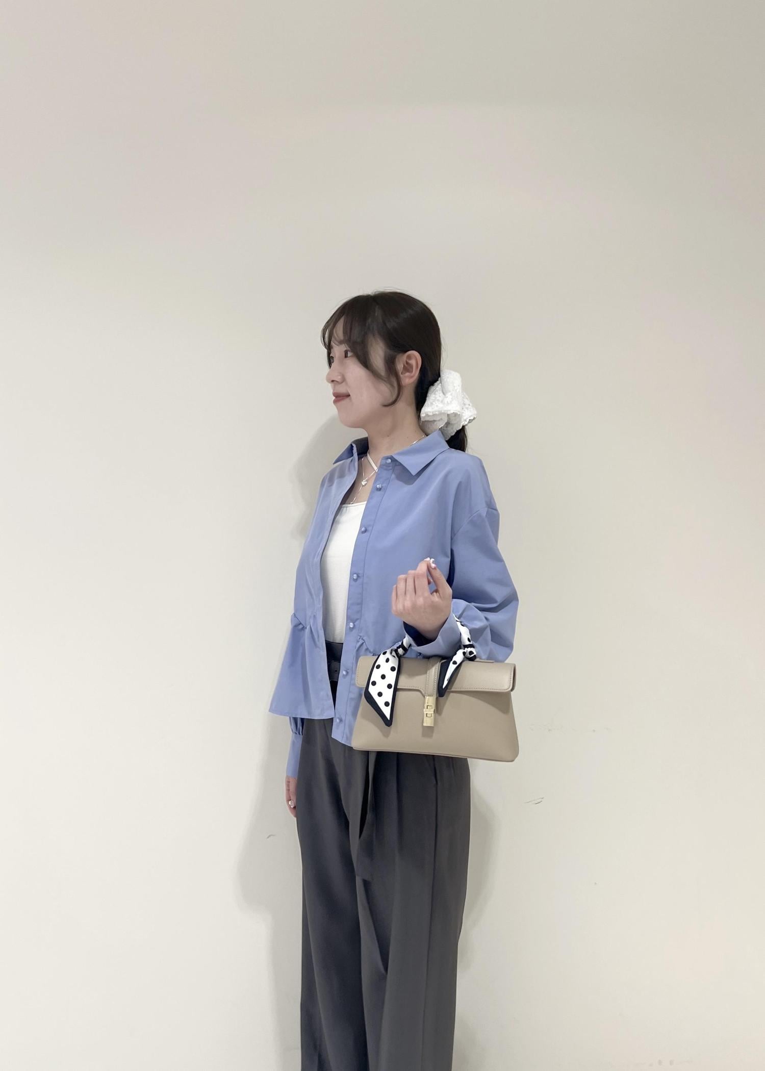 VISウエーブヘムペプラムシャツブルー / F¥6,589レビュー一枚着としても、キャミやTシャツの上からお羽織りとしても使えます!余裕のあるサイズ感で、着丈は腰にかかるくらいでした◎