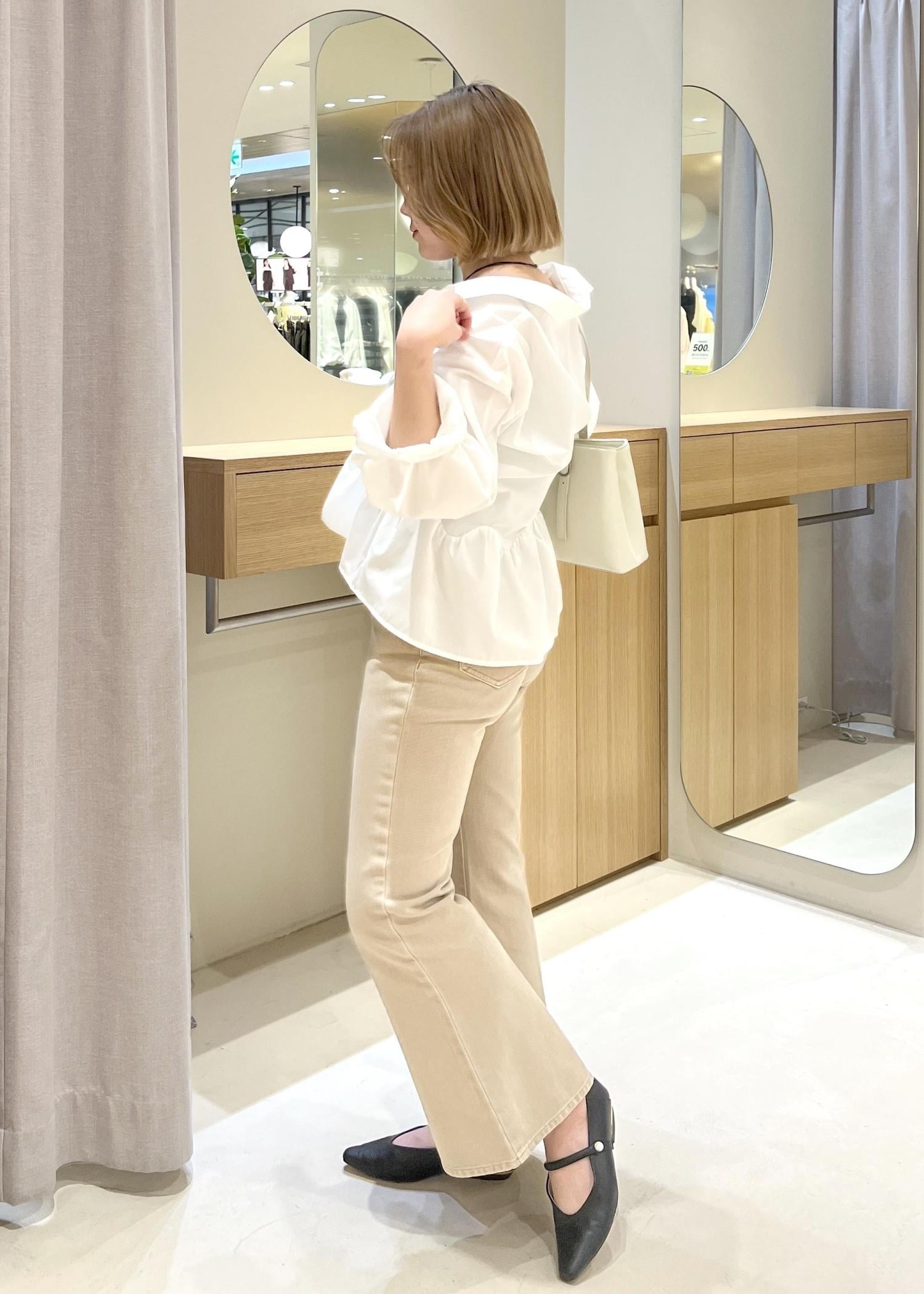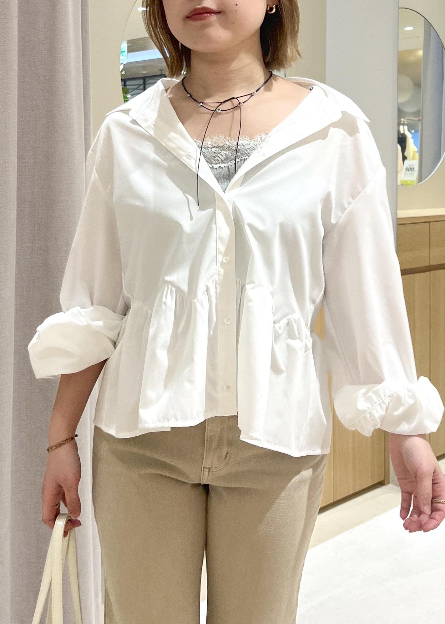 海へのドライブを意識したコーデです。シャツでカジュアルかつ涼しげにしましたが、インナーやペプラムなどディテールで可愛らしさが出るようにまとめました!