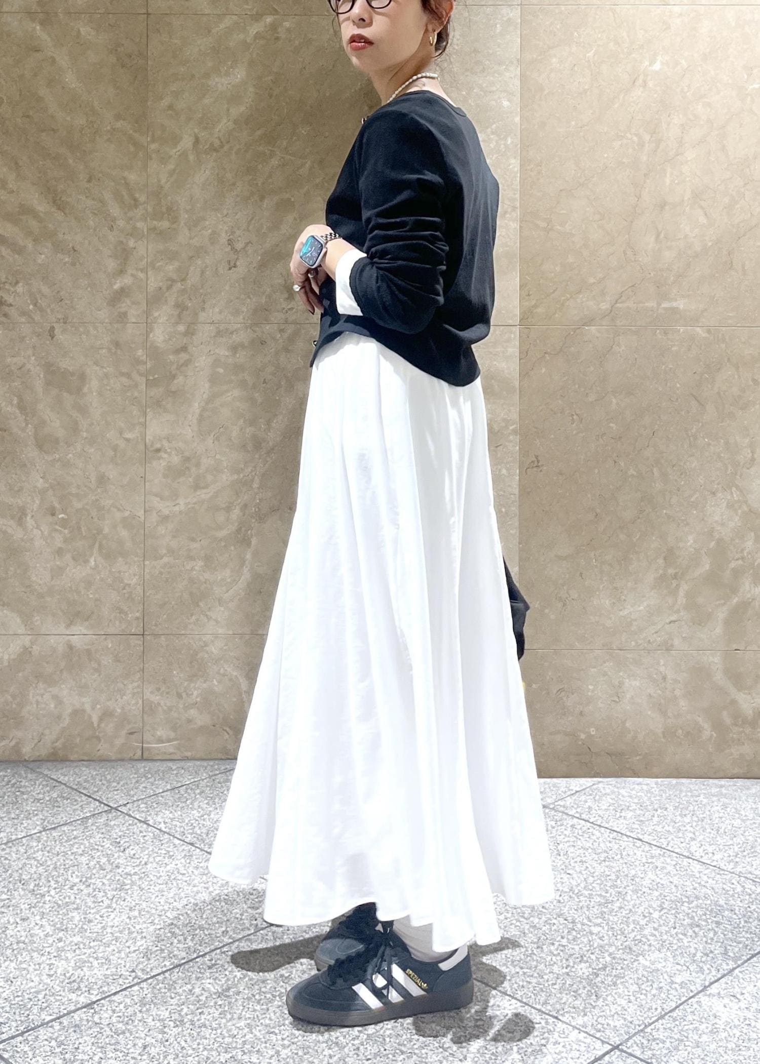 ふわっと柔らかく揺れる軽やかな素材感が、着心地はもちろんですが見た目にも軽さを与えてくれる。