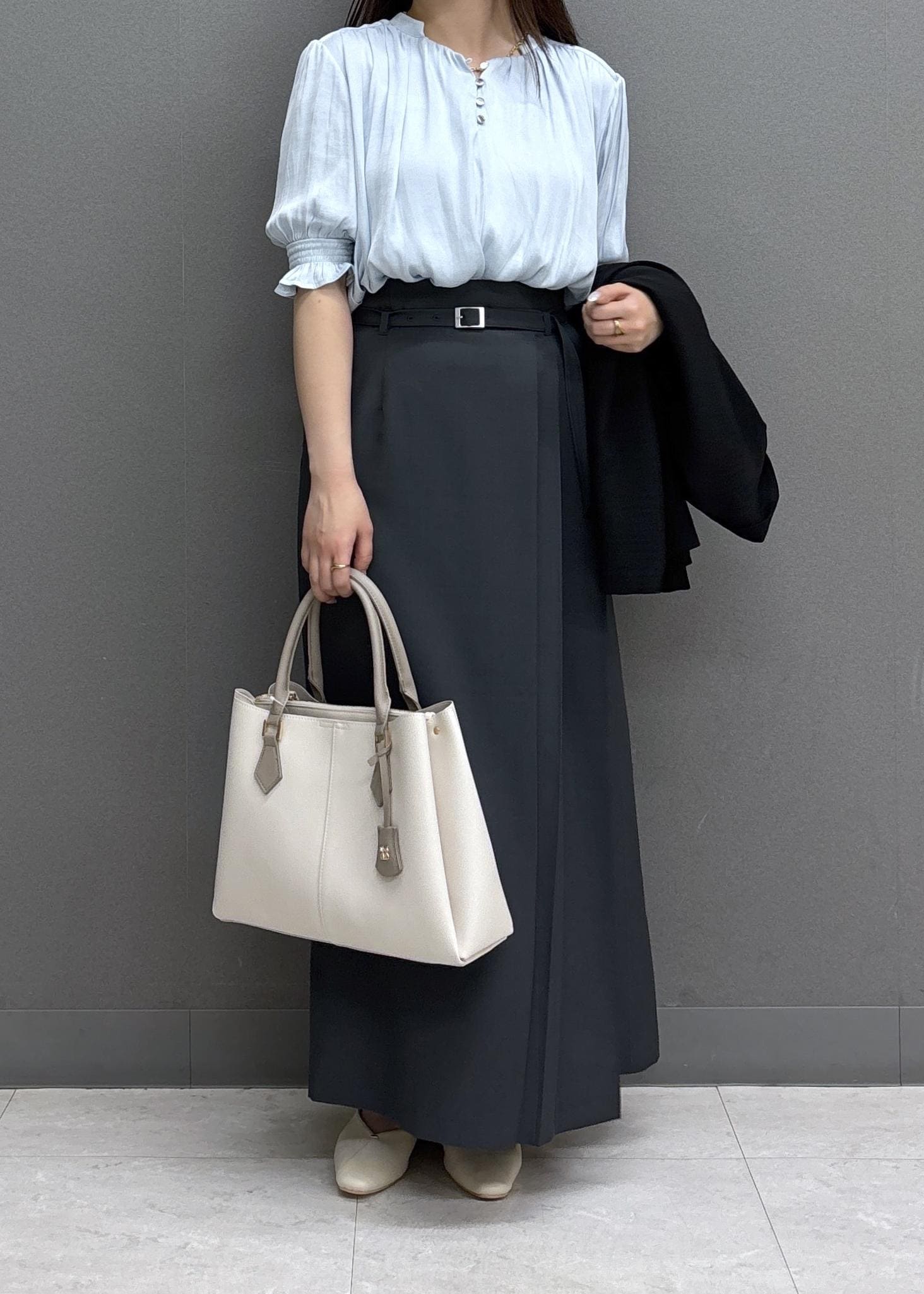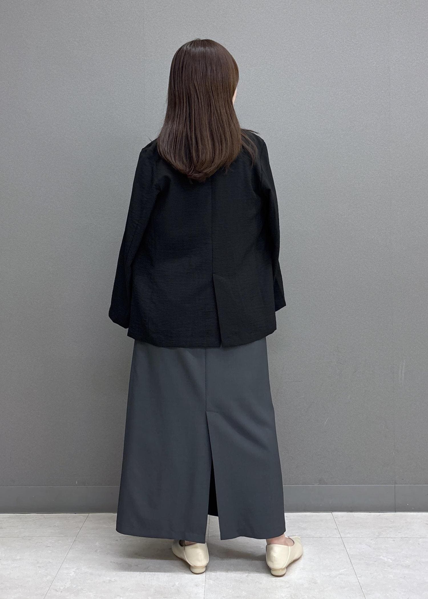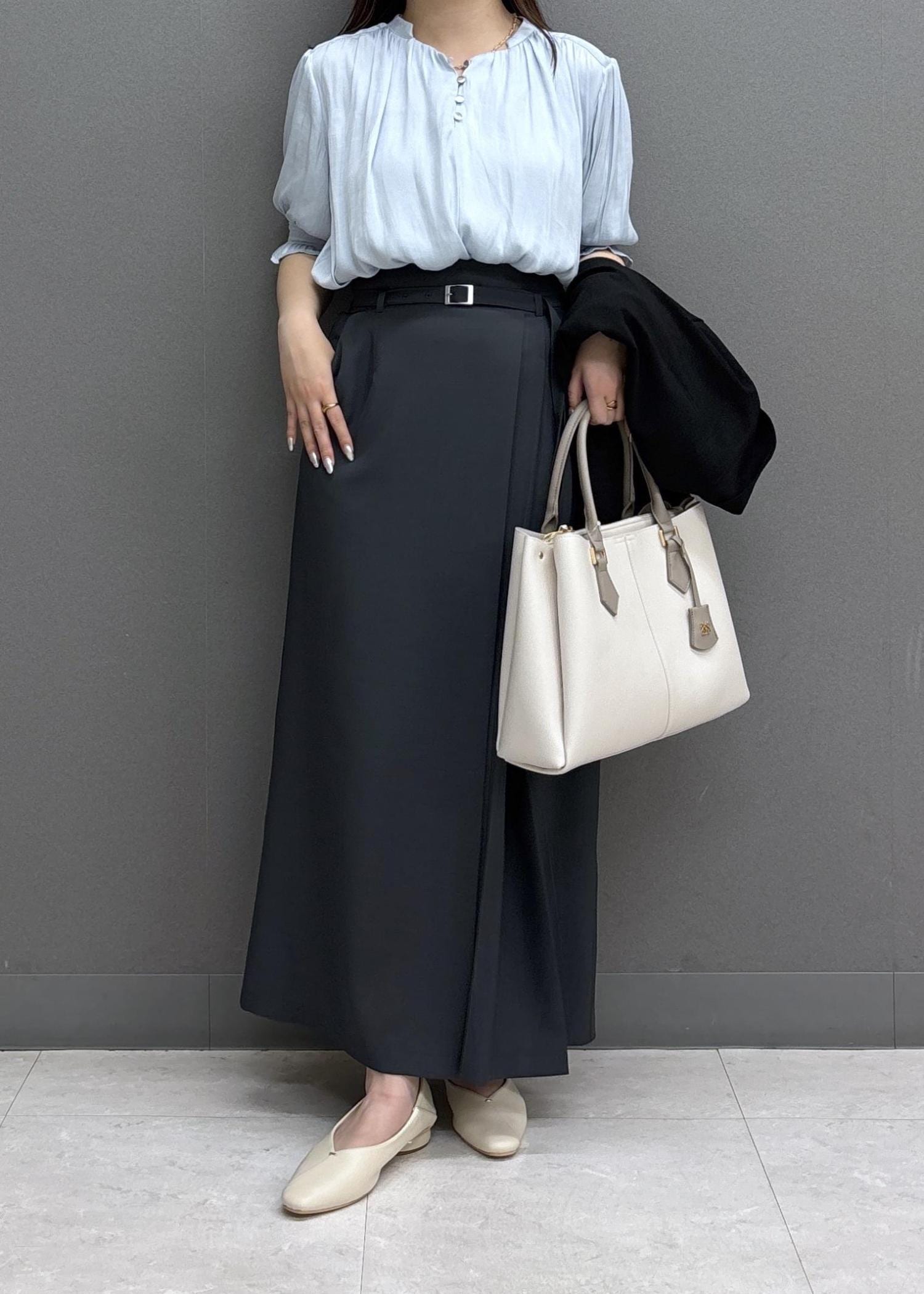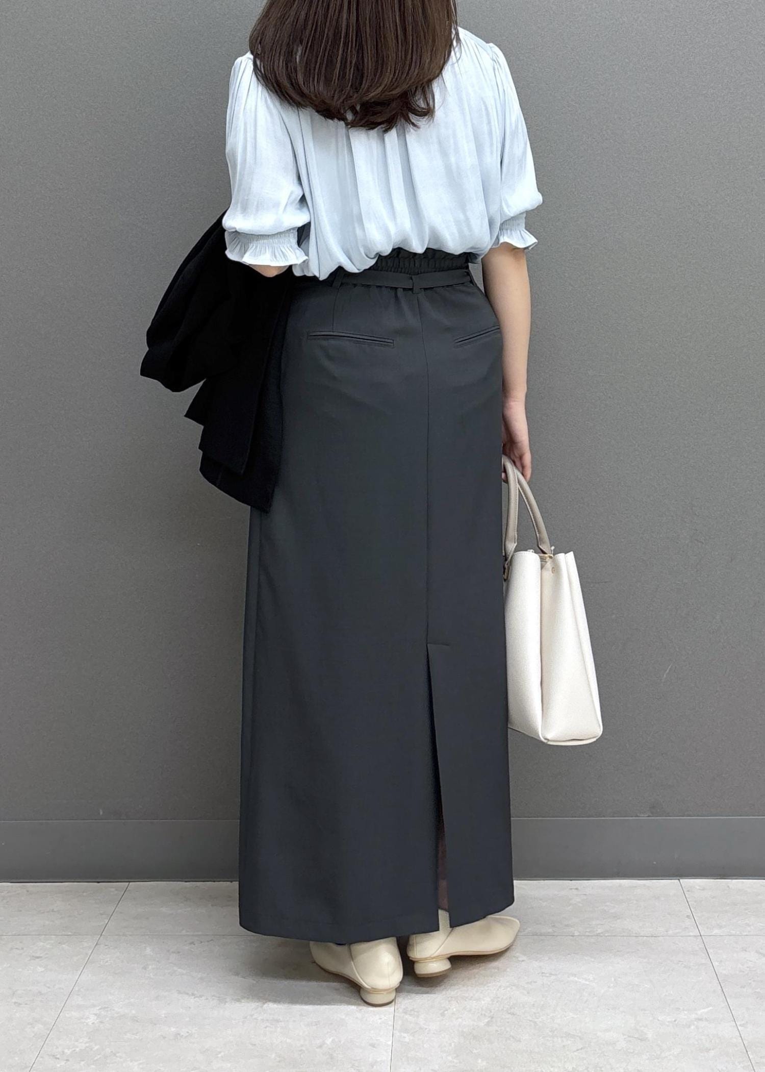 Iラインスカートですがヒップラインを拾いにくく、すっきり見えるシルエットです! -