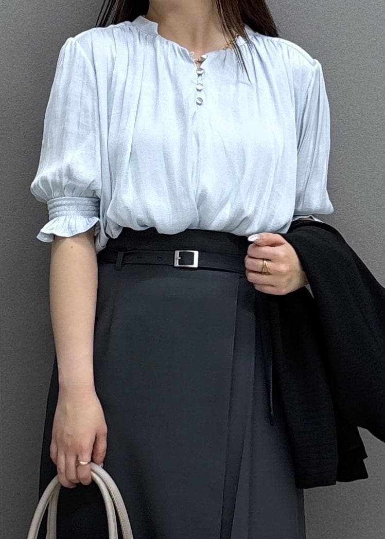 VISエアリーサテンハーフスリーブブラウス/イージーケアブルー系 / F¥5,489レビューつるっとした柔らかいサテン生地のブラウス♡袖丈は膝くらいまであるので、気になる二の腕もしっかりカバーしてくれます!