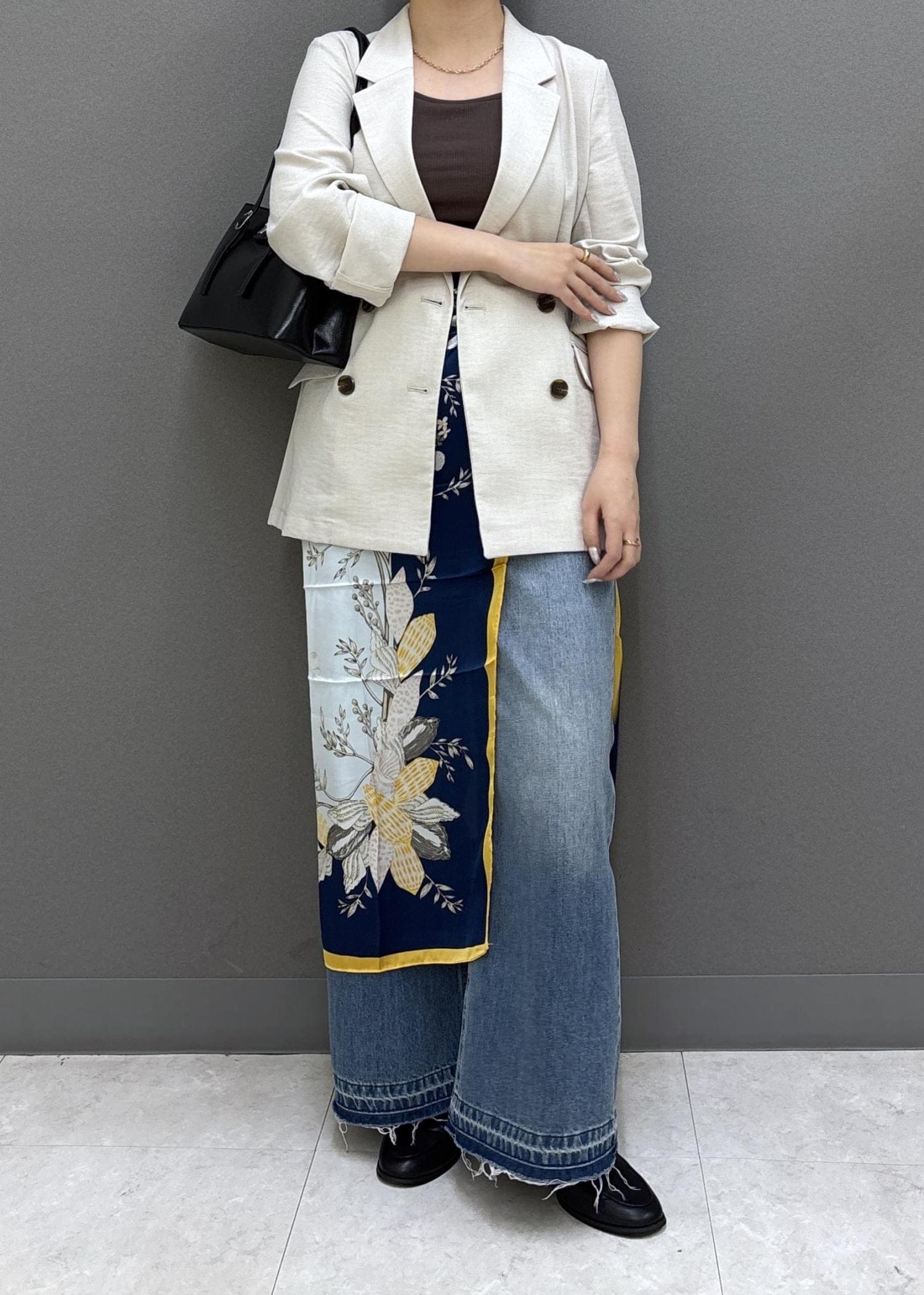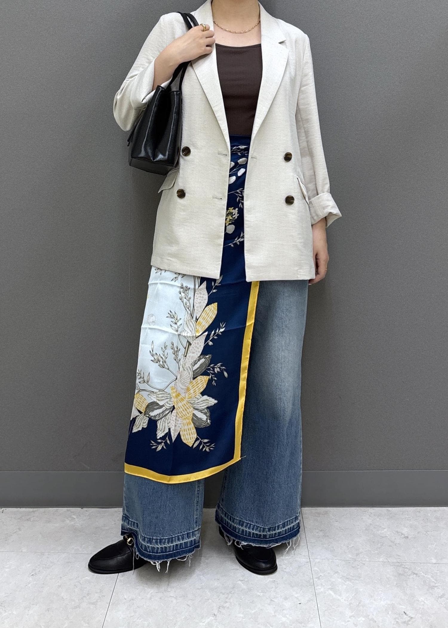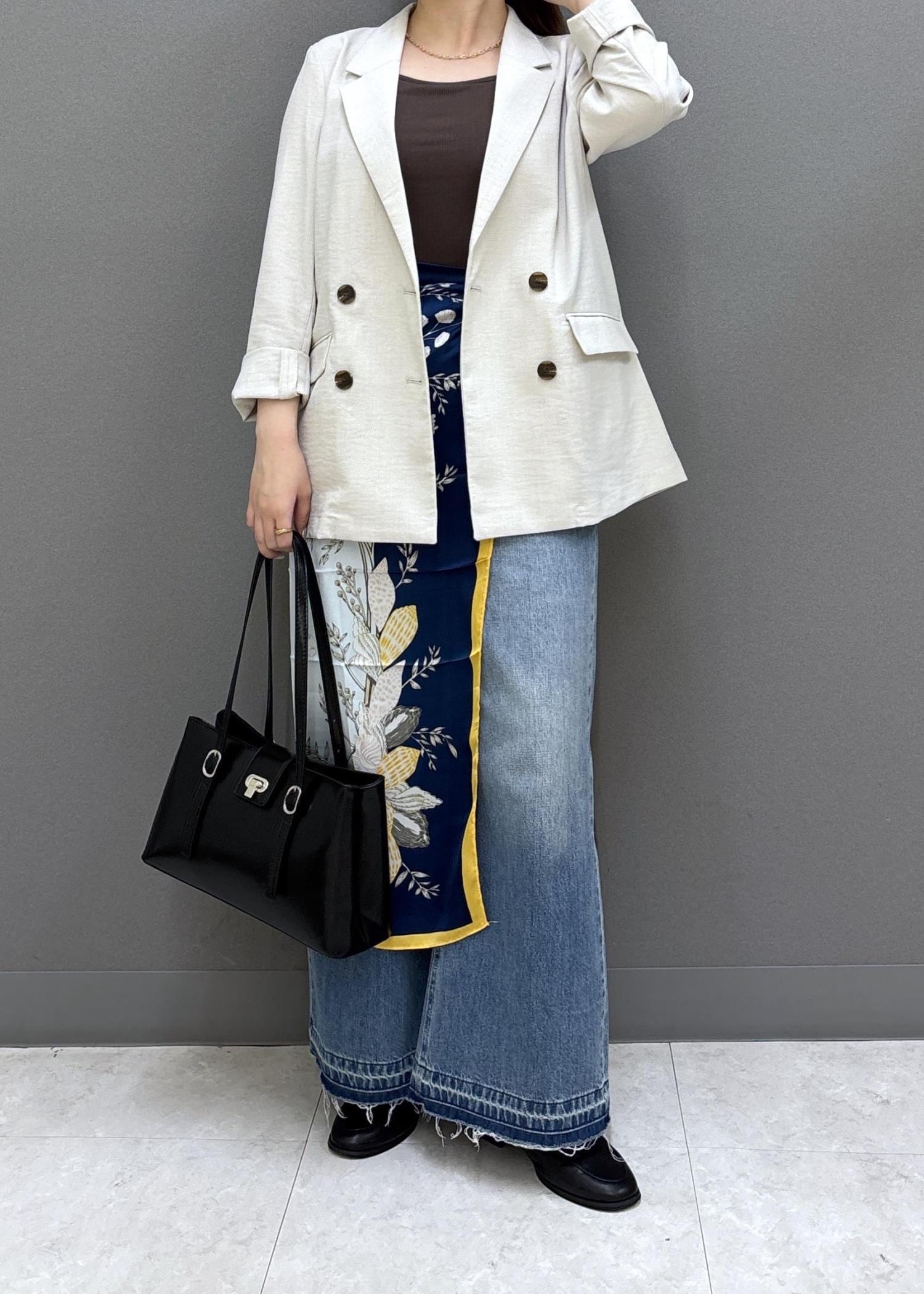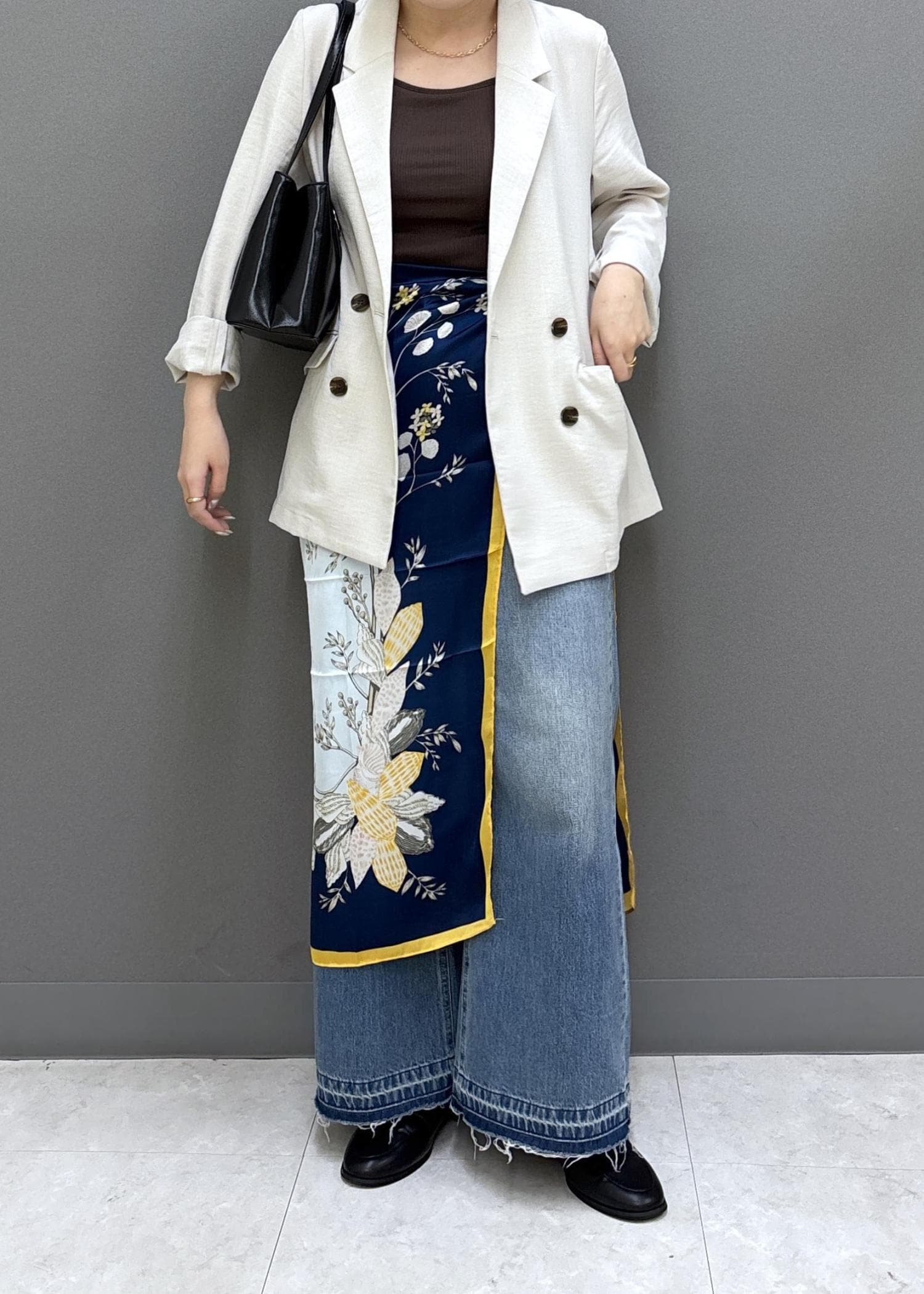 VISアソート柄スカーフ 90cmネイビー系 / F¥1,970レビュー大判のスカーフなので、腰に巻いたりバッグにつけたり、アレンジが自由自在♩つるっとした光沢感のある素材で扱いやすいです!シンプルなコーディネートにプラスするだけで、グッとオシャレ見えしますよ〜