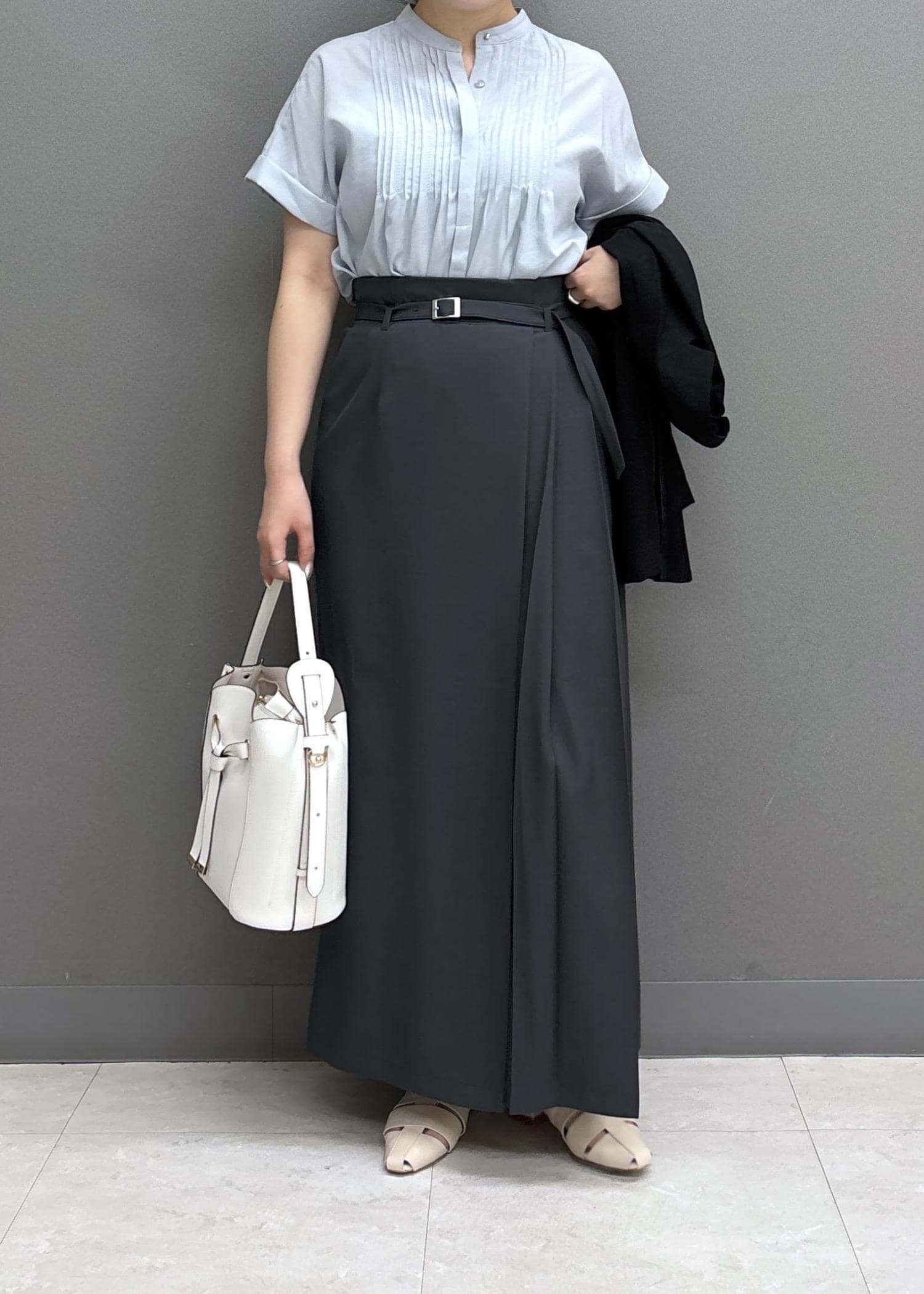 Iラインスカートですがヒップラインを拾いにくく、すっきり見えるシルエットです!