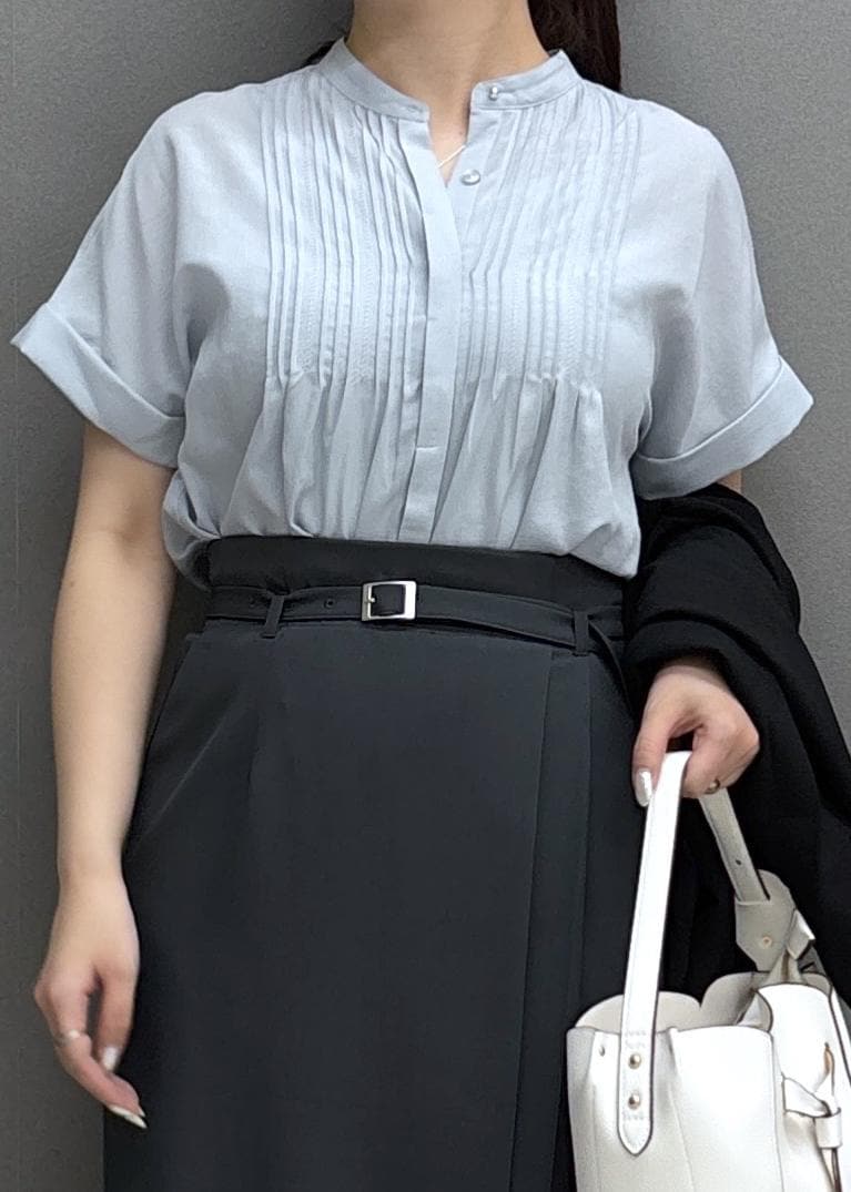 さらっとした薄手の素材感で軽い着心地なので、春夏大活躍しそうです〜!前ボタン仕様なので、羽織りで使えるのも嬉しいポイント◎
