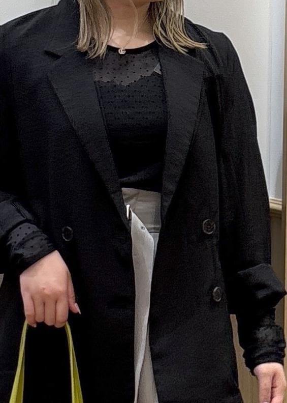 VISフロッキードットチュールプルオーバーブラック系 / F¥3,289レビューシアーがあり軽くて、肩幅が広いのですが、ゆったり着られました。