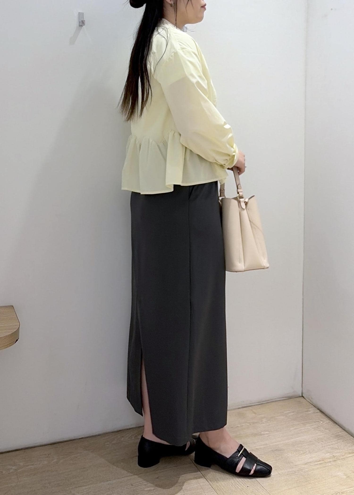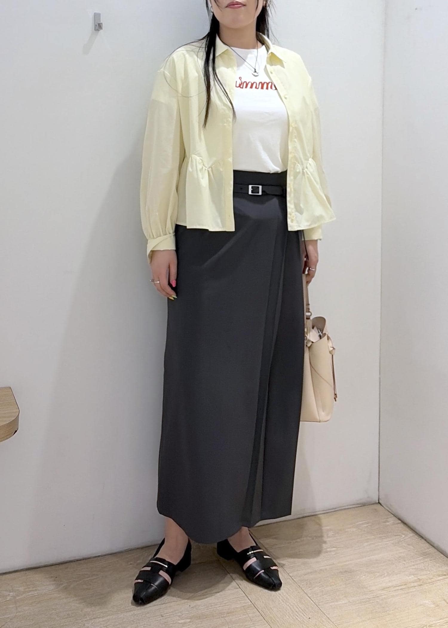 ストンと落ちるシルエットで身体のラインを
