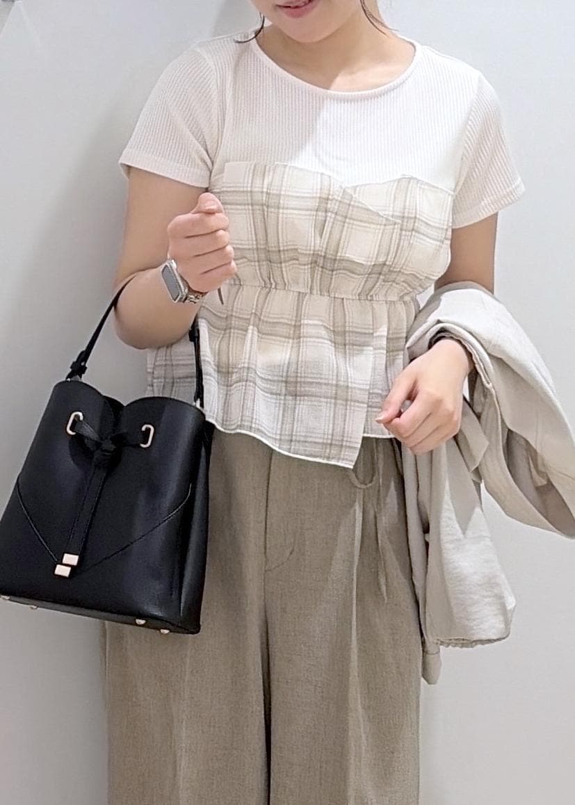 VISチェック&無地ビスチェドッキング半袖プルオーバー/イージーケアキナリ系 / F¥5,489レビュー毎年大人気のビスチェドッキング!♡