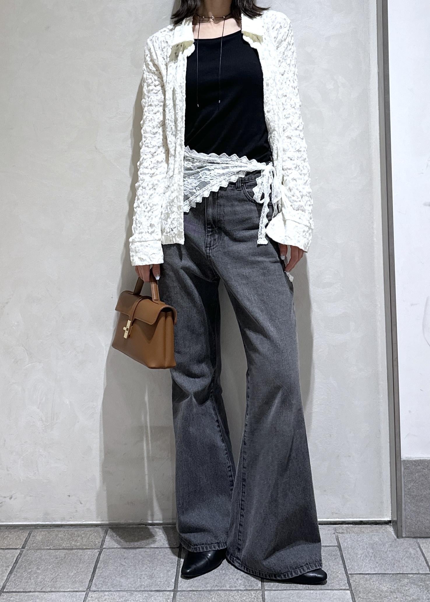 デニム合わせで甘さを抑えた、大人カジュアルコーデ。