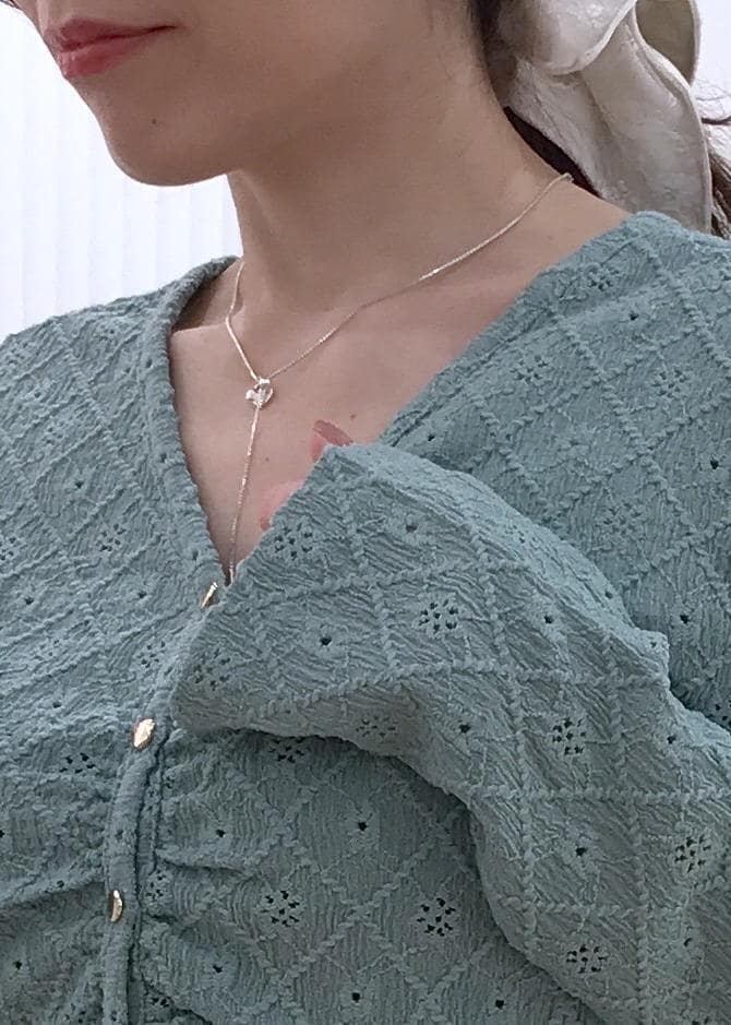 一番長くすると鎖骨より少し下辺りにペンダントトップがきます。