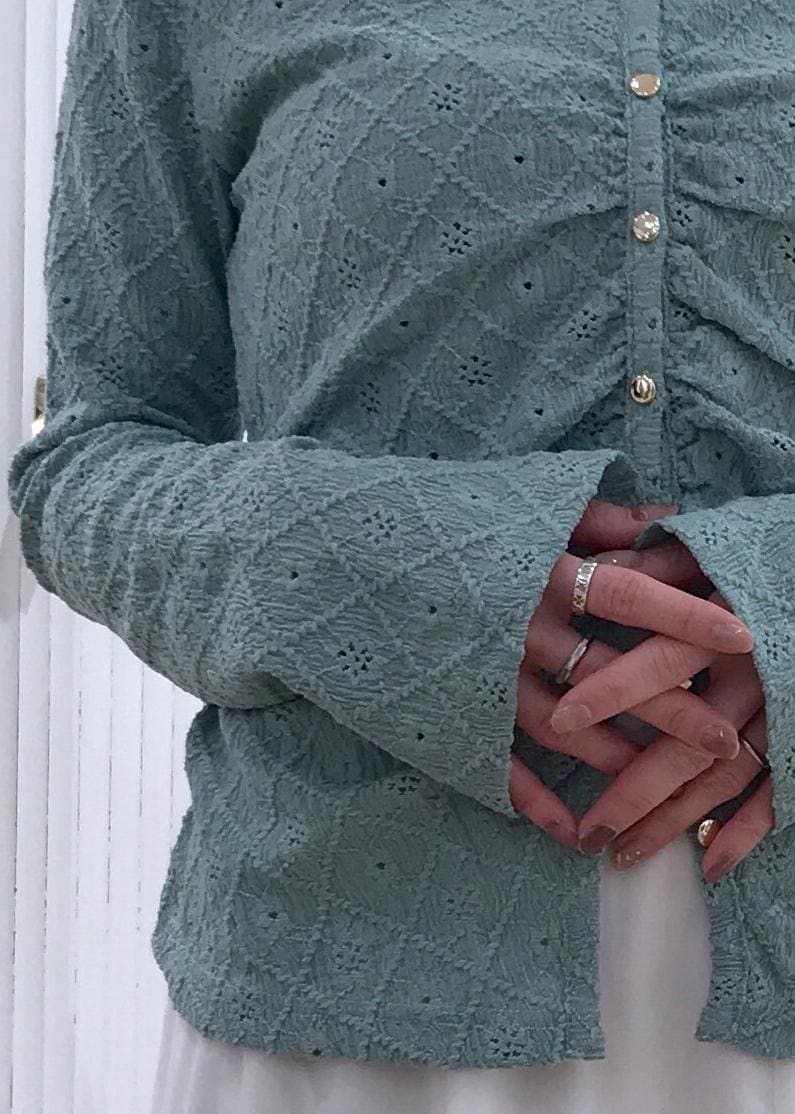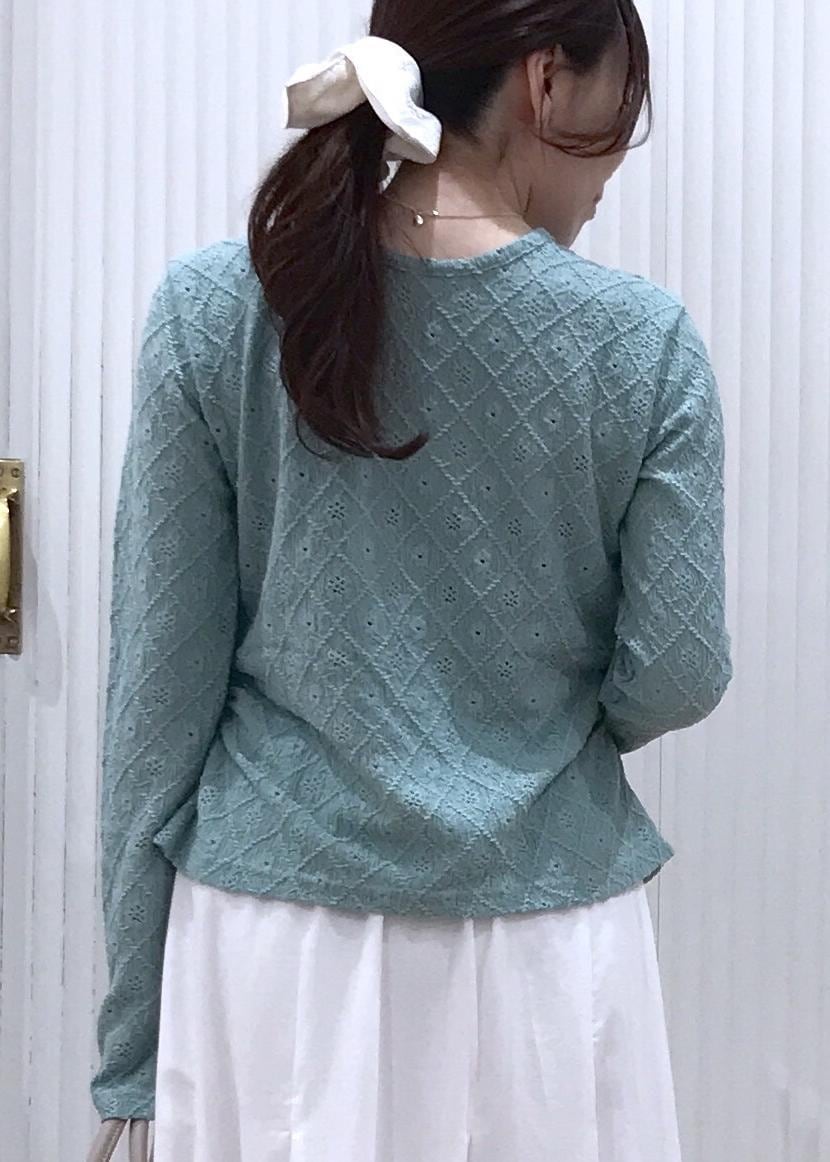 NEW!VISフラワージャガードカットカーディガン/2WAY・イージーケアグリーン系 / F¥5,489レビュー着丈はお尻に少し掛かるくらいの長さです。
