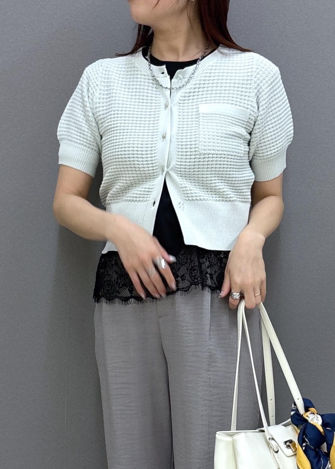 VISクルーネックコンパクトカーディガン/イージーケアライトグリーン / F¥5,929レビューパフスリーブになっているので
