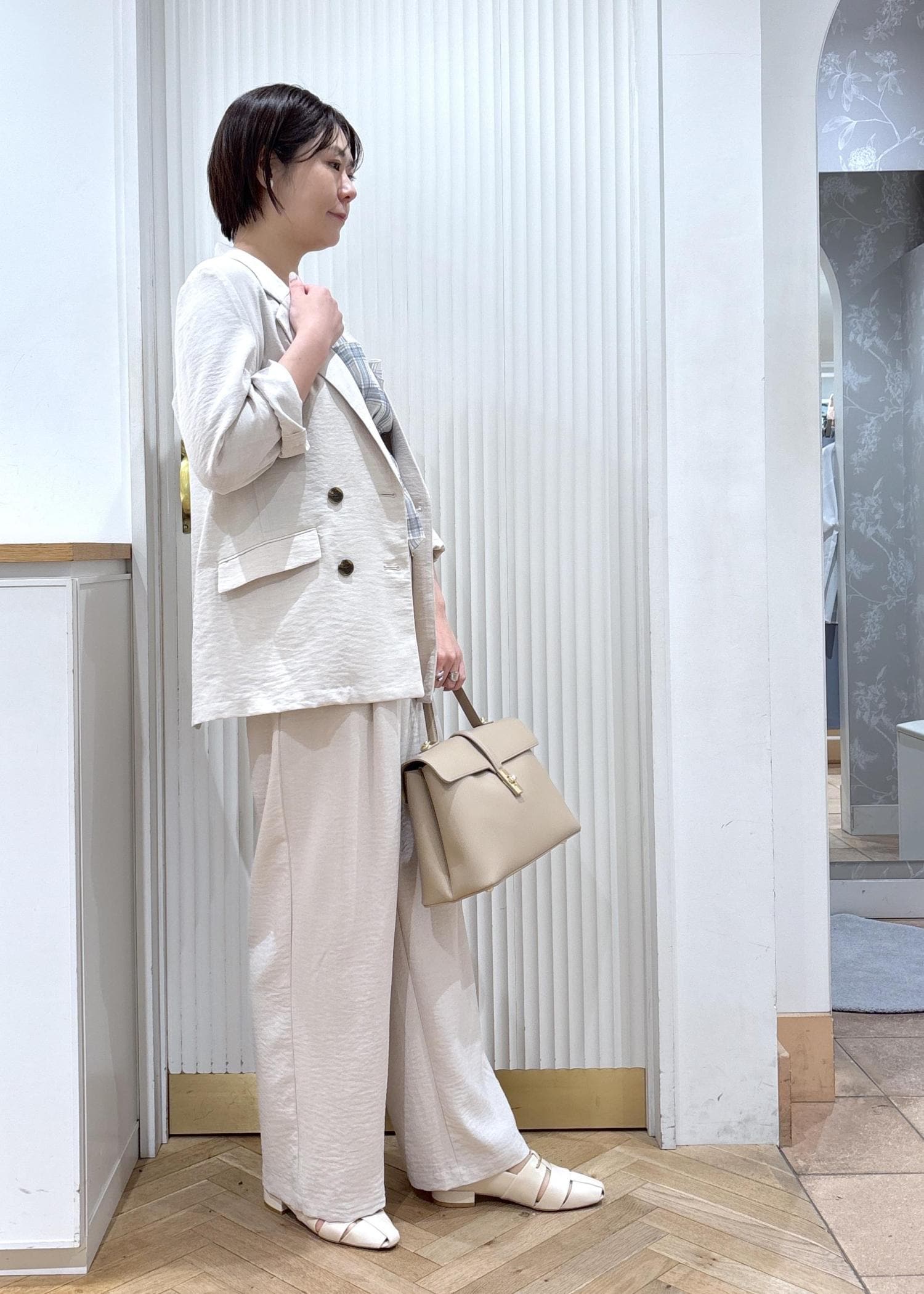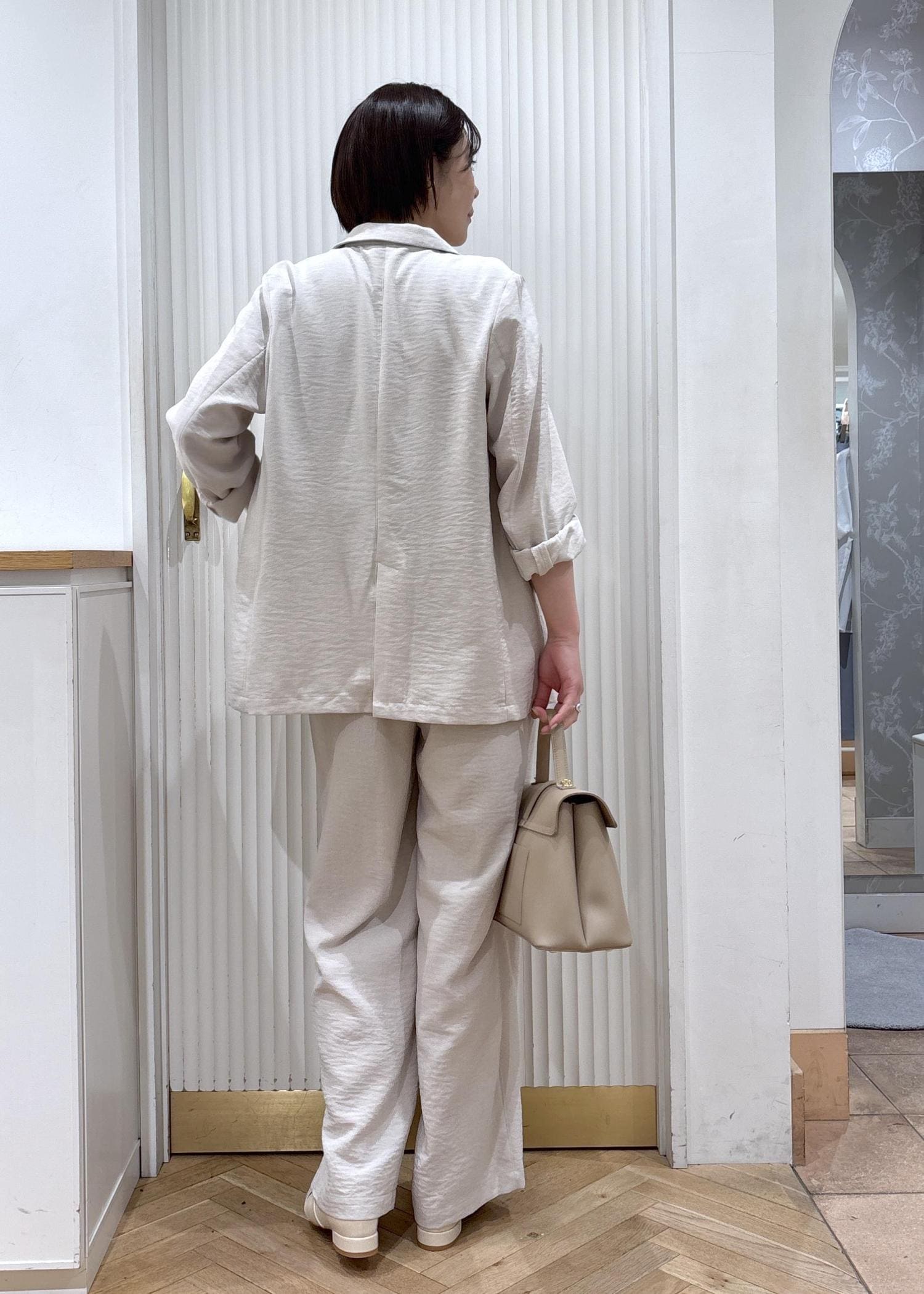 VIS美easyリネンライクテーラードジャケット/イージーケア・接触冷感・セットアップ対応キナリ / M¥7,909レビューダブルジャケットですが身幅はすっきりしてるのでお仕事用にもオススメです。