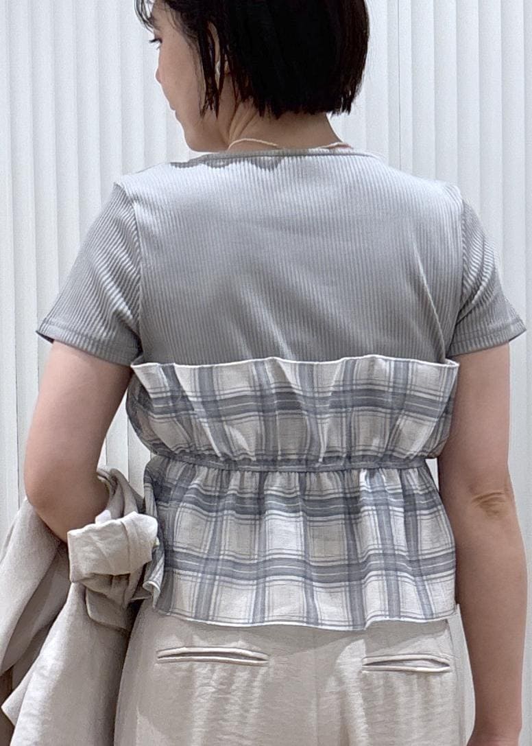VISチェック&無地ビスチェドッキング半袖プルオーバー/イージーケアグレー / F¥5,489レビューカットソー部分はサラサラした素材で汗染みなども気にならない素材です!