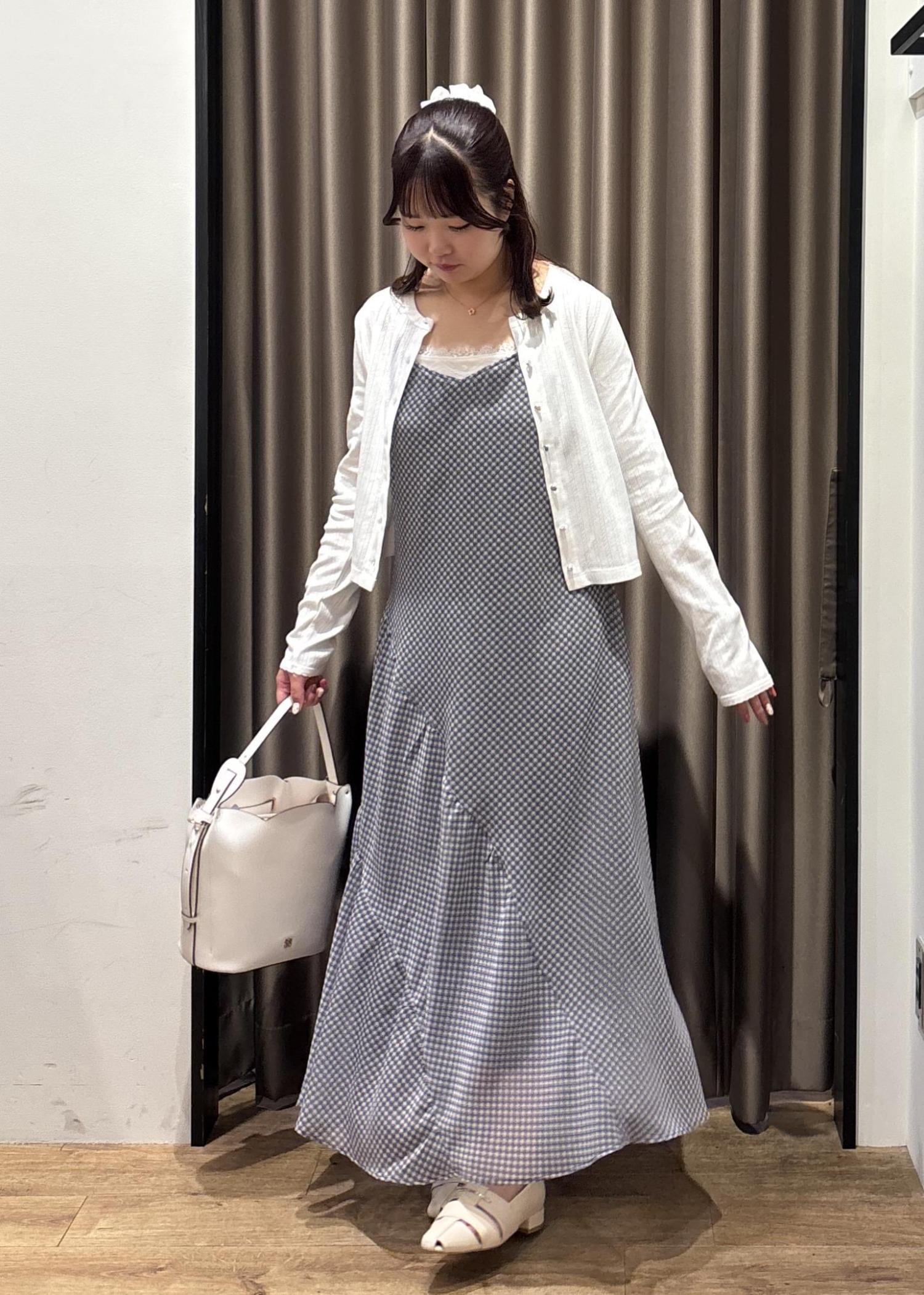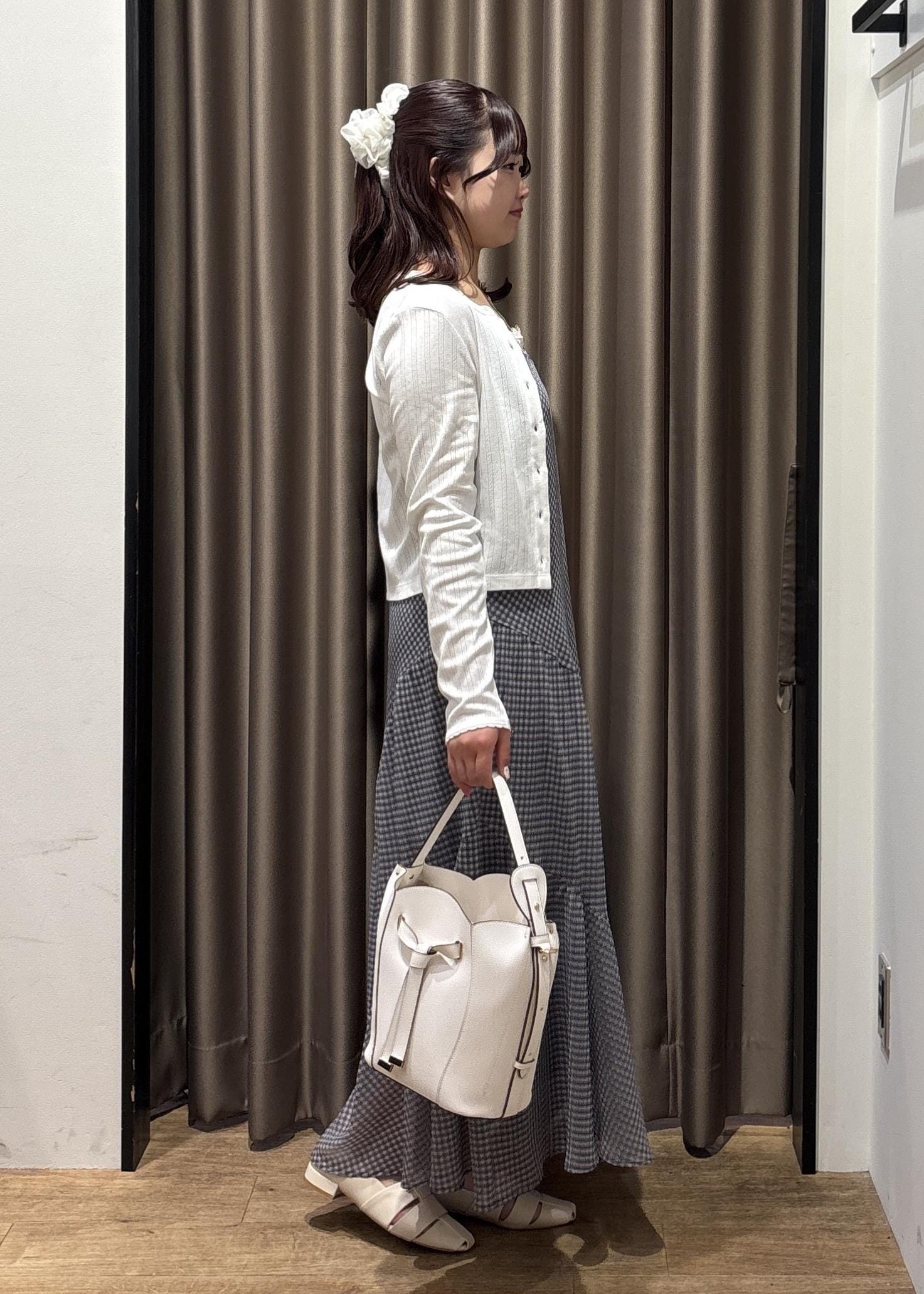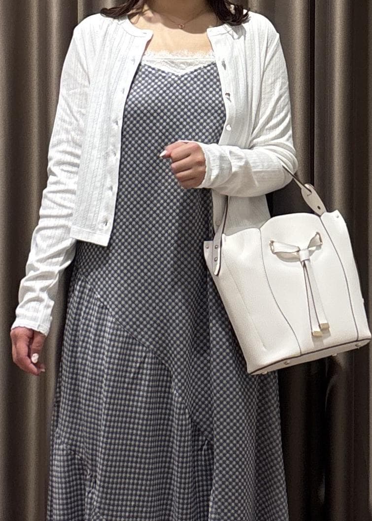 白のコンパクトなカーディガンと合わせて涼しげなコーデにしました♡♡