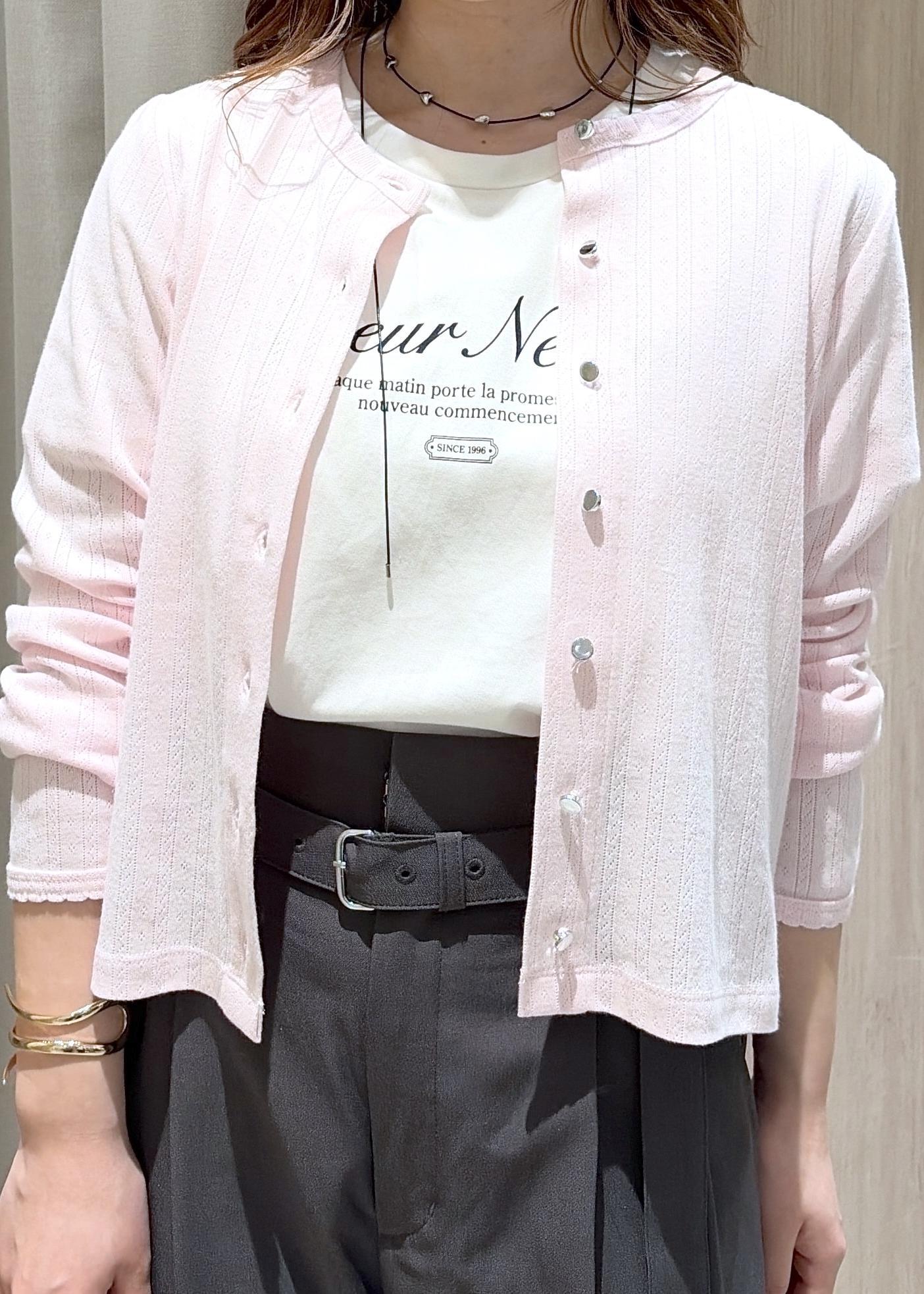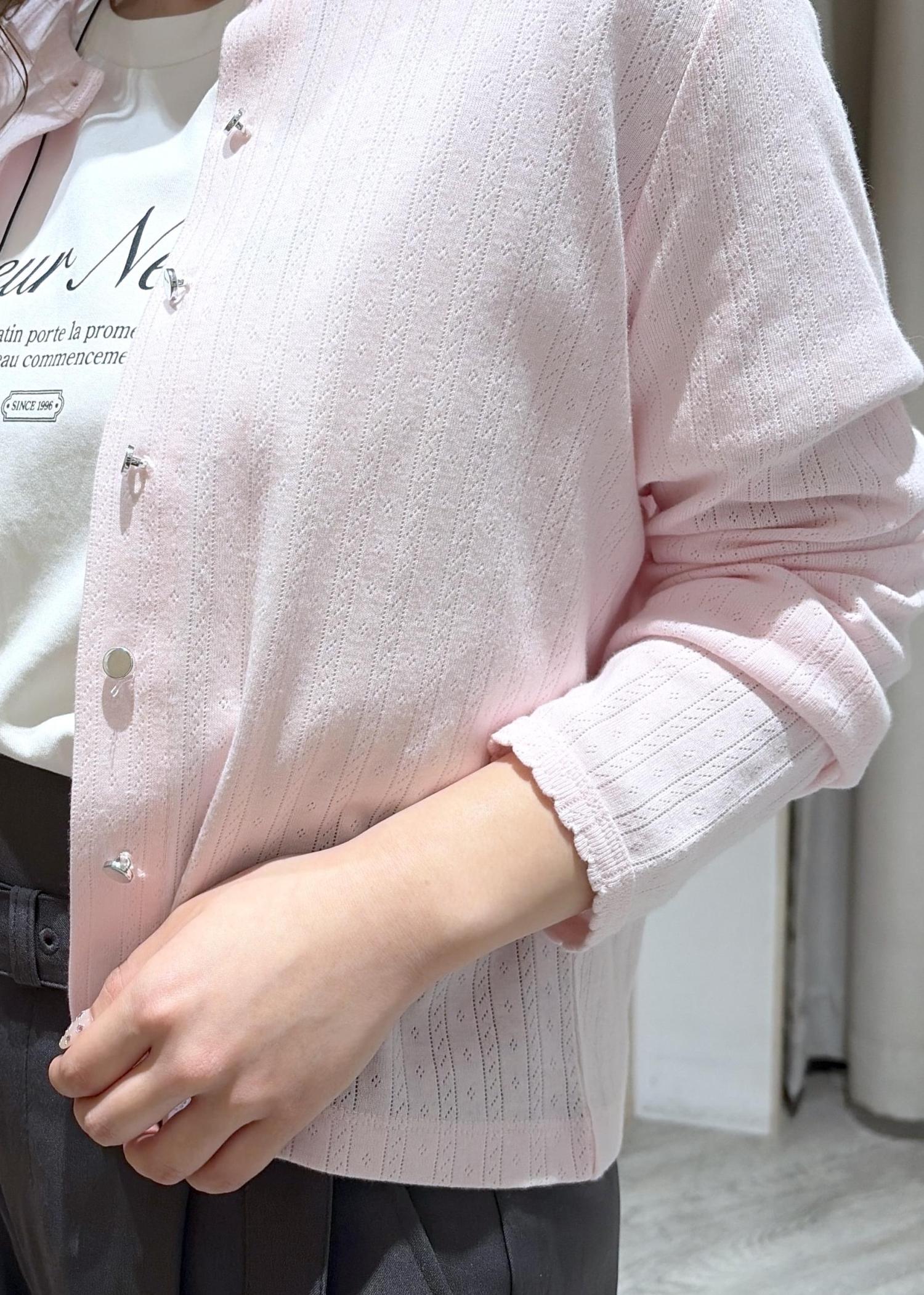 NEW!VISパターンメッシュカーディガンピンク / F¥5,489レビュー身長150cmで腰周りが隠れる丈感でした!