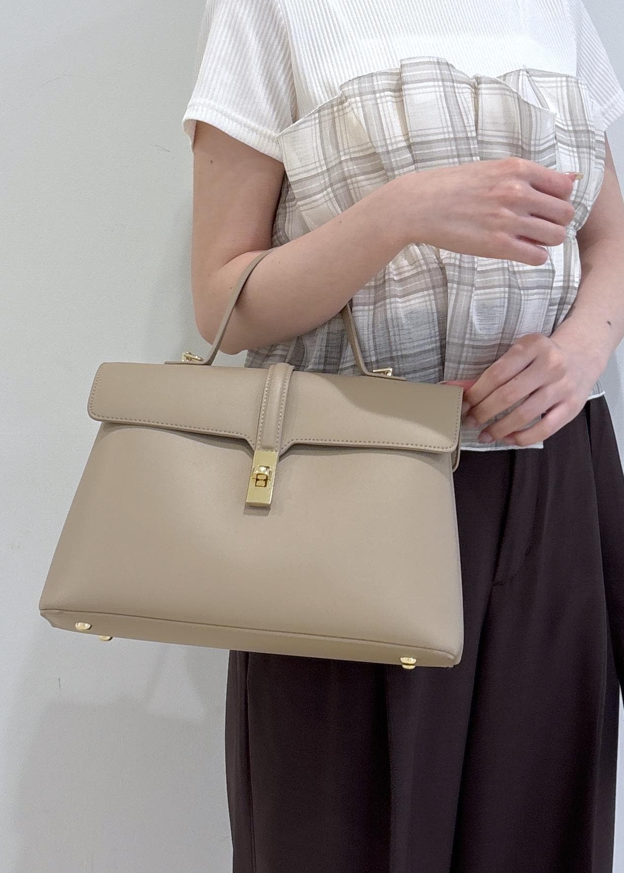 予約VISひねり金具ワンハンドルバッグ/2WAY,軽量ベージュ / F¥5,929レビュー高見えするバッグで、コーディネート問わずお使いいただけます!