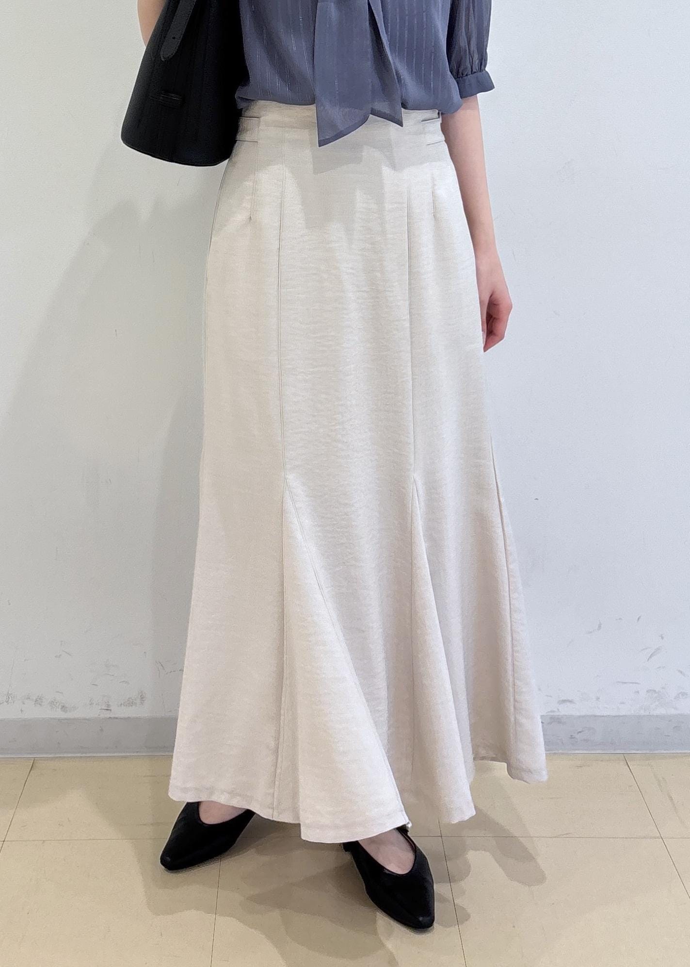 VIS美easyリネンライクマーメイドスカート/イージーケア・接触冷感・セットアップ対応キナリ / M¥5,489レビュー163cmでMサイズ着用。足首が見える長さでした。長めの丈感が好きな方はワンサイズ上げても良さそうです。